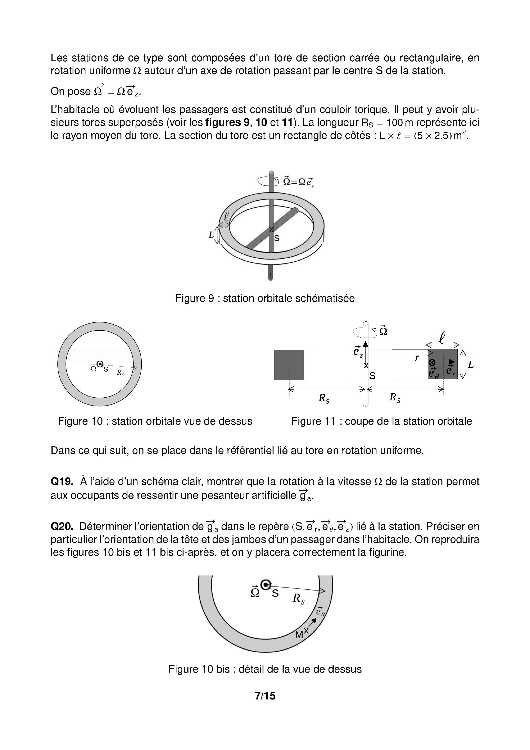 Q19. À l'aide d'un schéma clair, montrer que la rotation à la vitesse de la station permet aux occupants de ressentir une pesanteur artificielle .