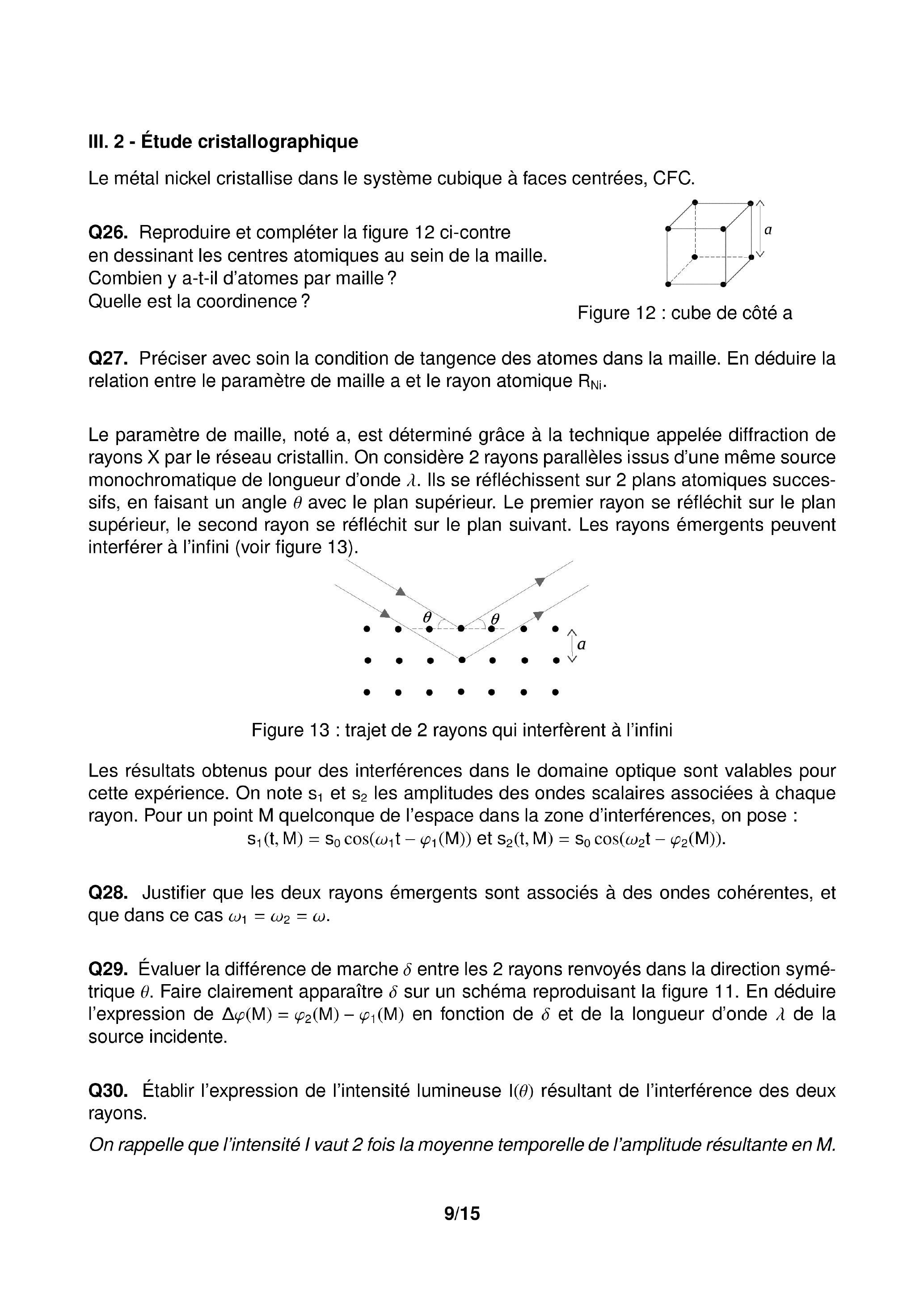 Q36. Déduire de ces mesures le rayon atomique et la compacité du nickel.