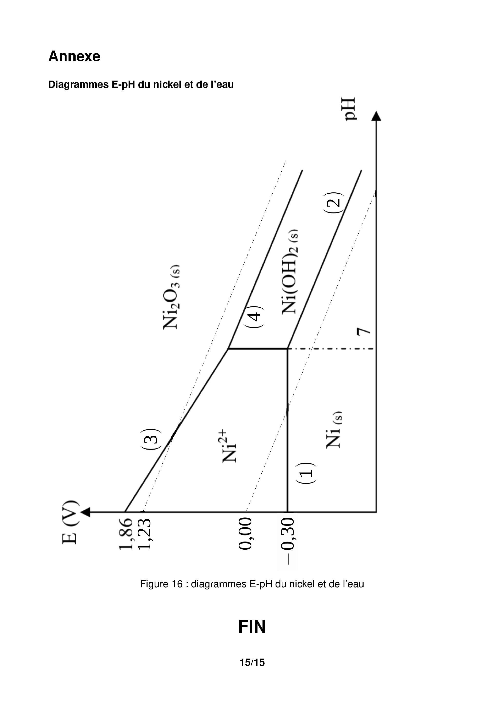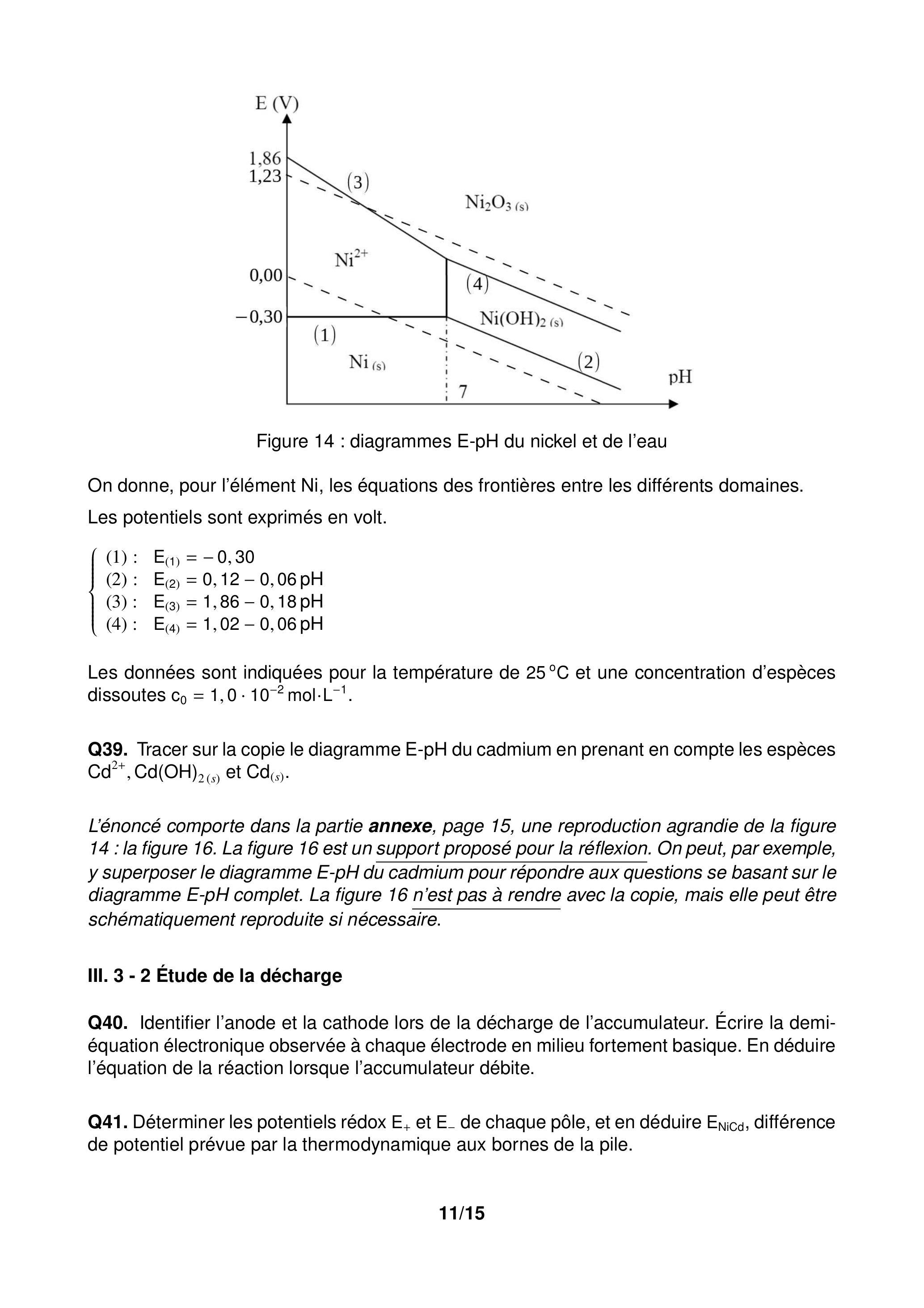 L'énoncé comporte dans la partie annexe, page 15, une reproduction agrandie de la figure 14 : la figure 16. La figure 16 est un support proposé pour la réflexion. On peut, par exemple, y superposer le diagramme E-pH du cadmium pour répondre aux questions se basant sur le diagramme E-pH complet. La figure 16 n'est pas à rendre avec la copie, mais elle peut être schématiquement reproduite si nécessaire.