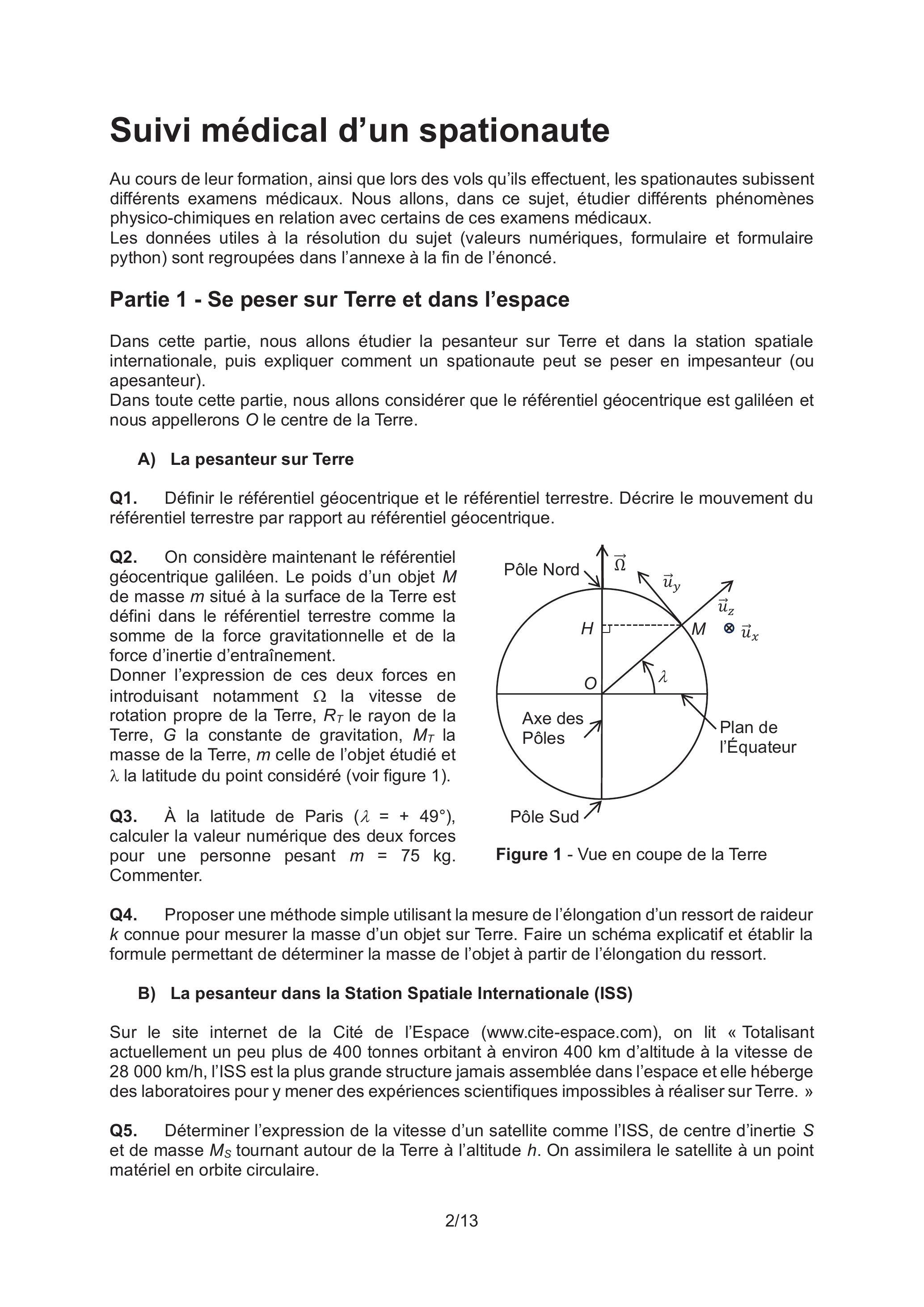 Q1. Définir le référentiel géocentrique et le référentiel terrestre. Décrire le mouvement du référentiel terrestre par rapport au référentiel géocentrique.