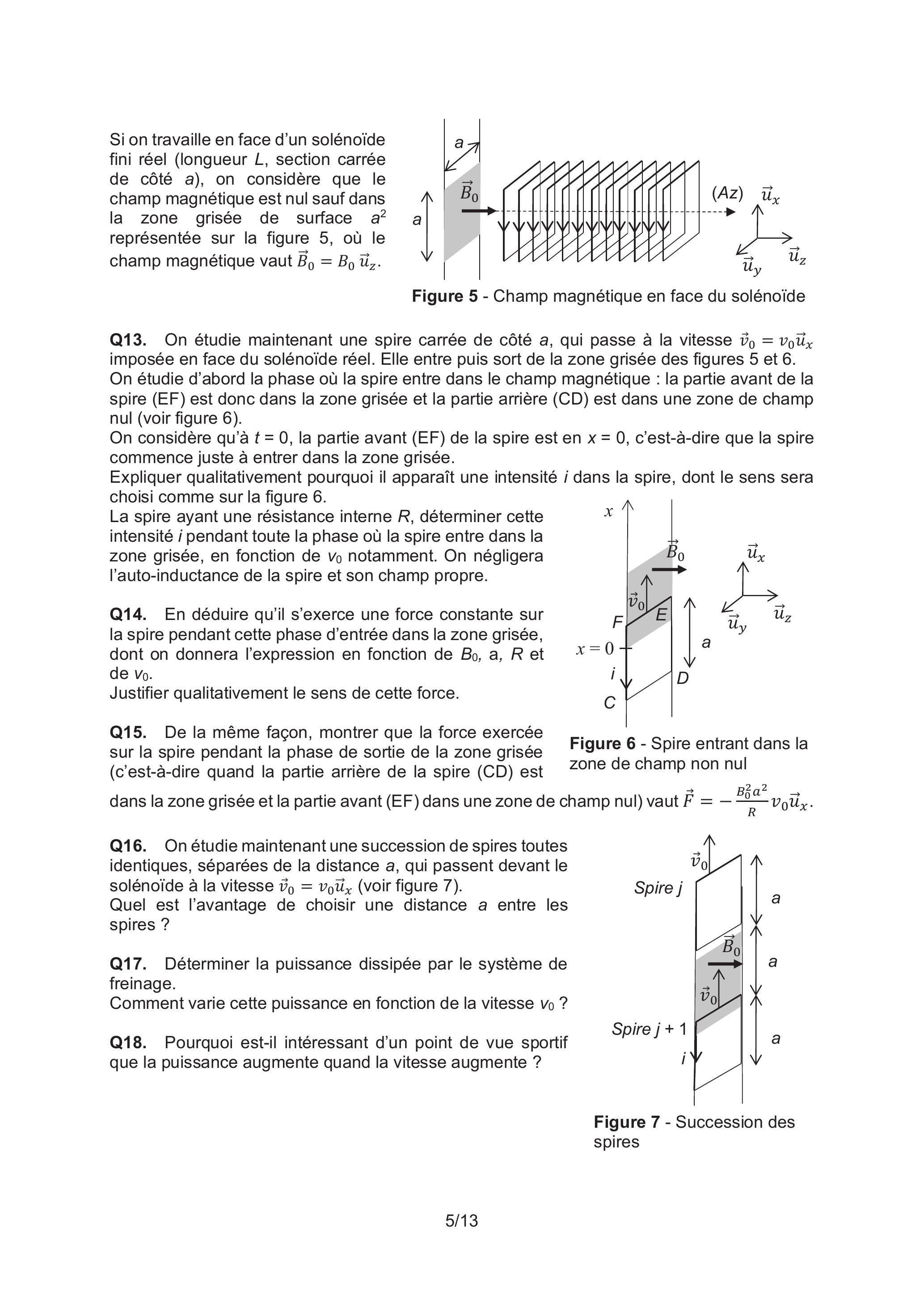 Q16. On étudie maintenant une succession de spires toutes identiques, séparées de la distance a, qui passent devant le solénoïde à la vitesse (voir figure 7).
