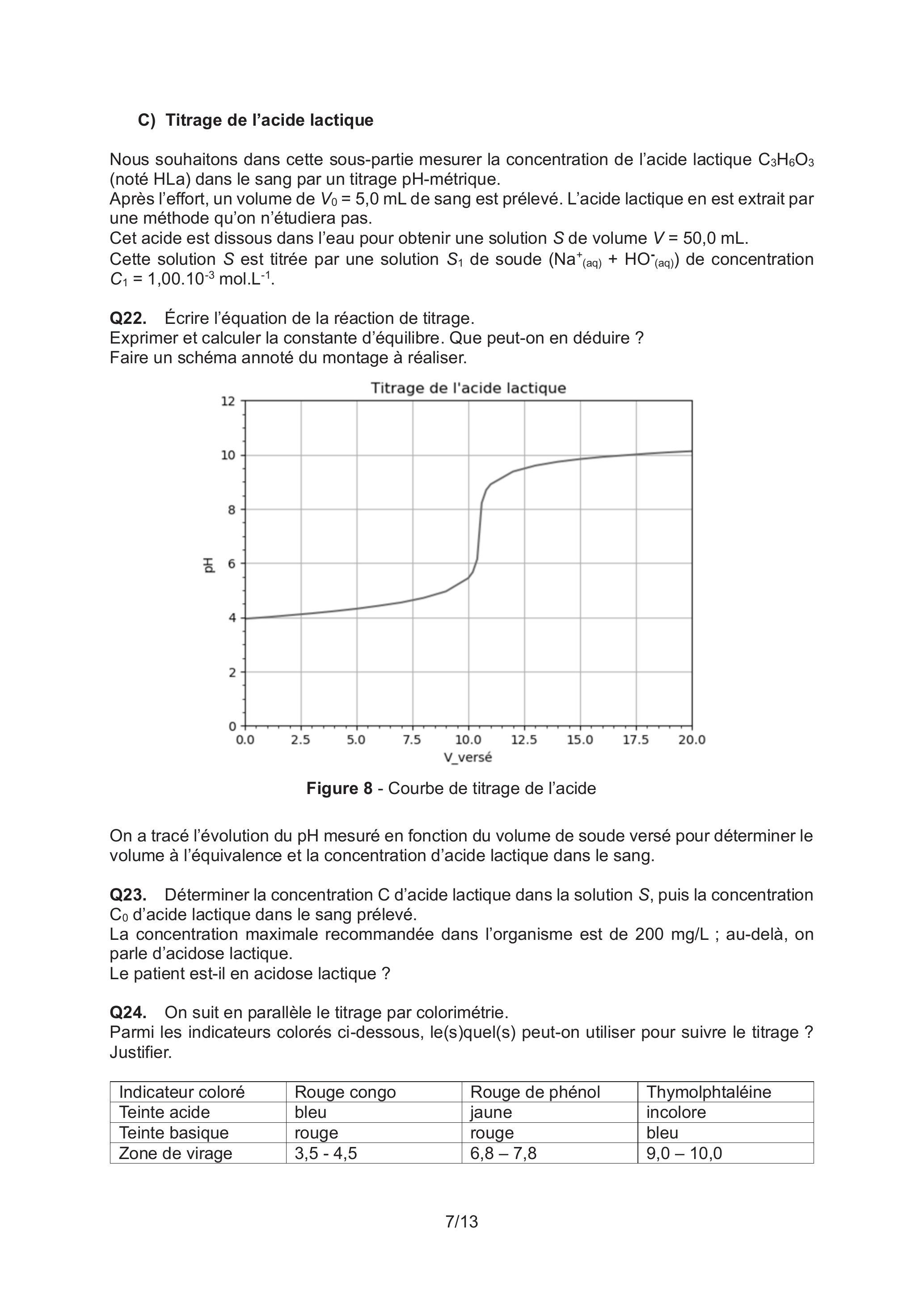Partie 2 - Test d'effort et dosage de l'acide lactique