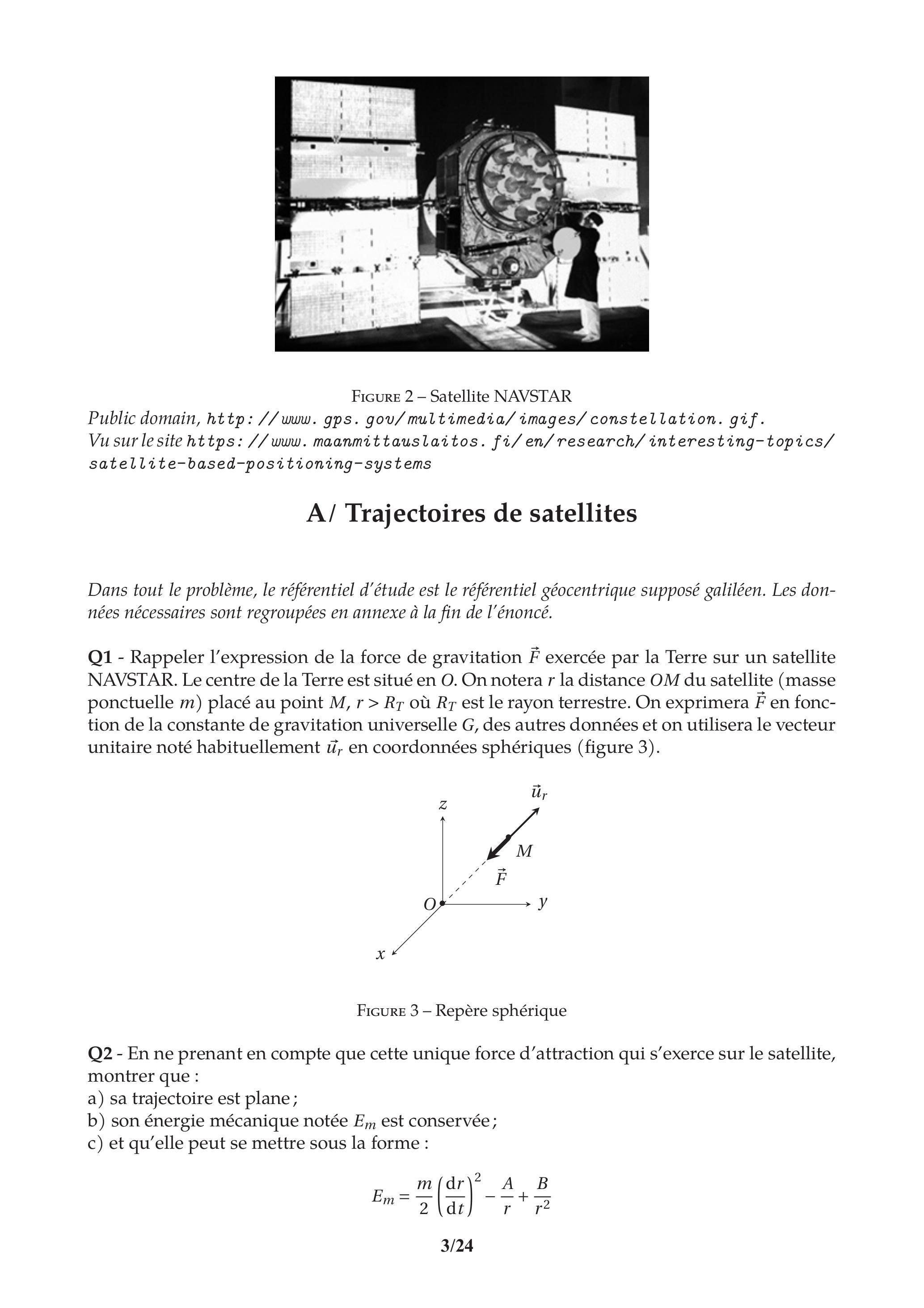 Dans tout le problème, le référentiel d'étude est le référentiel géocentrique supposé galiléen. Les données nécessaires sont regroupées en annexe à la fin de l'énoncé.