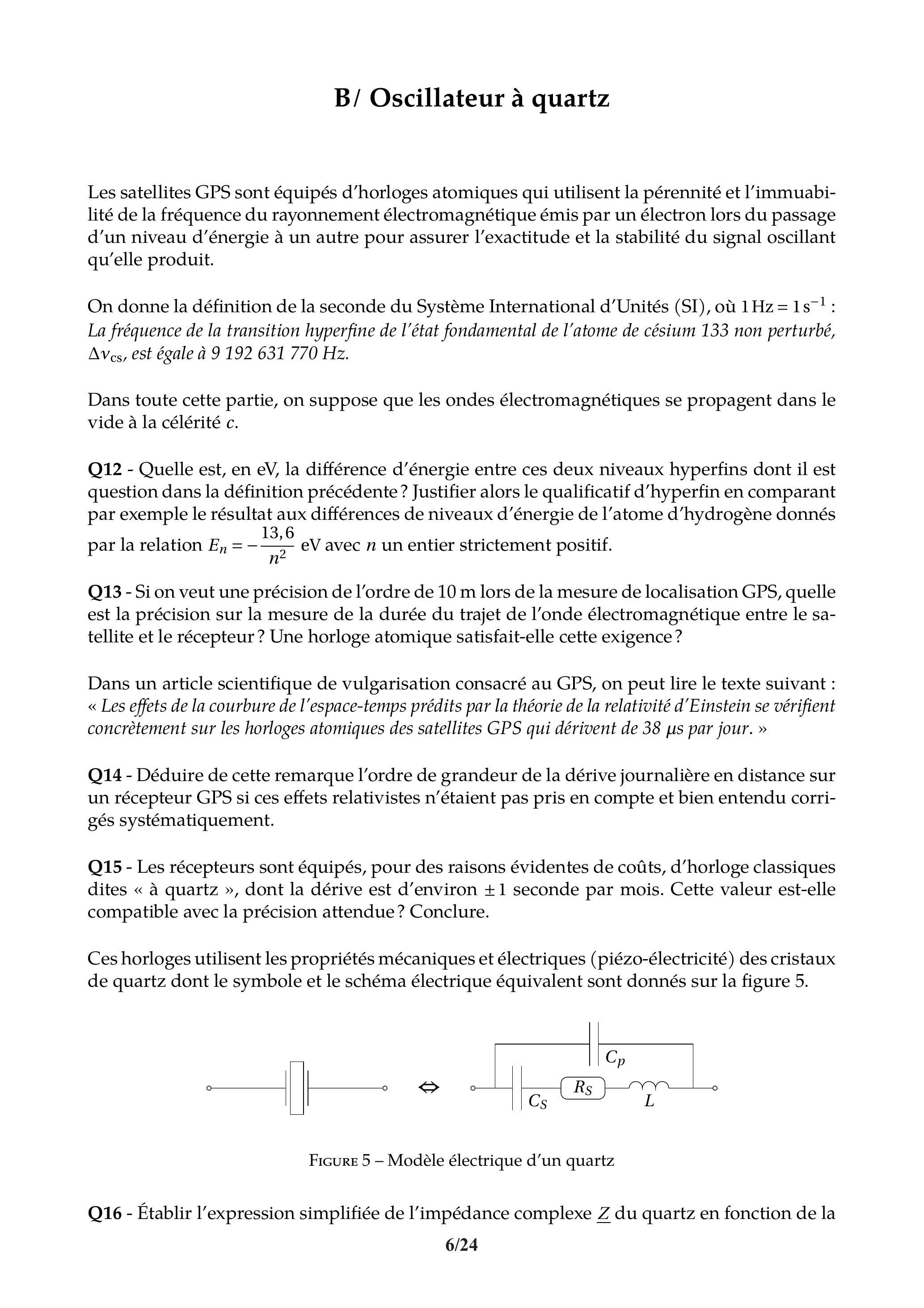 Q13 - Si on veut une précision de l'ordre de 10 m lors de la mesure de localisation GPS, quelle est la précision sur la mesure de la durée du trajet de l'onde électromagnétique entre le satellite et le récepteur? Une horloge atomique satisfait-elle cette exigence?