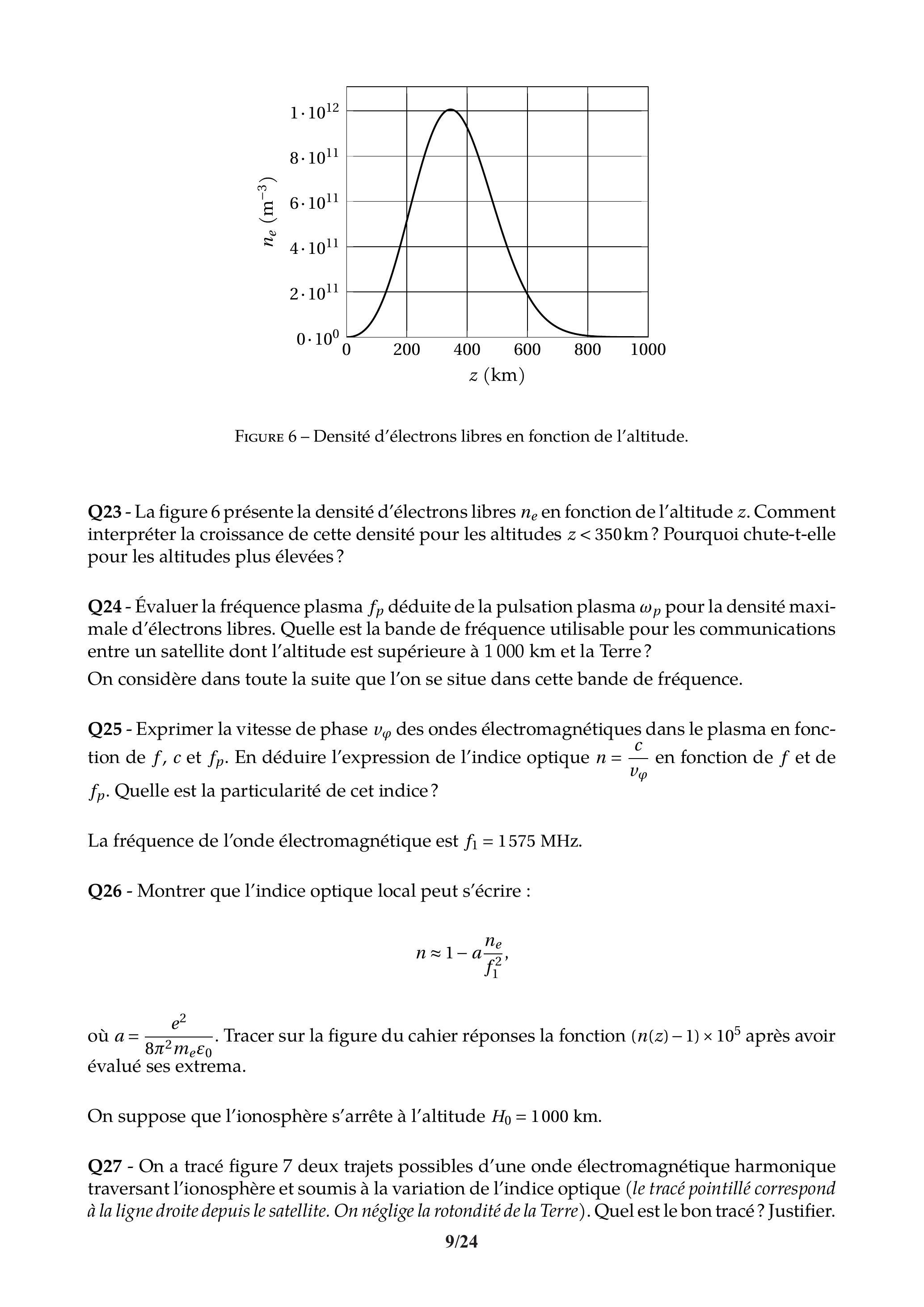 Q29 - Estimer le en pour la densité de la figure 6 et en déduire l'erreur de distance provoquée par l'ionosphère. Commenter.
