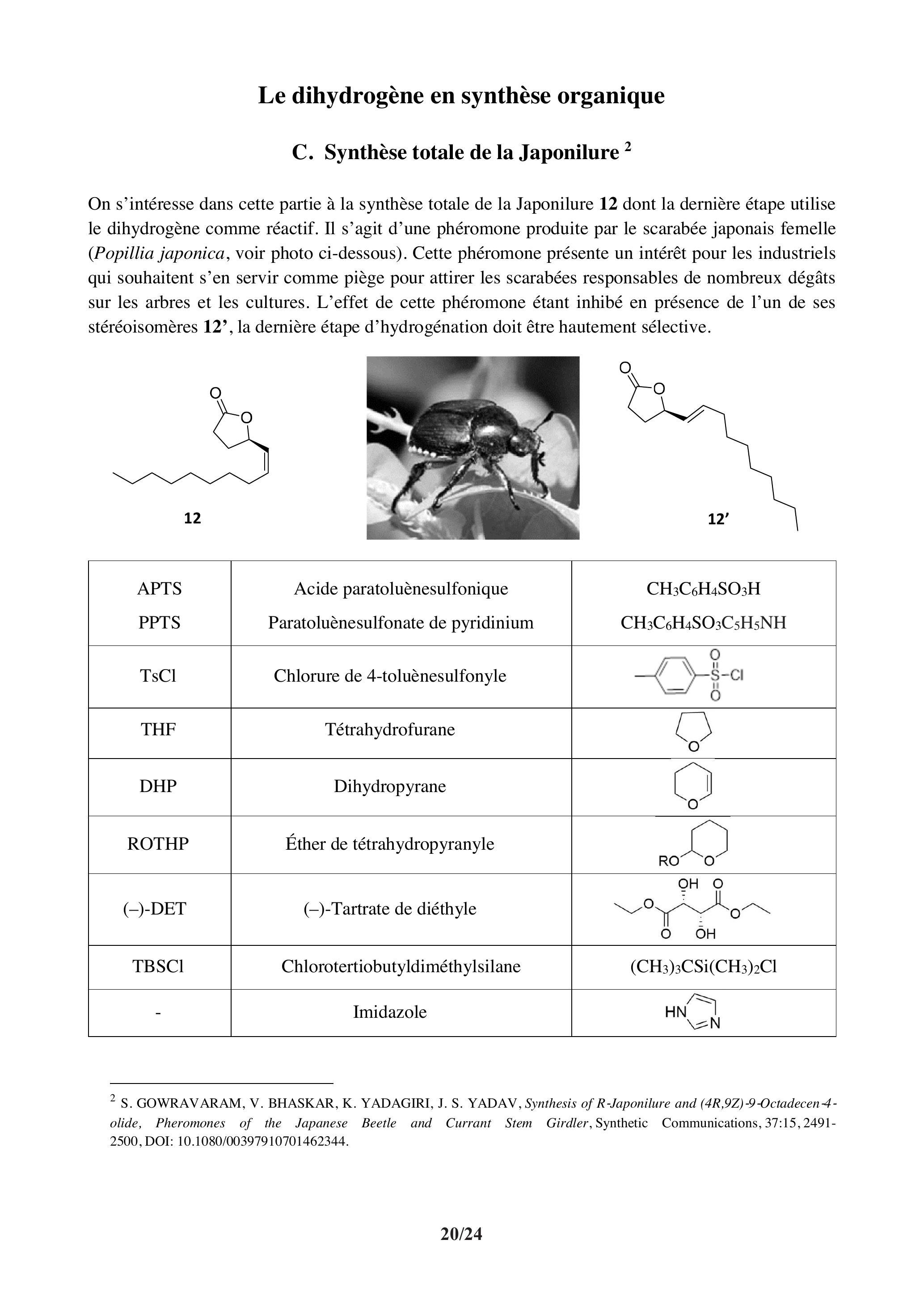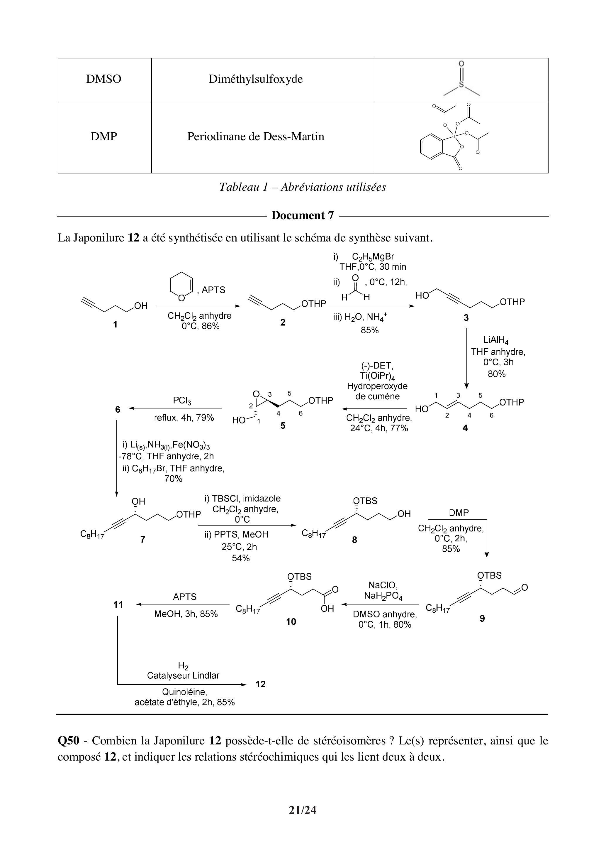 Q62 - Déterminer le rendement total de la synthèse de la Japonilure. Commenter ce résultat en portant un regard critique sur les étapes de protection/déprotection.
