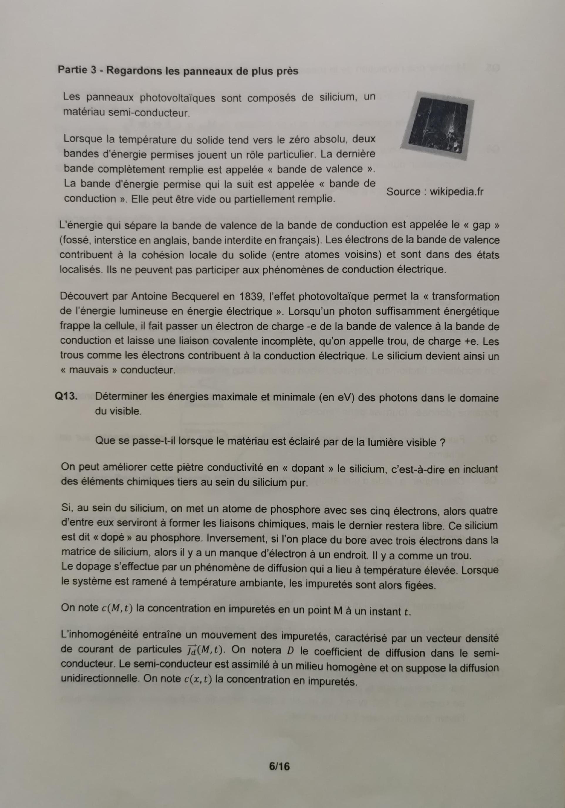 Q13. Déterminer les énergies maximale et minimale (en eV ) des photons dans le domaine du visible.