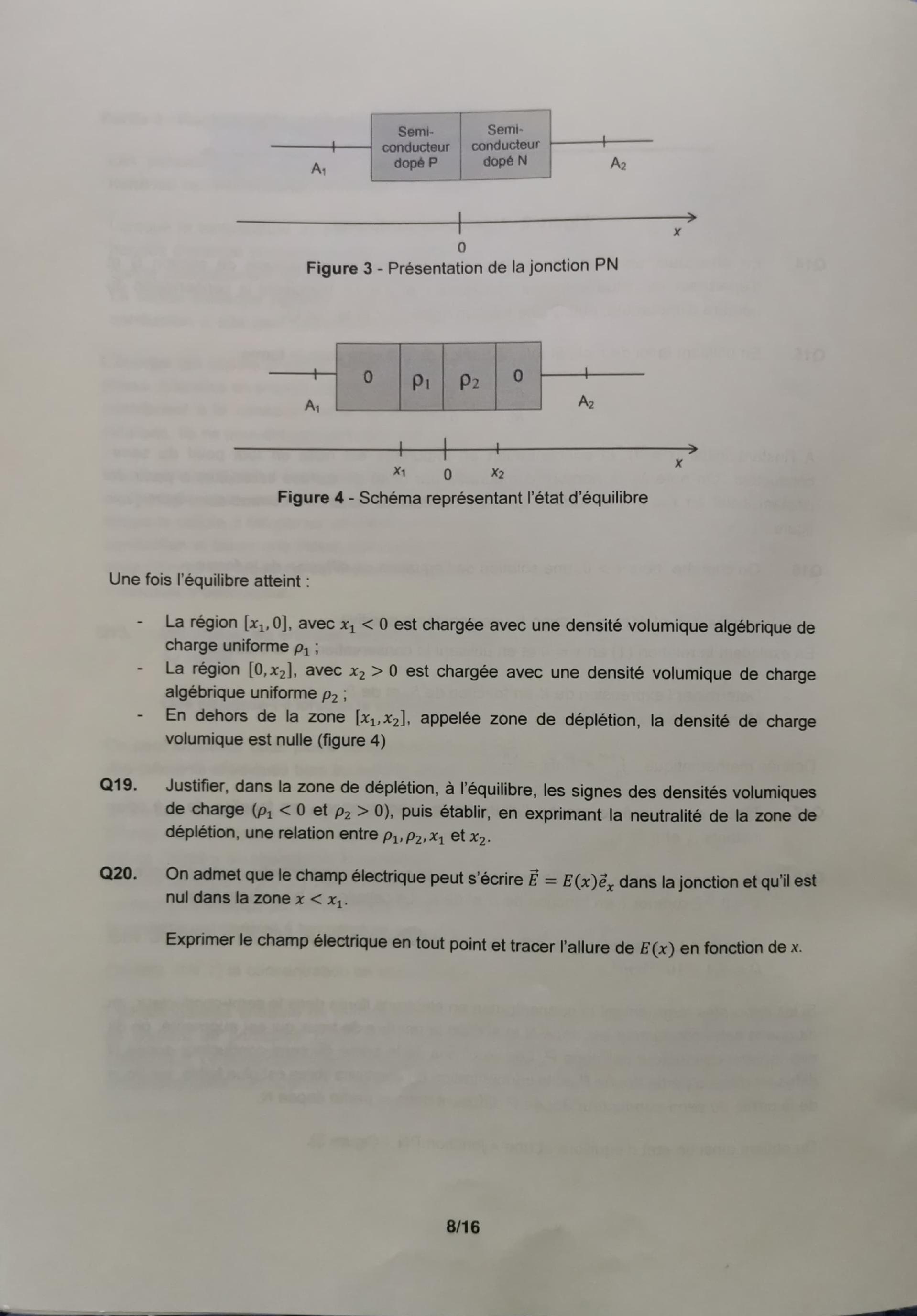 Q20. On admet que le champ électrique peut s'écrire dans la jonction et qu'il est nul dans la zone .