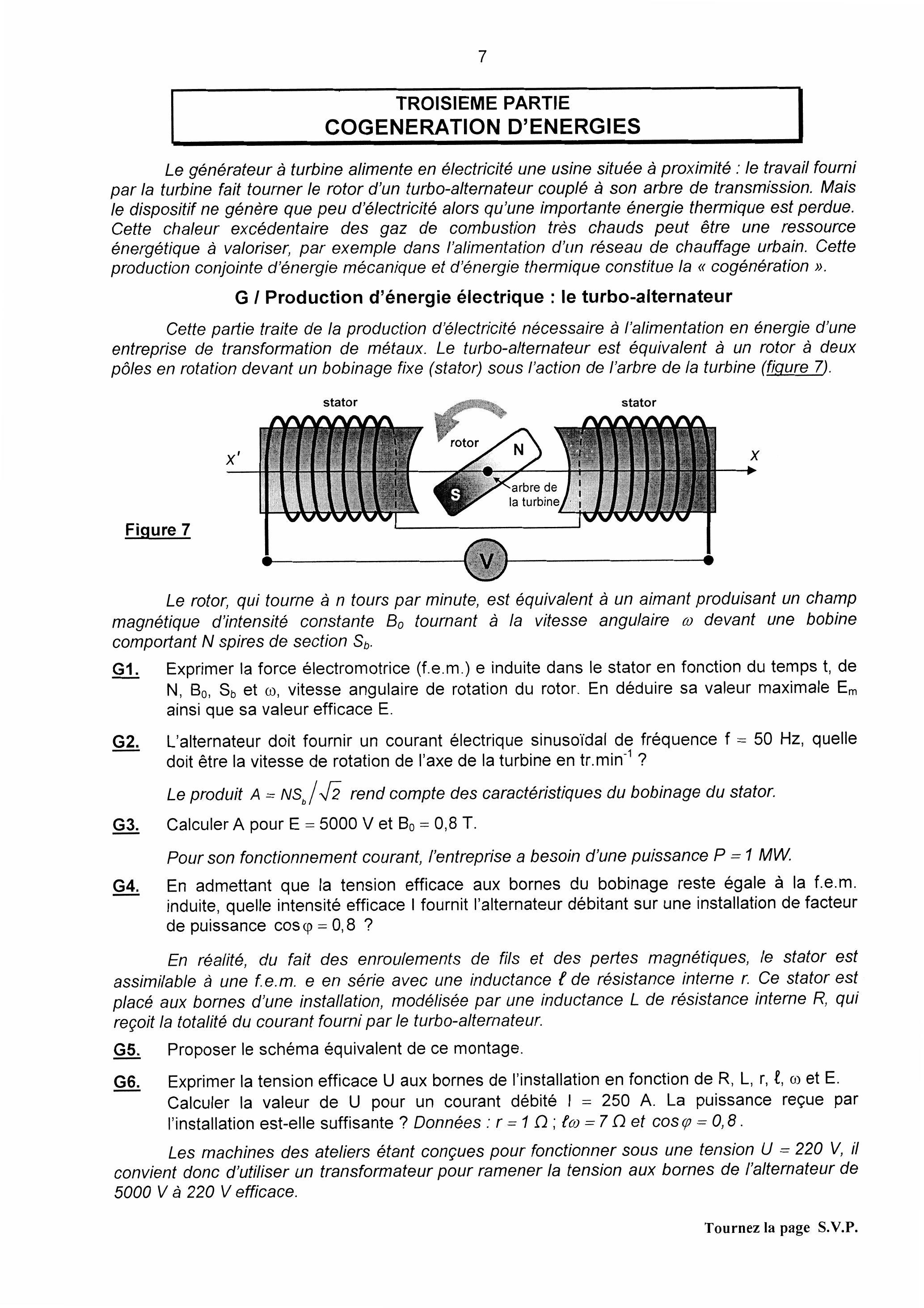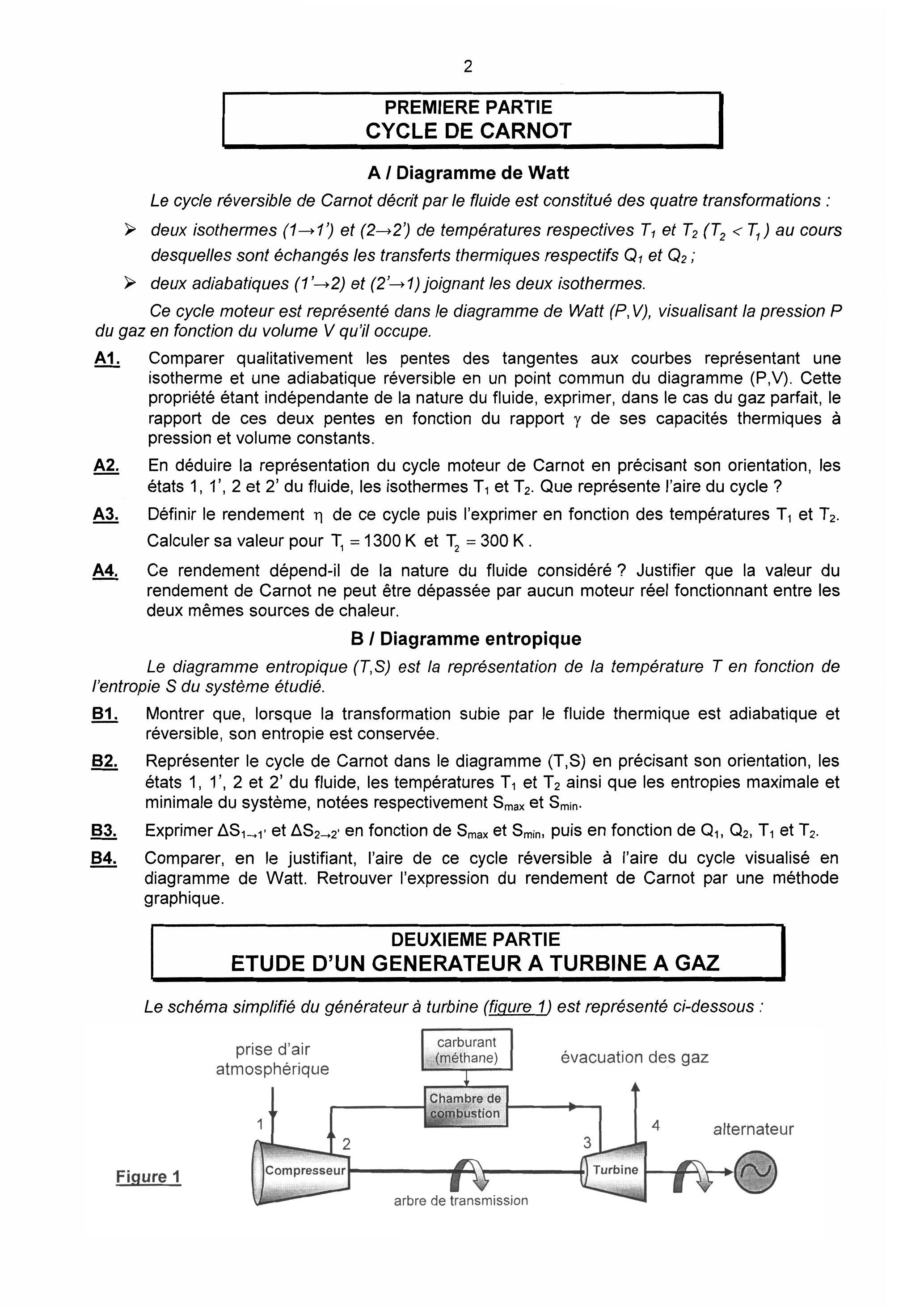 Le problème, consacré au fonctionnement d'un générateur à turbine, se décompose en quatre volets :