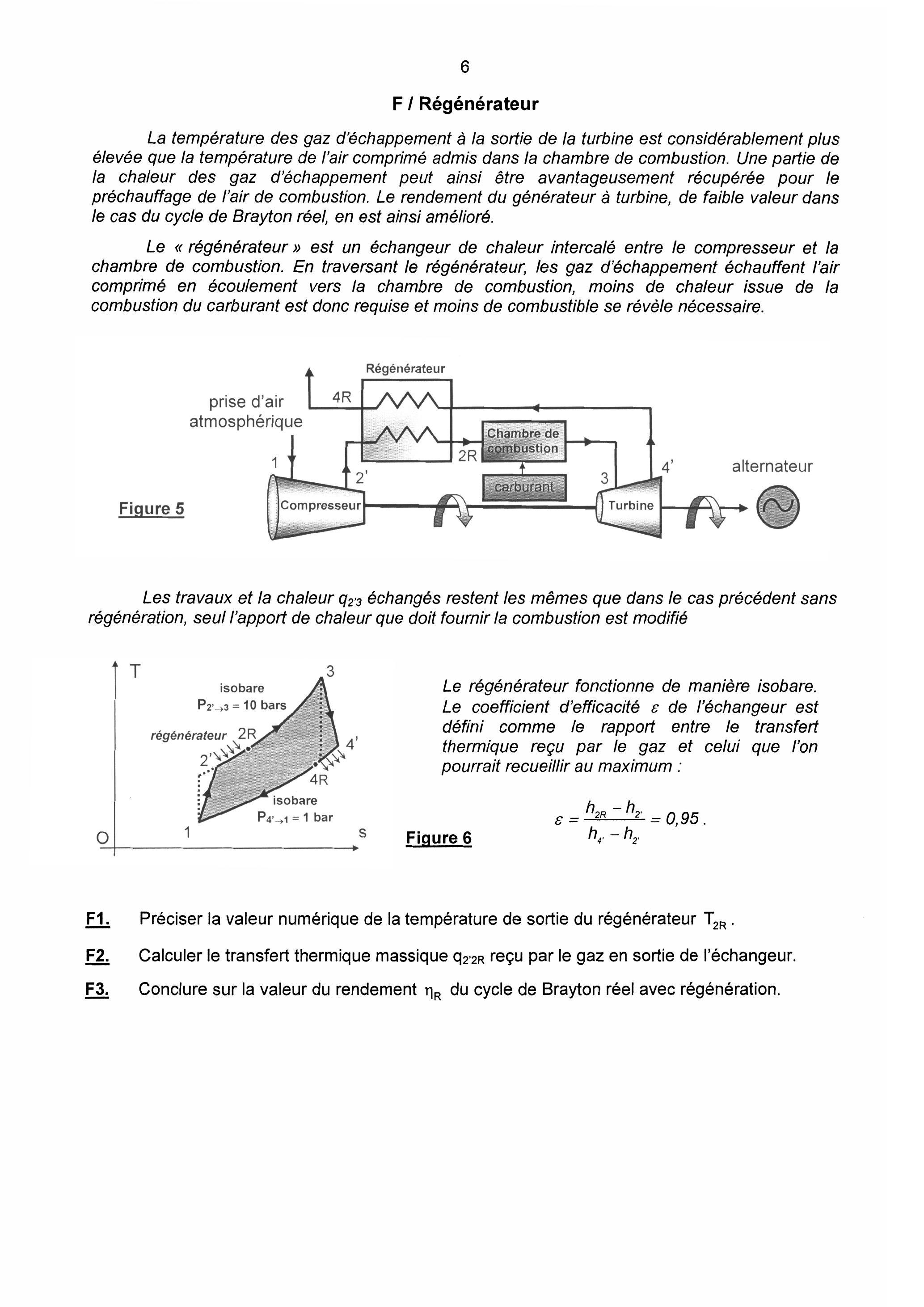 la deuxième partie traite d'un générateur à turbine à gaz fonctionnant sur un cycle de Brayton ; l'énergie thermique des gaz sortant de la turbine est réutilisée pour améliorer le rendement de la turbine, c'est la régénération;