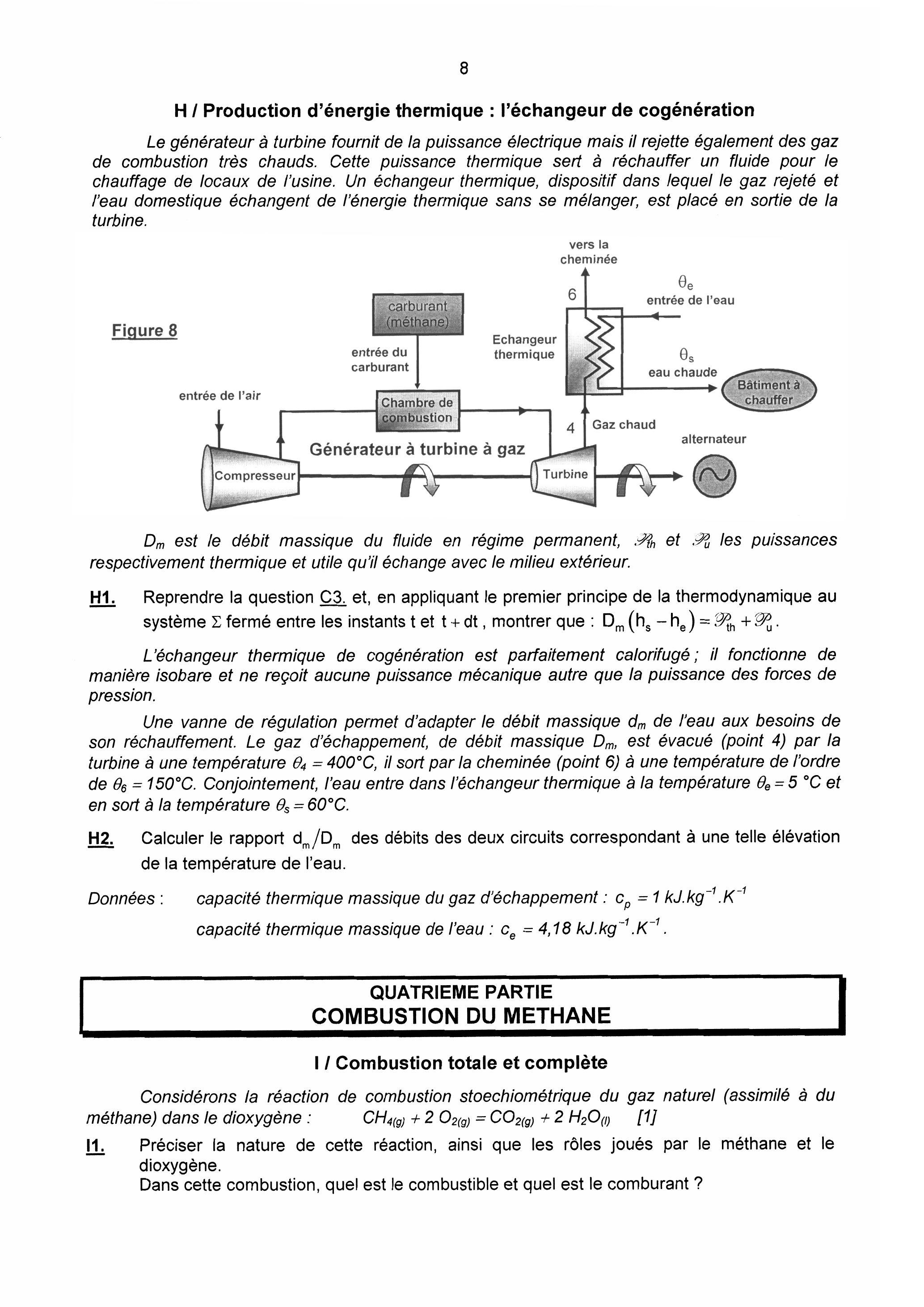 la quatrième partie concerne, d'un point de vue chimique, la combustion de gaz naturel dans la turbine.