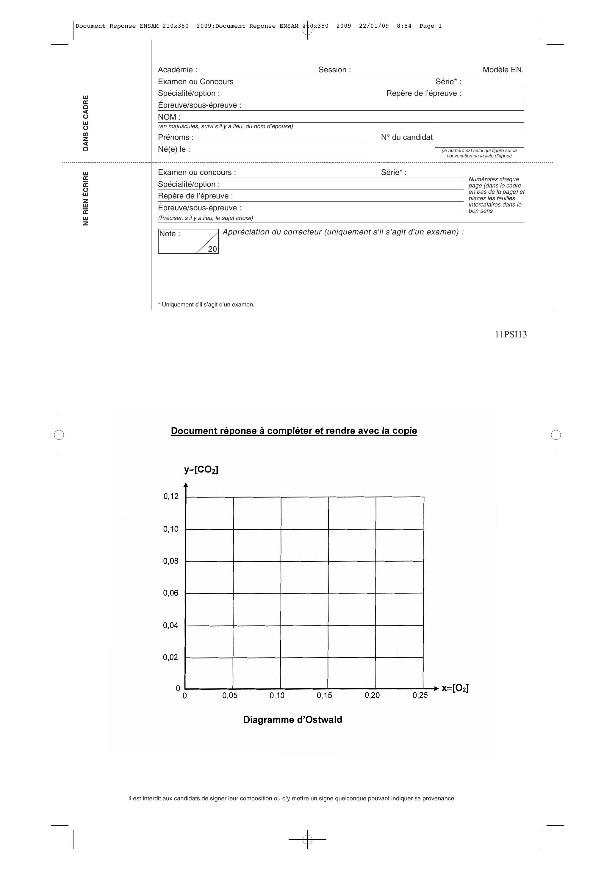 un document-réponse (en partie chimie) devra être complété puis remis avec la copie.
