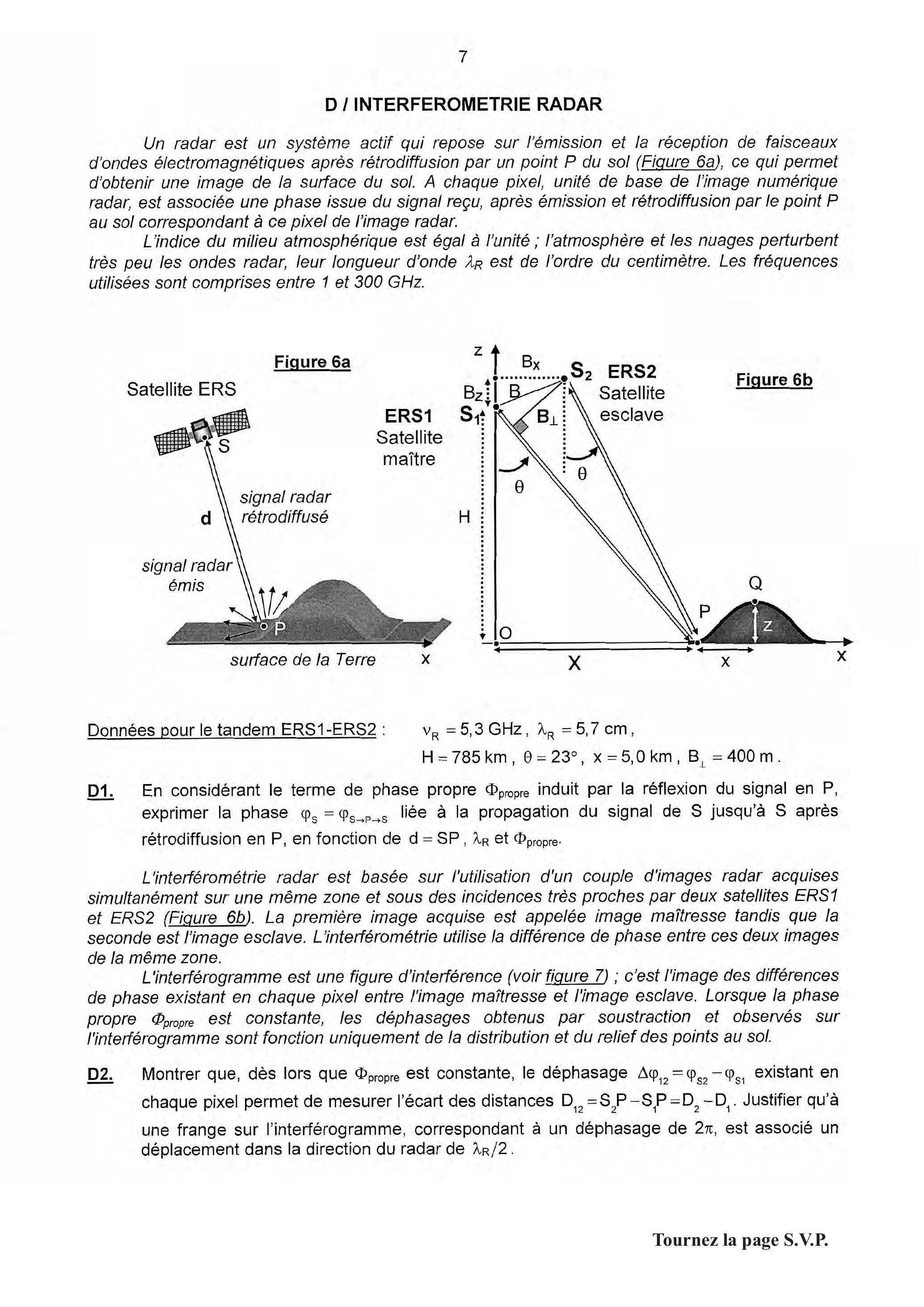 D2. Montrer que, dès lors que é existant en chaque pixel permet de mesurer l'écart des distances . Justifier qu'à une frange sur l'interférogramme, correspondant à un déphasage de , est associé un déplacement dans la direction du radar de .