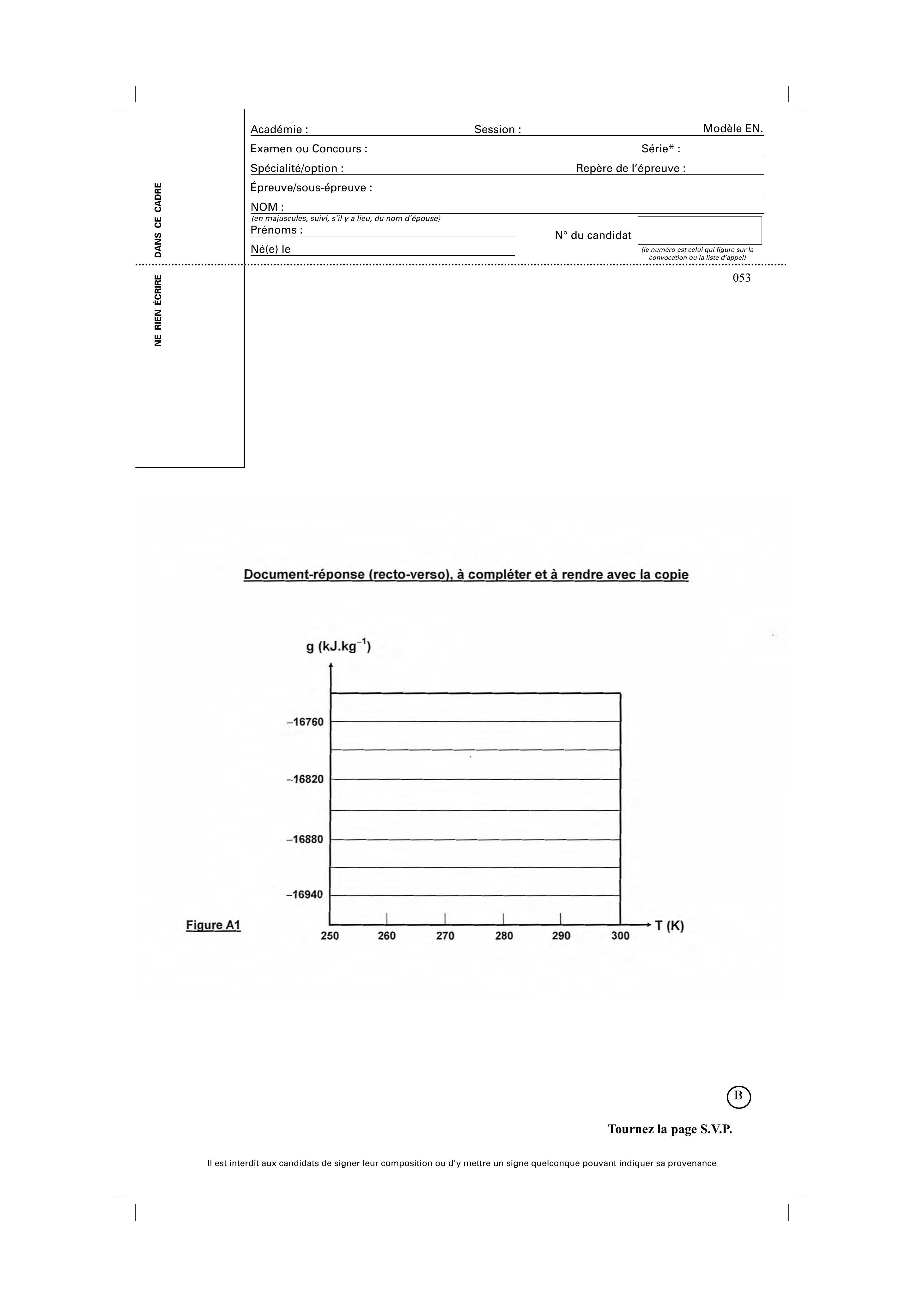le document-réponse (recto/verso) devra être complété puis remis avec la copie.