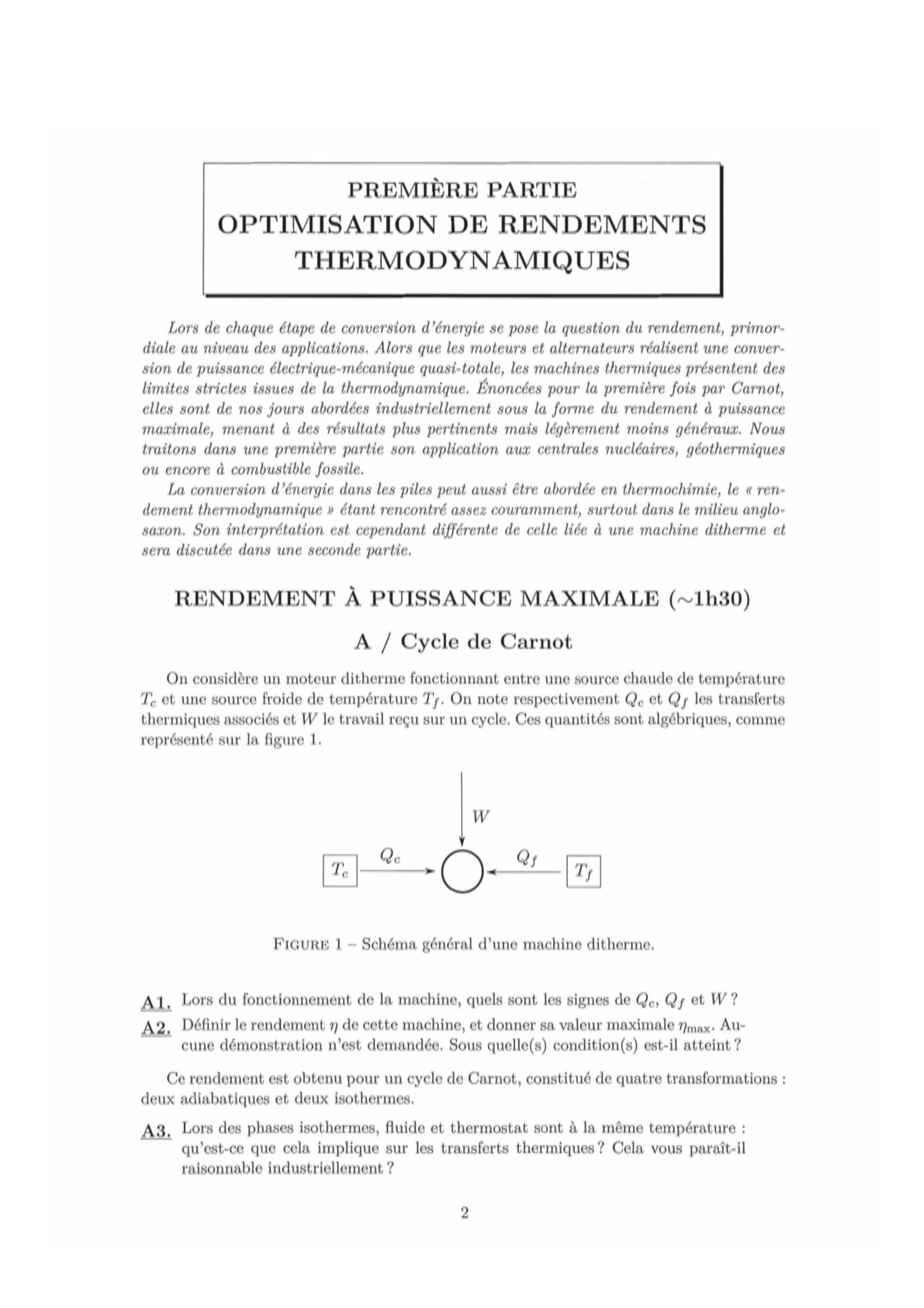 PREMIÈRE PARTIE OPTIMISATION DE RENDEMENTS THERMODYNAMIQUES