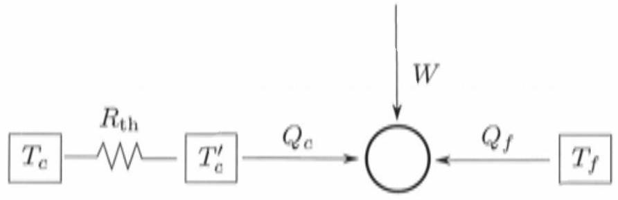 • une transformation isotherme à , associée à un transfert thermique avec la source chaude de température . On note sa durée et la résistance thermique associée .