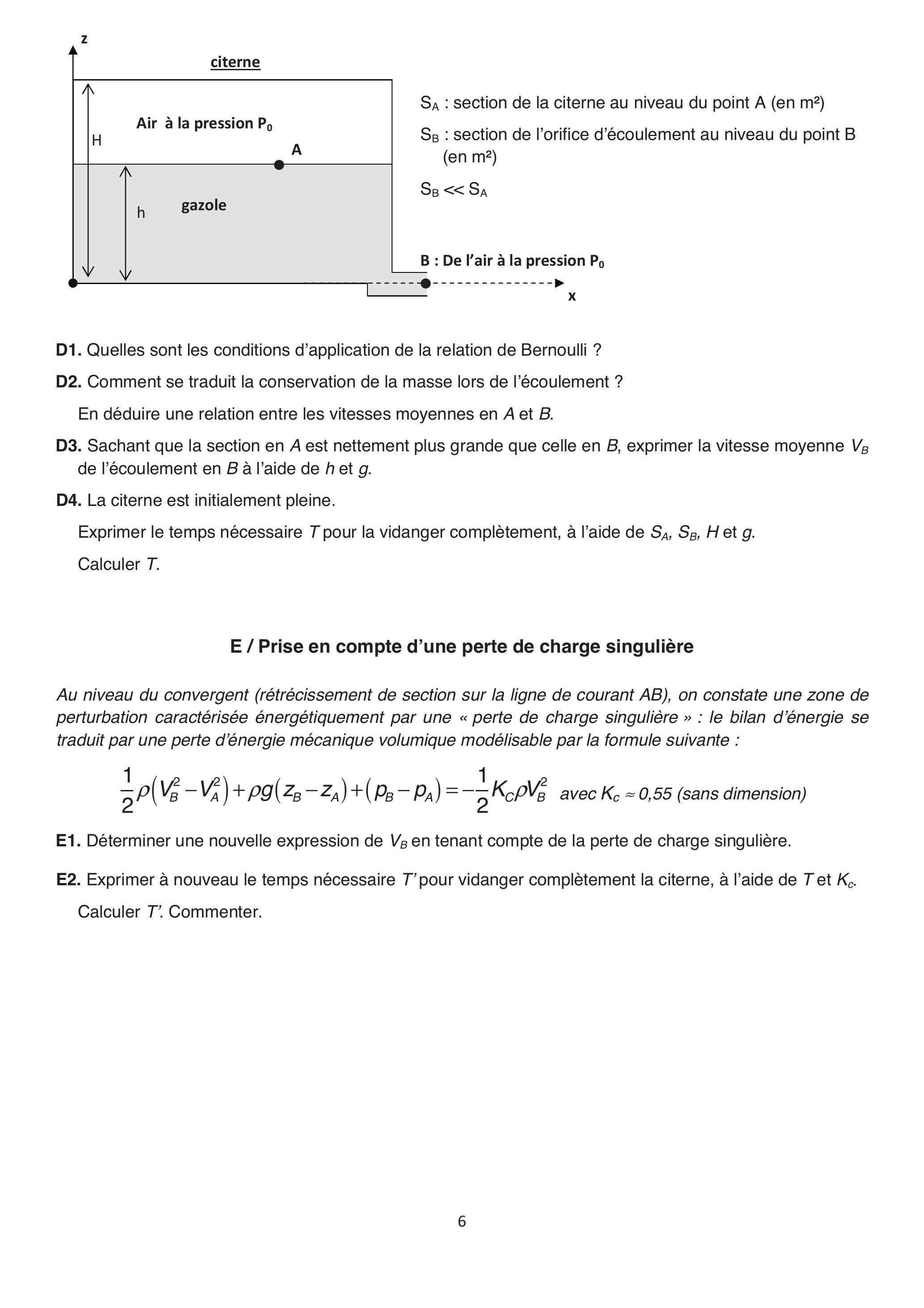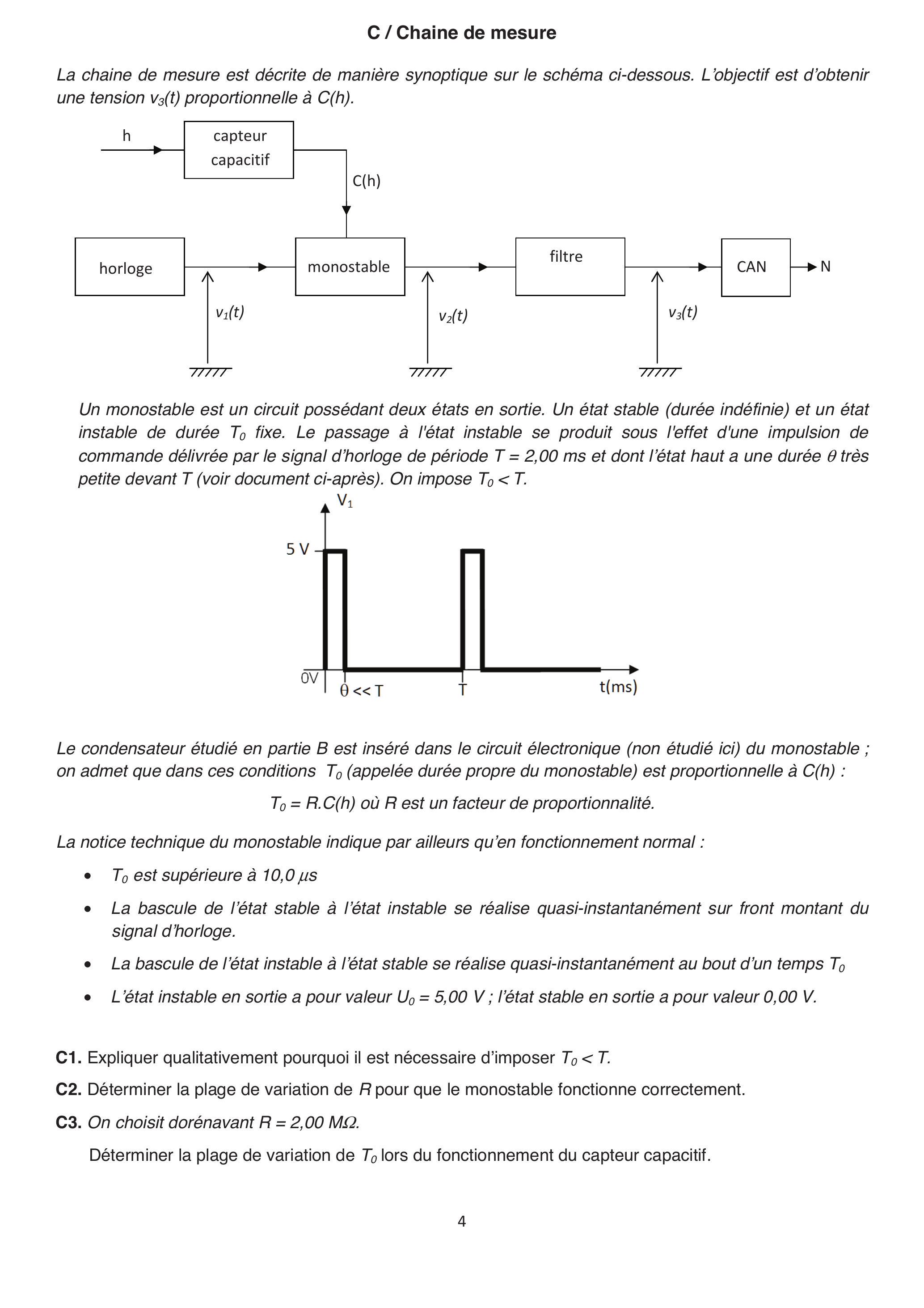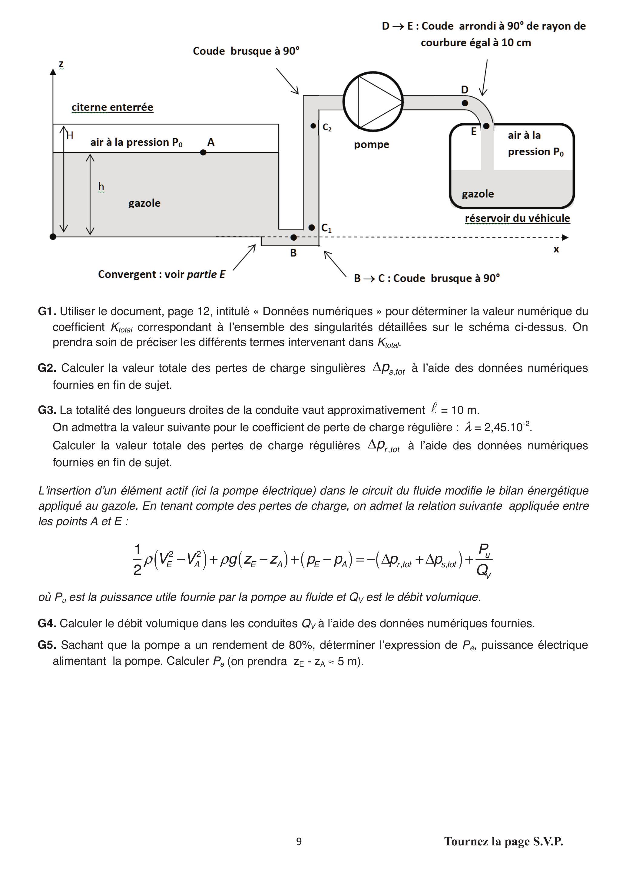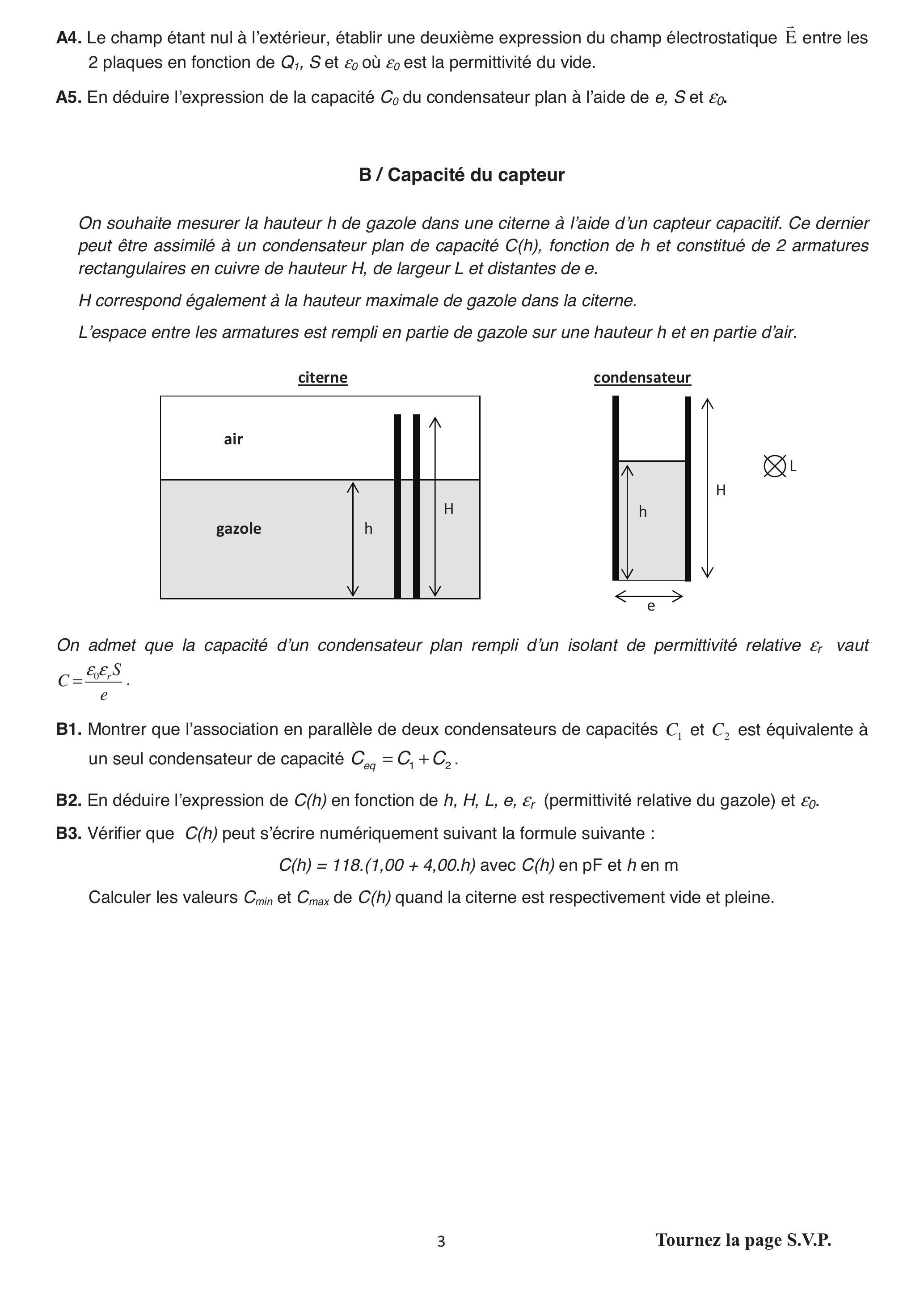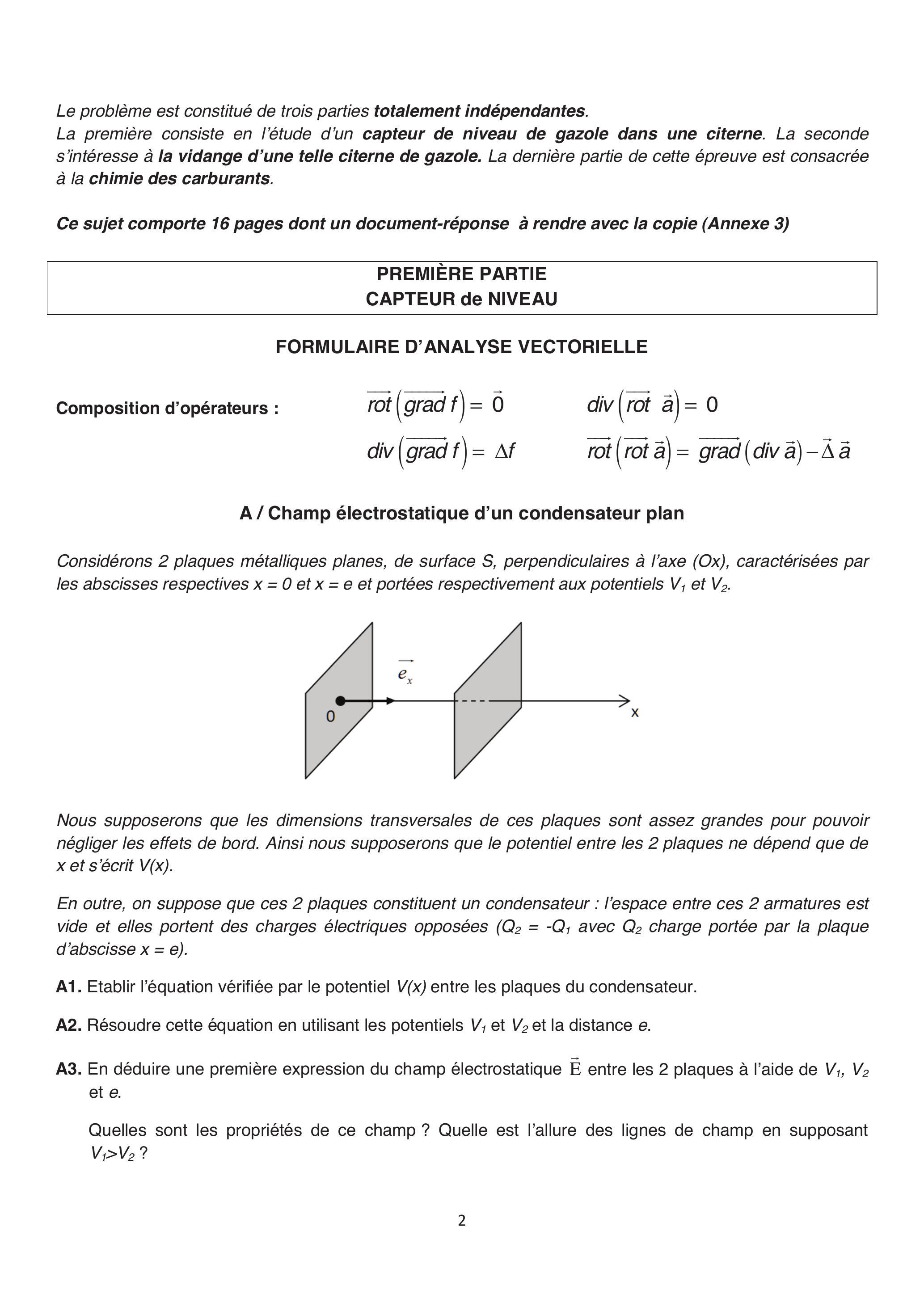 La première consiste en l'étude d'un capteur de niveau de gazole dans une citerne. La seconde s'intéresse à la vidange d'une telle citerne de gazole. La dernière partie de cette épreuve est consacrée à la chimie des carburants.