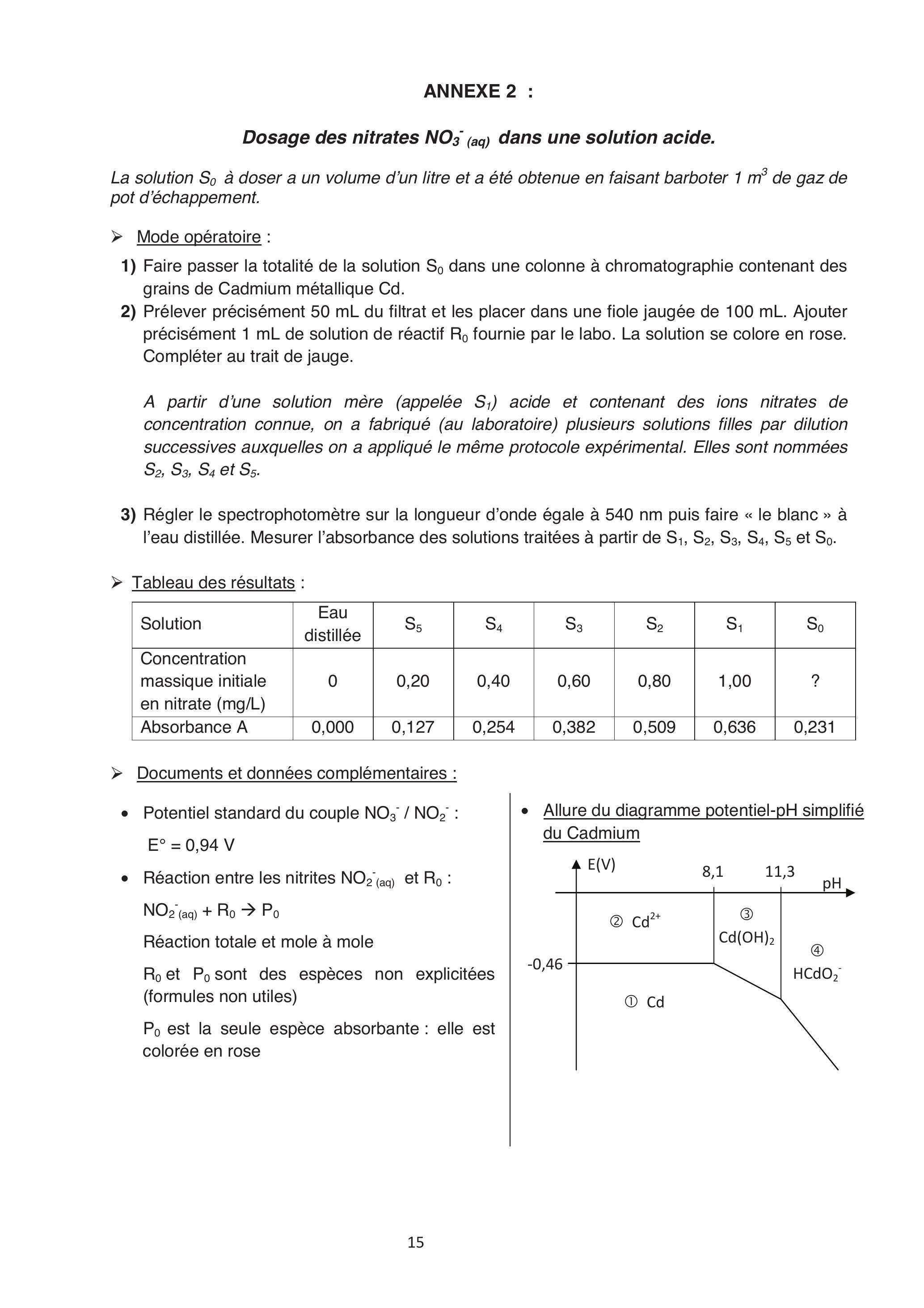 A partir d'une solution mère (appelée ) acide et contenant des ions nitrates de concentration connue, on a fabriqué (au laboratoire) plusieurs solutions filles par dilution successives auxquelles on a appliqué le même protocole expérimental. Elles sont nommées et .