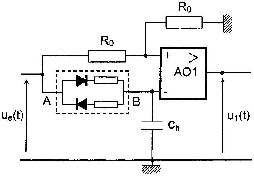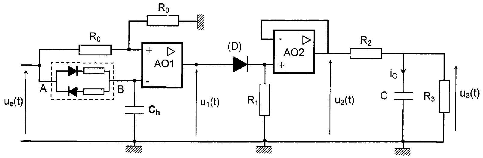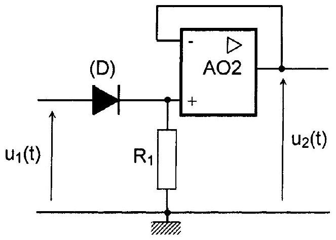 délivrée par le circuit précédent. II comprend un amplificateur opérationnel idéal (AO2) en régime linéaire et une diode (D) idéale.