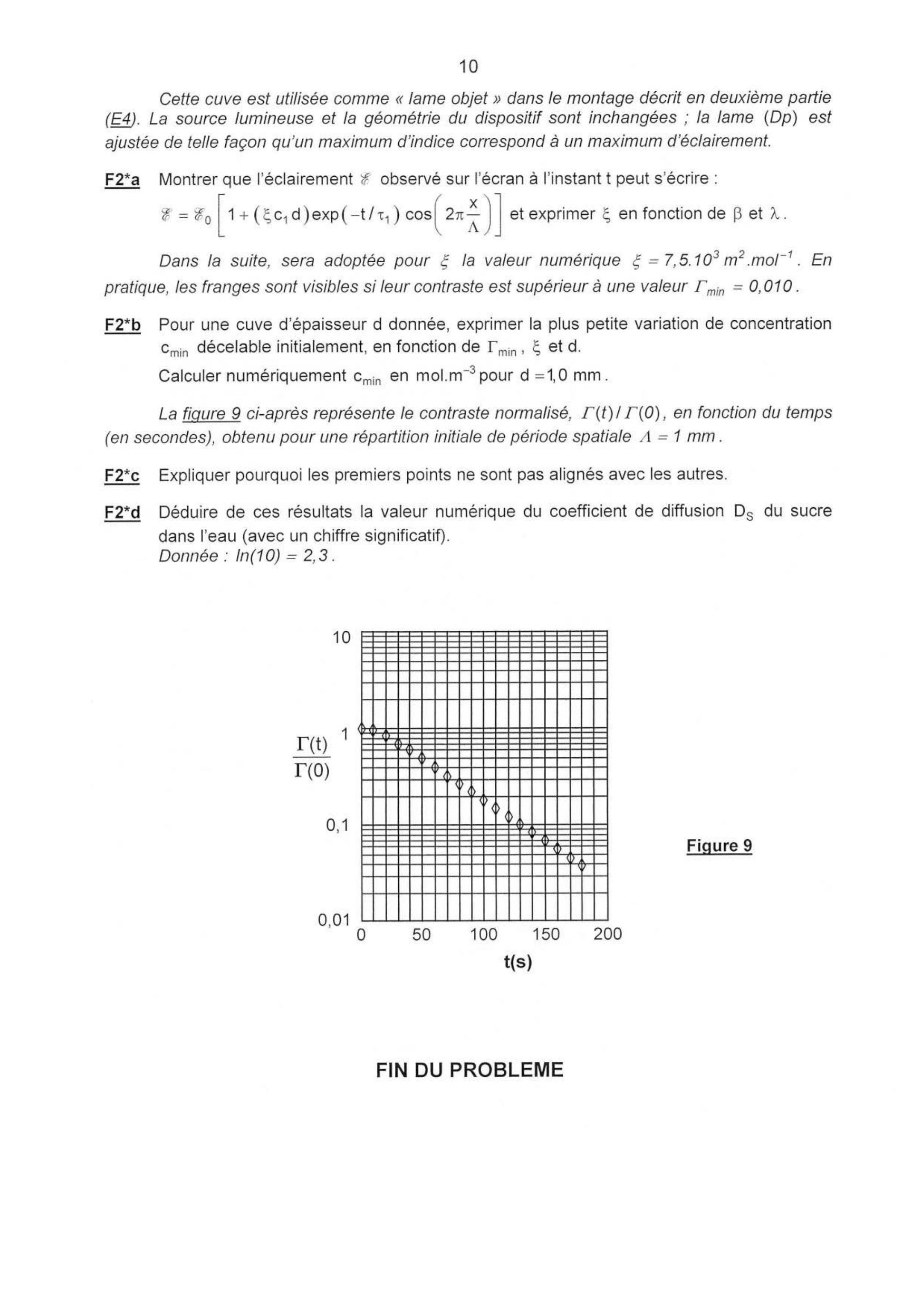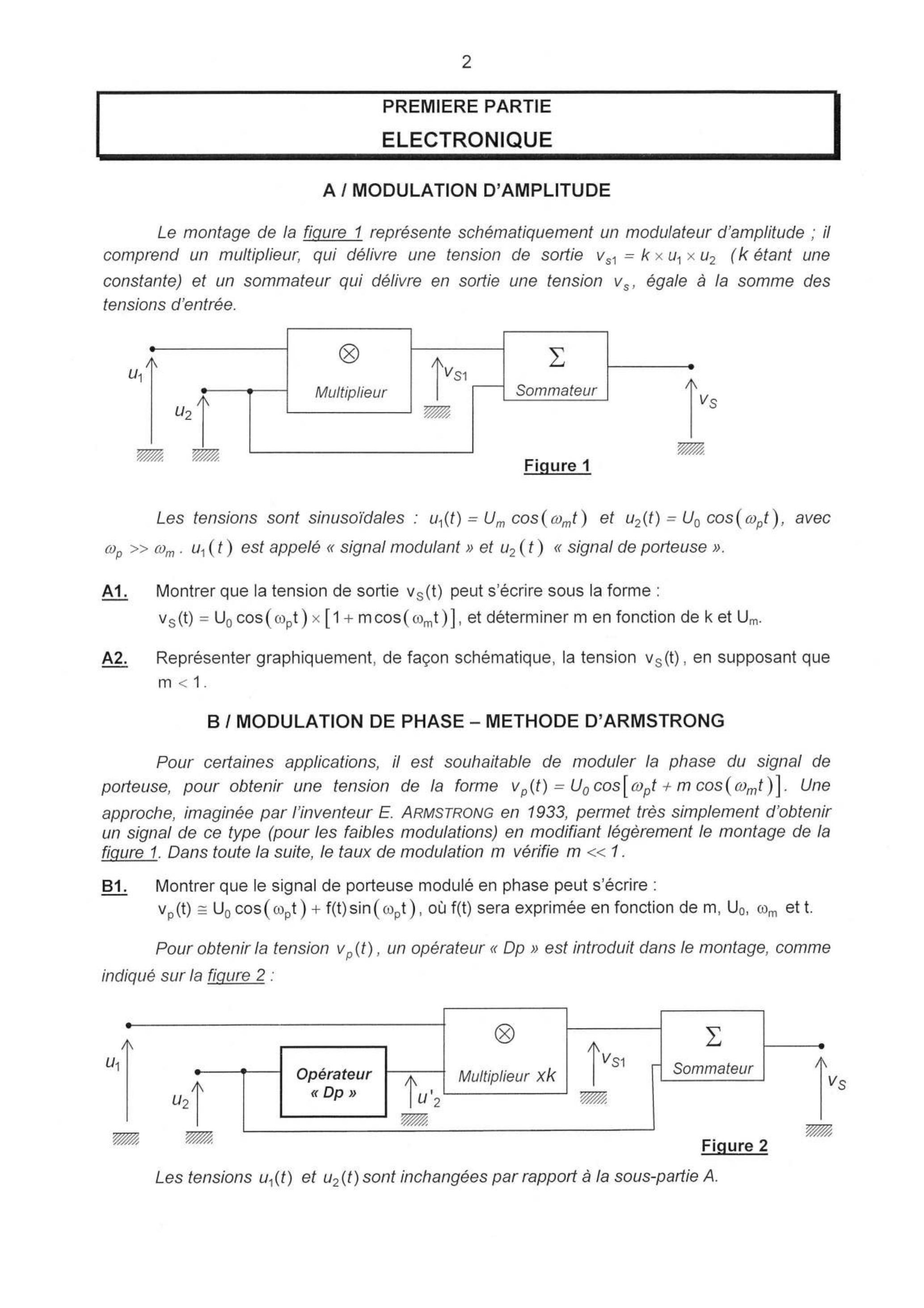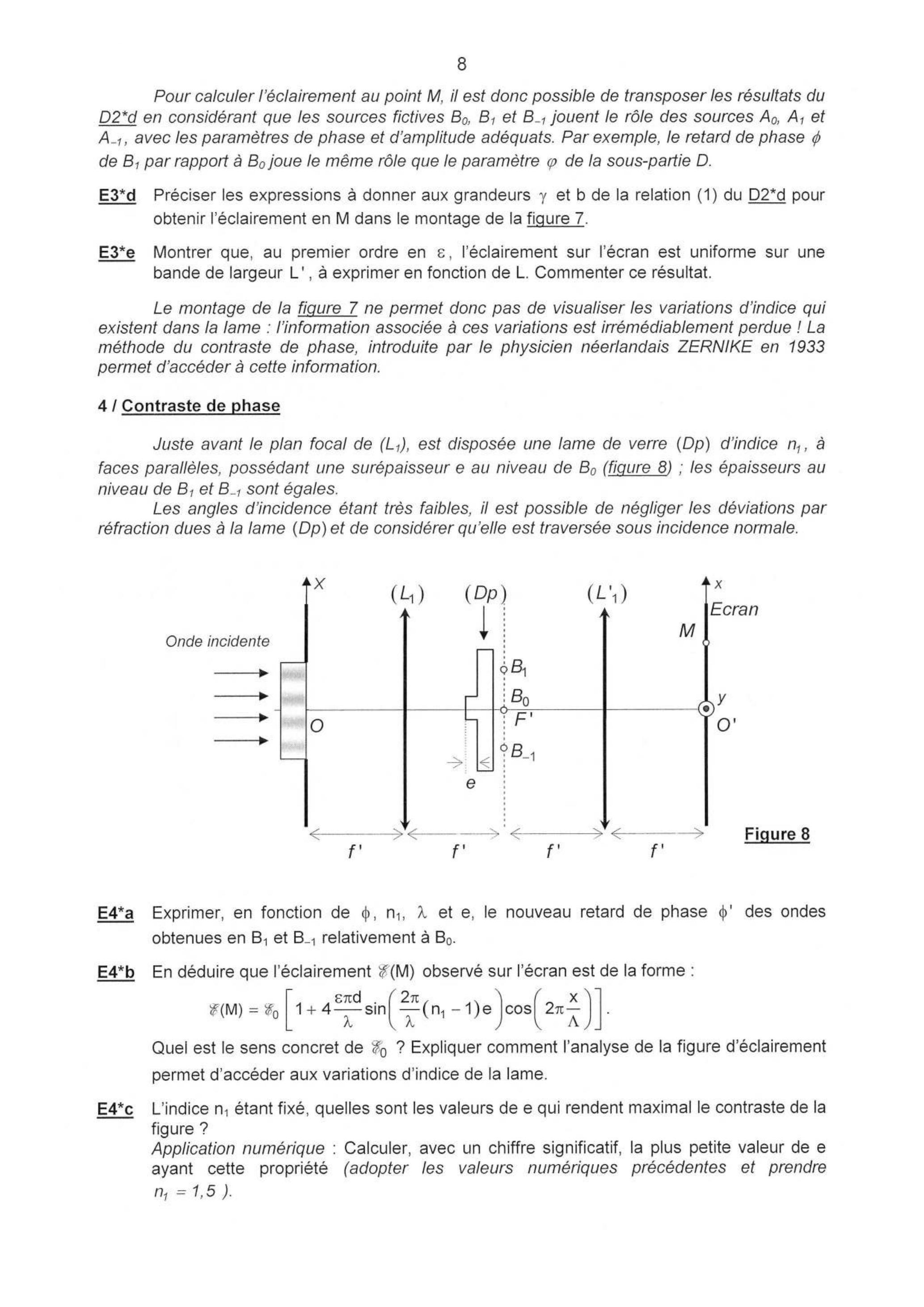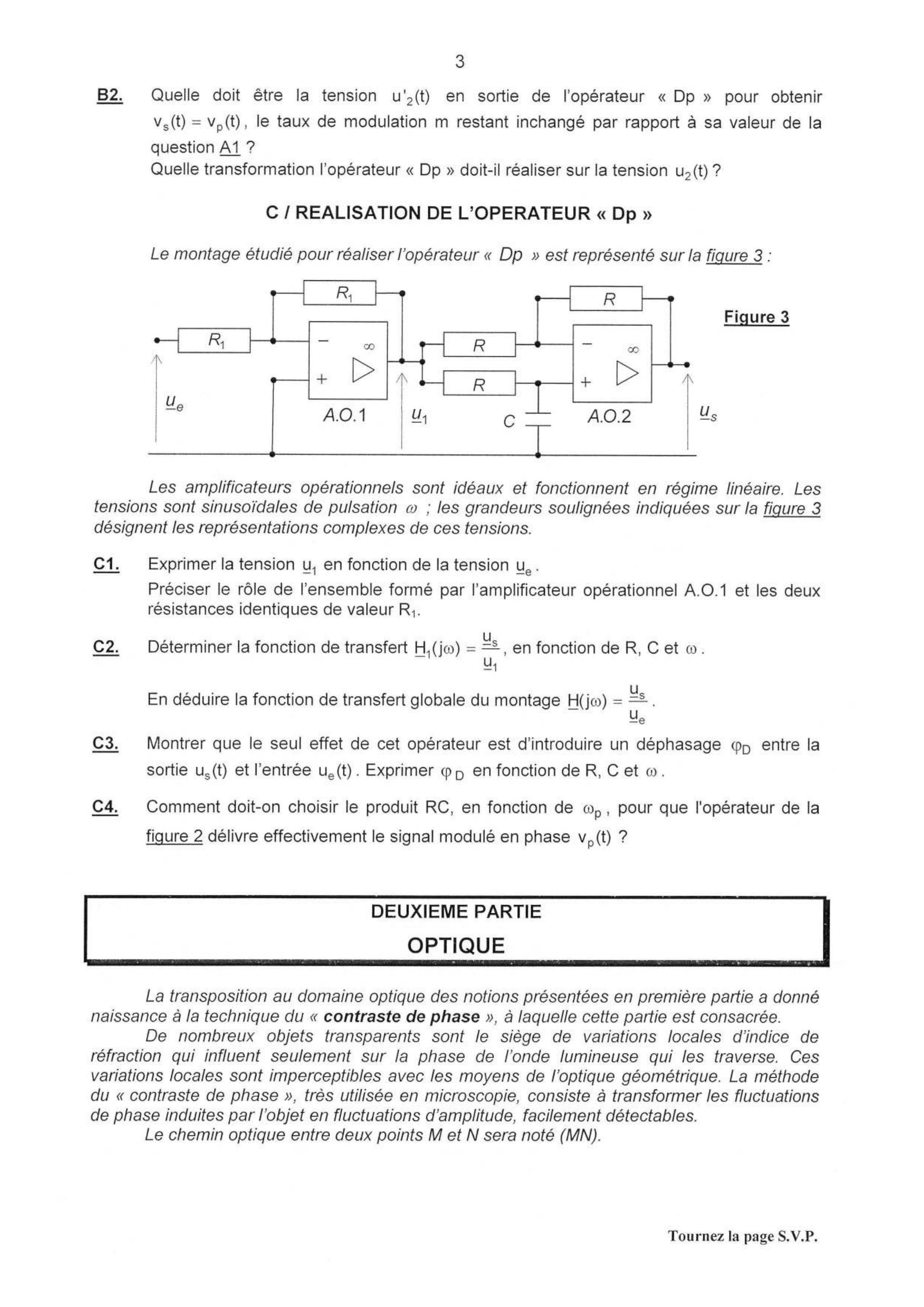 Le problème est constitué de trois parties très largement indépendantes entre elles. La partie A présente une technique permettant de moduler la phase d'un signal électrique. La partie B est consacrée à l'étude de la méthode dite de «contraste de phase », qui permet de transformer un signal optique modulé en phase en un signal optique modulé en amplitude. Enfin la partie C analyse une application de cette technique à un problème de diffusion de particules.