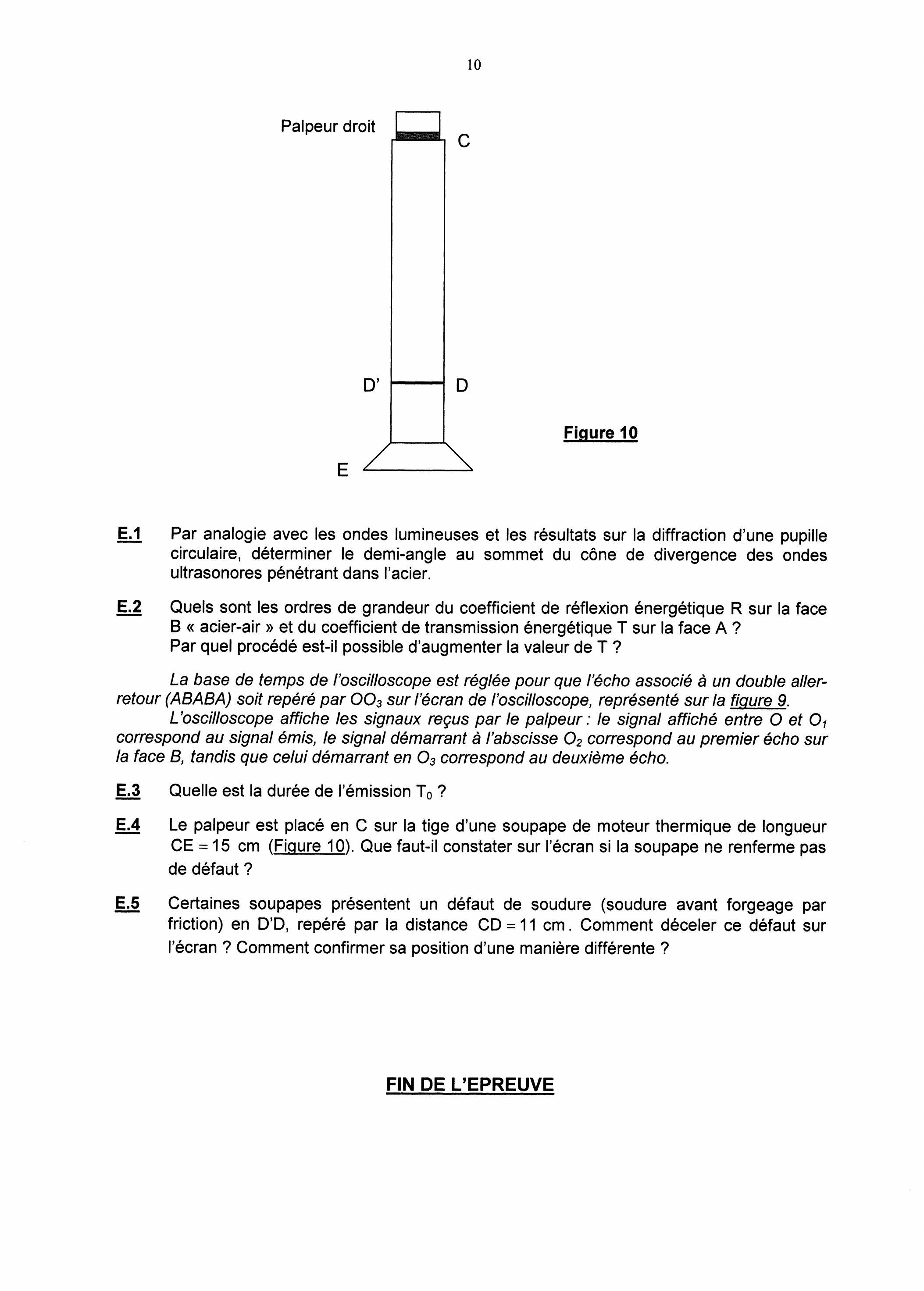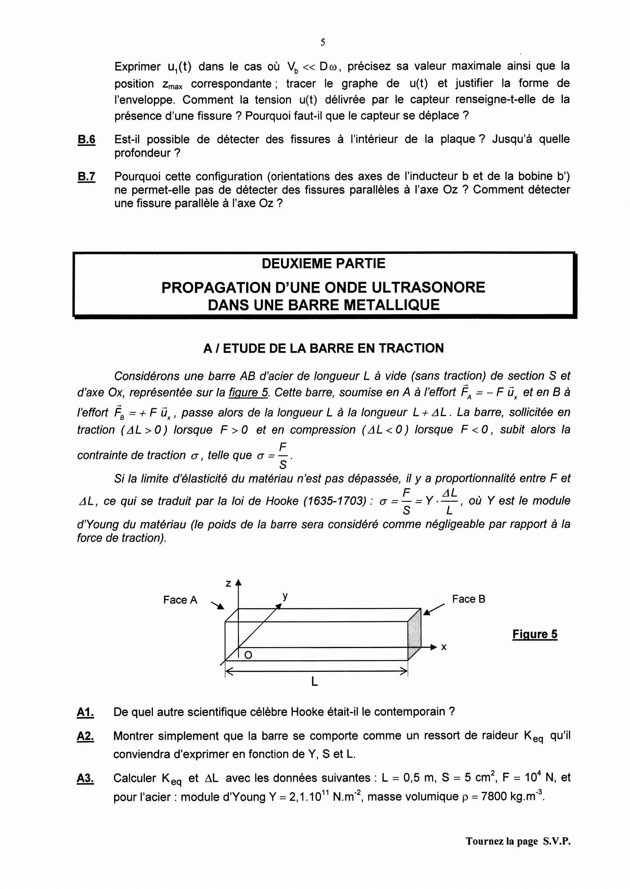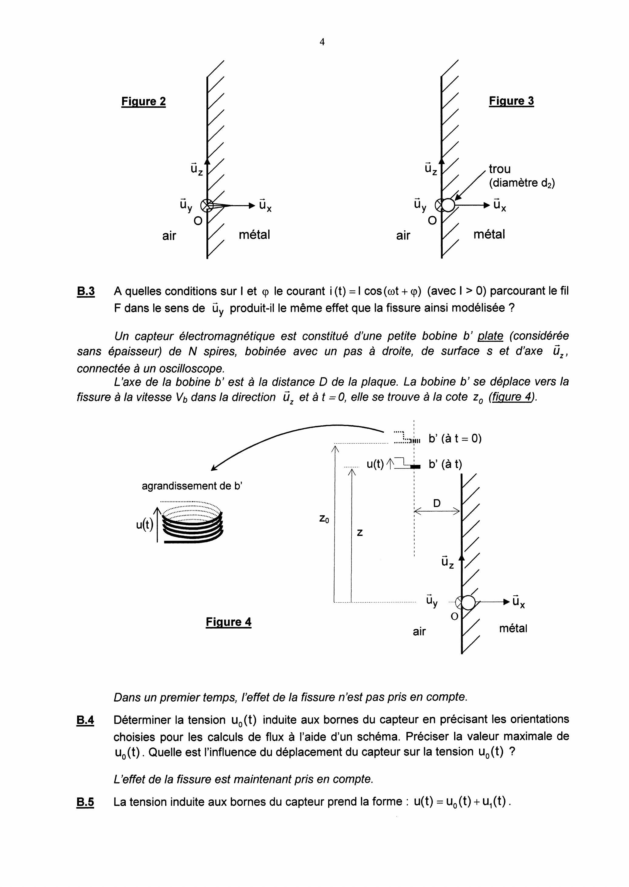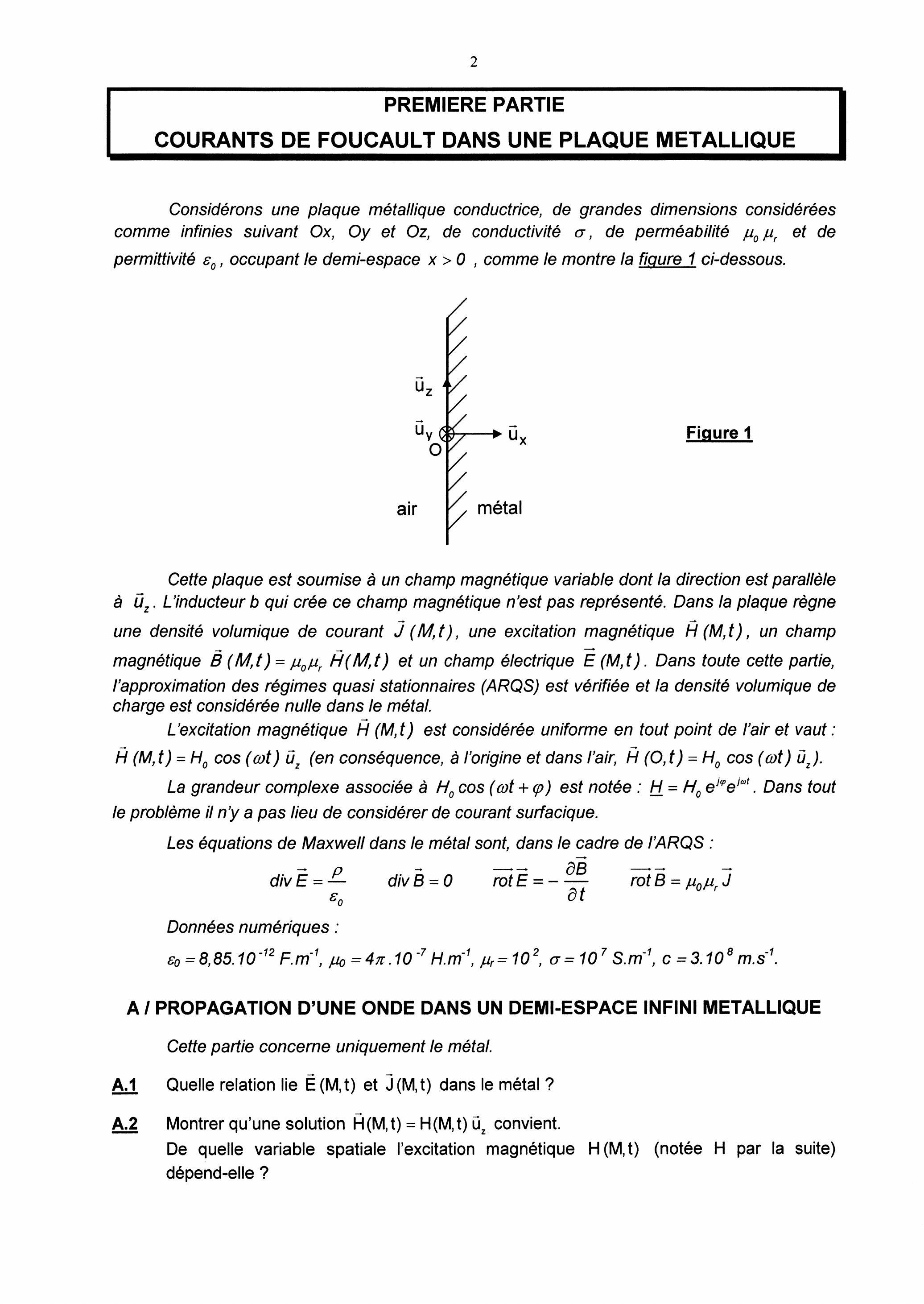 Le problème comporte deux parties totalement indépendantes: l'étude des courants de Foucault dans une plaque métallique, débouchant sur la technique de contrôle associée ( è partie) puis la propagation d'une onde ultrasonore dans une barre d'acier et l'application au contrôle non destructif par ultrasons ( partie).