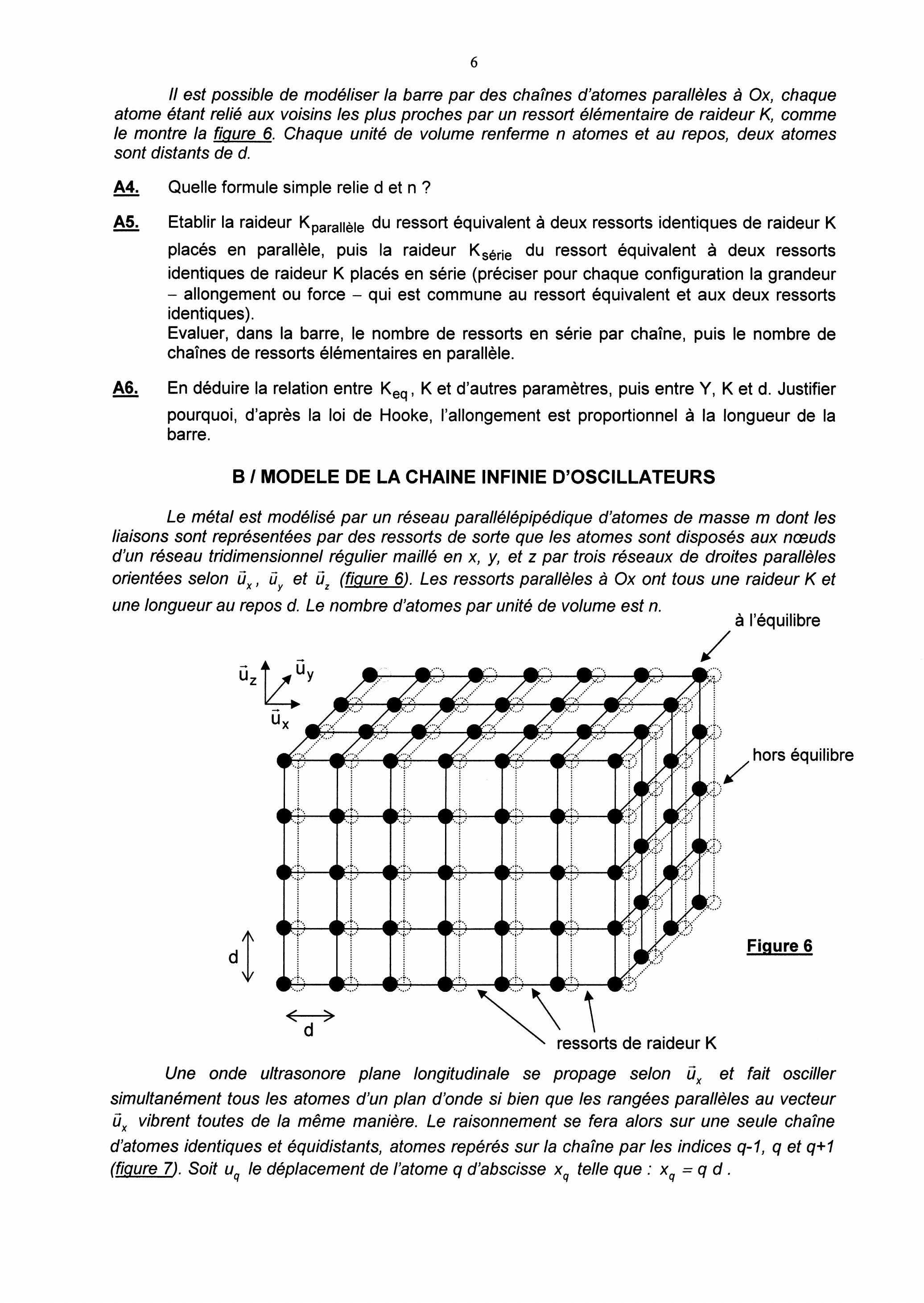 Le métal est modélisé par un réseau parallélépipédique d'atomes de masse dont les liaisons sont représentées par des ressorts de sorte que les atomes sont disposés aux nœuds d'un réseau tridimensionnel régulier maillé en , et par trois réseaux de droites parallèles orientées selon et (figure 6). Les ressorts parallèles à Ox ont tous une raideur K et une longueur au repos . Le nombre d'atomes par unité de volume est .
