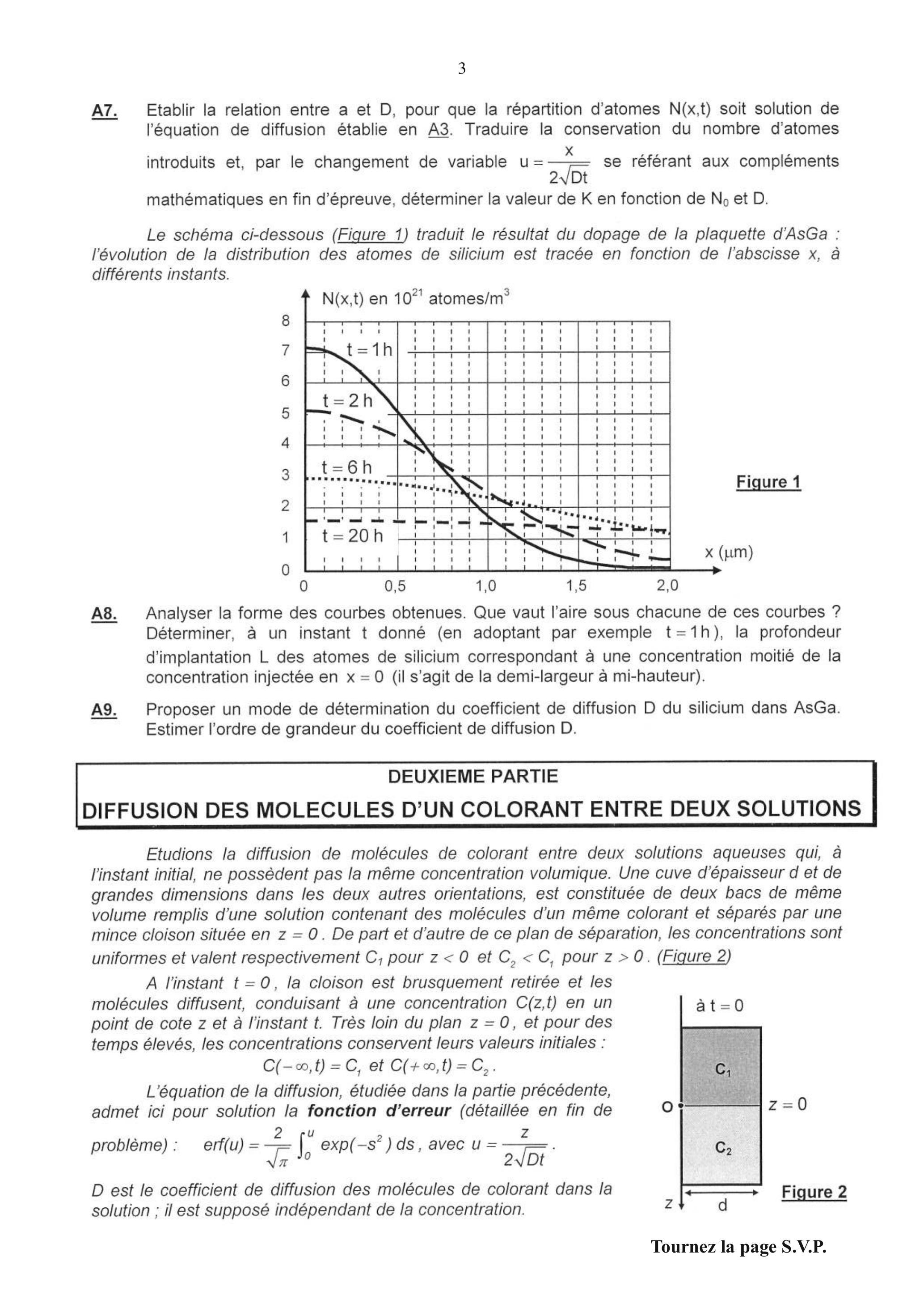 L'équation de la diffusion, étudiée dans la partie précédente, admet ici pour solution la fonction d'erreur (détaillée en fin de problème) : , avec .
