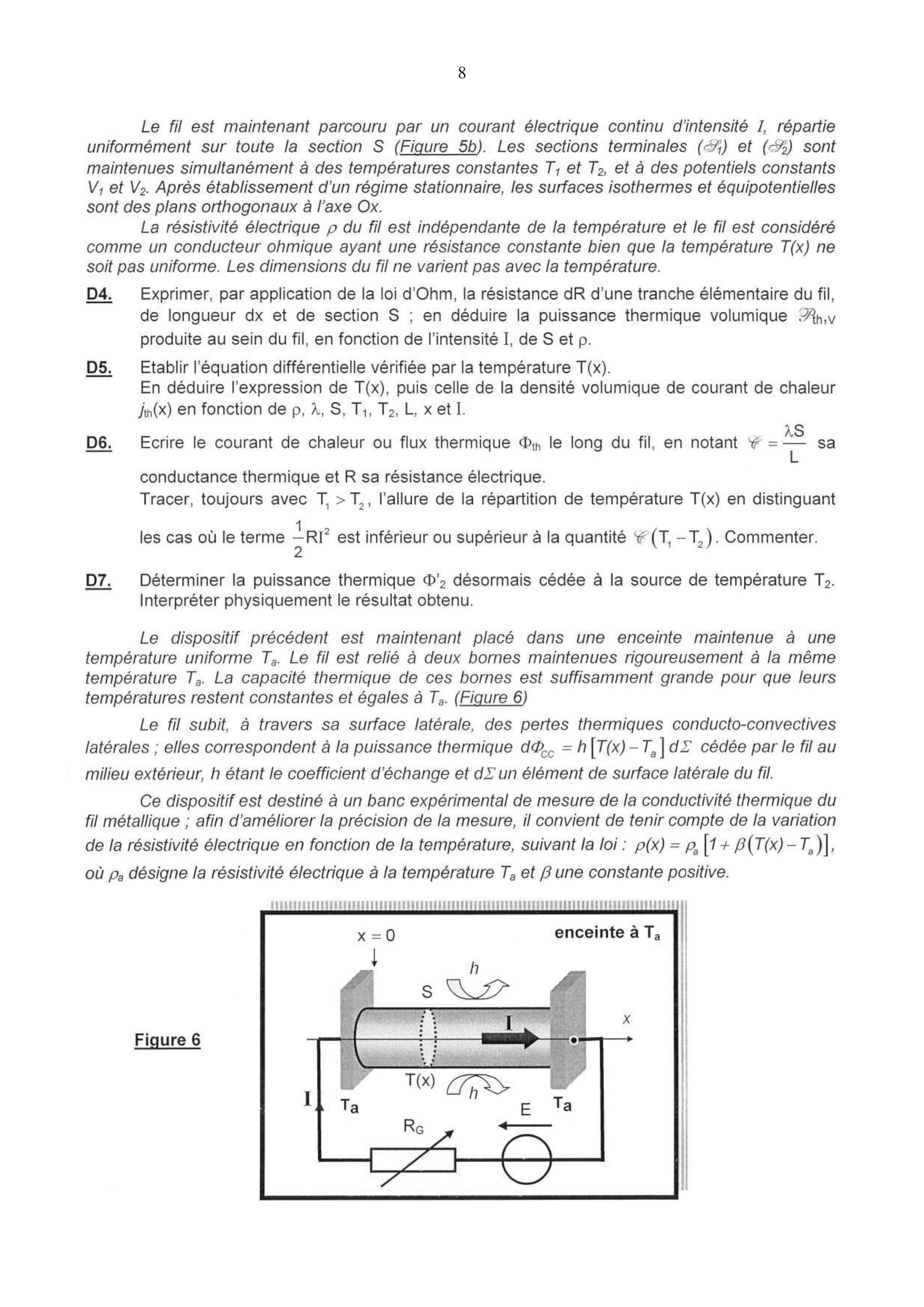 D12. Le coefficient d'échange étant déterminé par ailleurs à l'aide d'une autre expérience, proposer le mode de détermination de la conductivité thermique du métal constituant le fil.