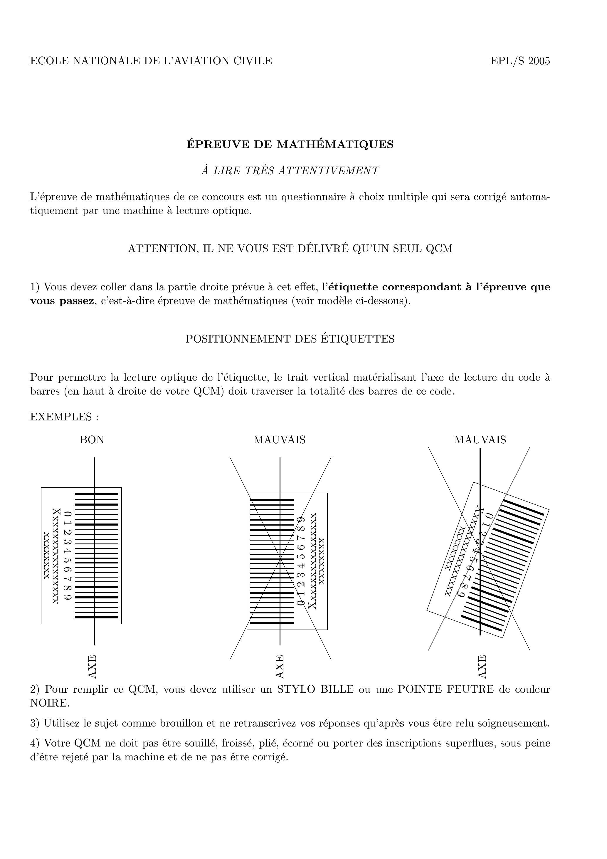 ENAC Mathématiques Sup 2005 - Version Web LaTeX | WikiPrépa | WikiPrépa