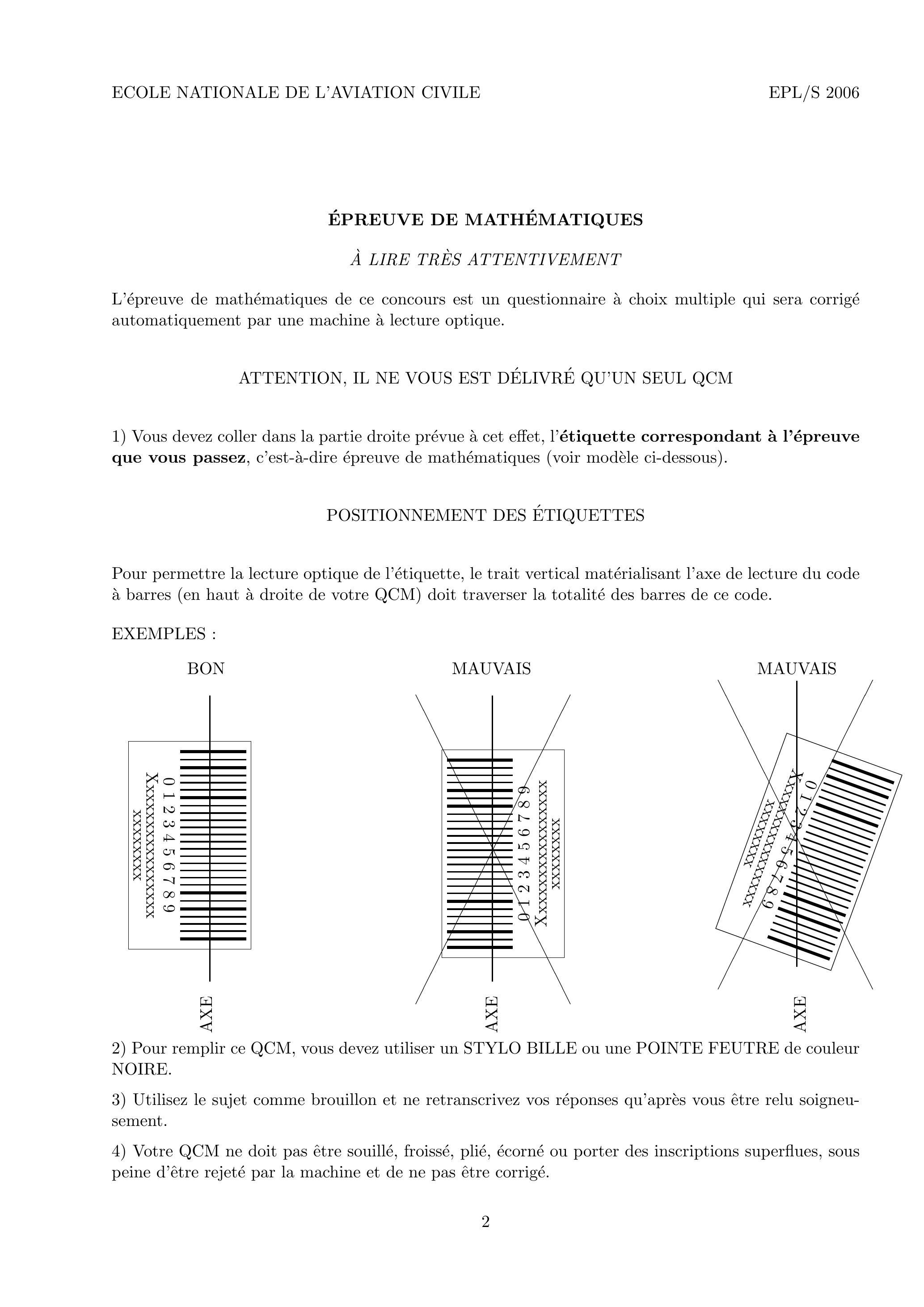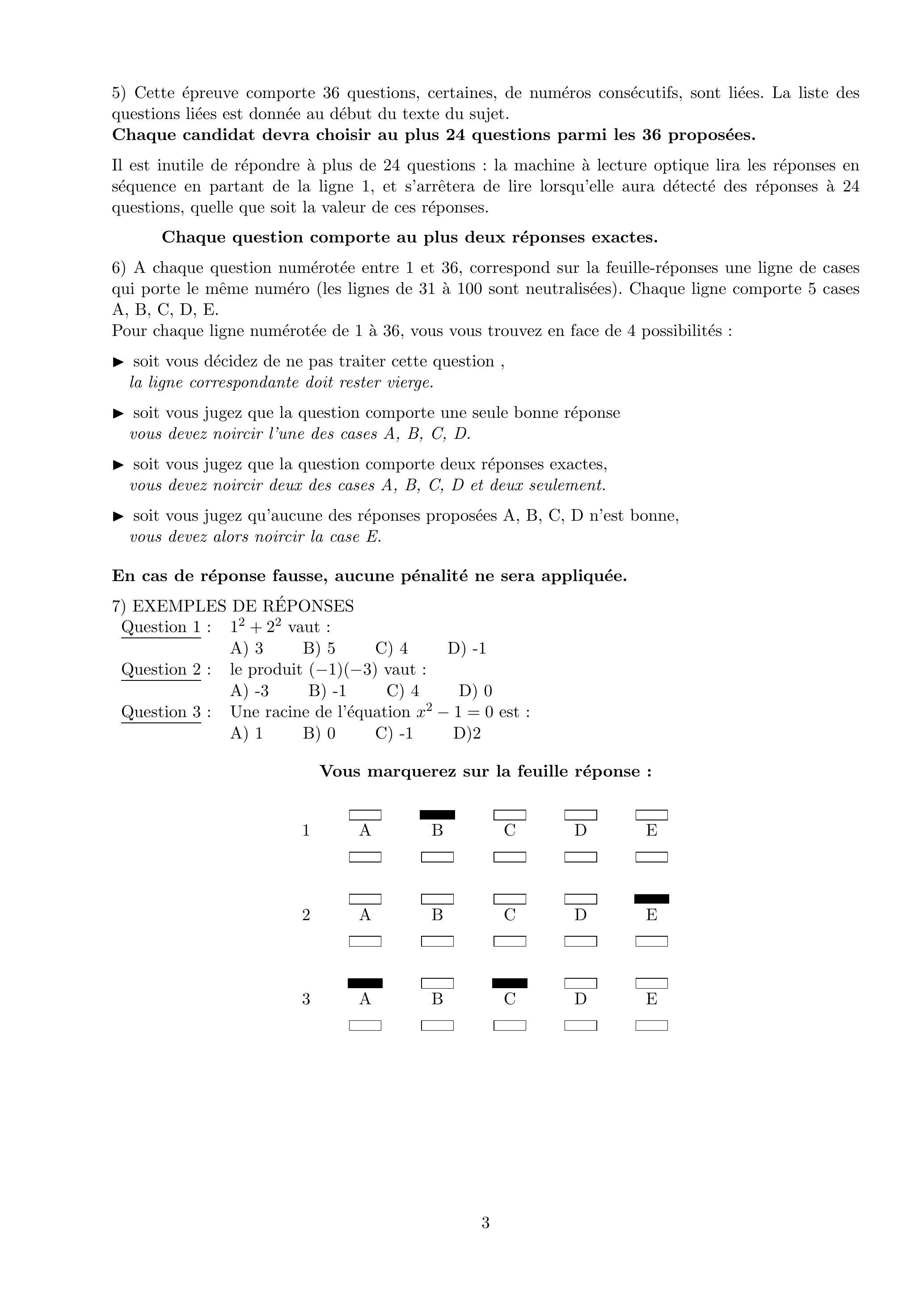 L'épreuve de mathématiques de ce concours est un questionnaire à choix multiple qui sera corrigé automatiquement par une machine à lecture optique.