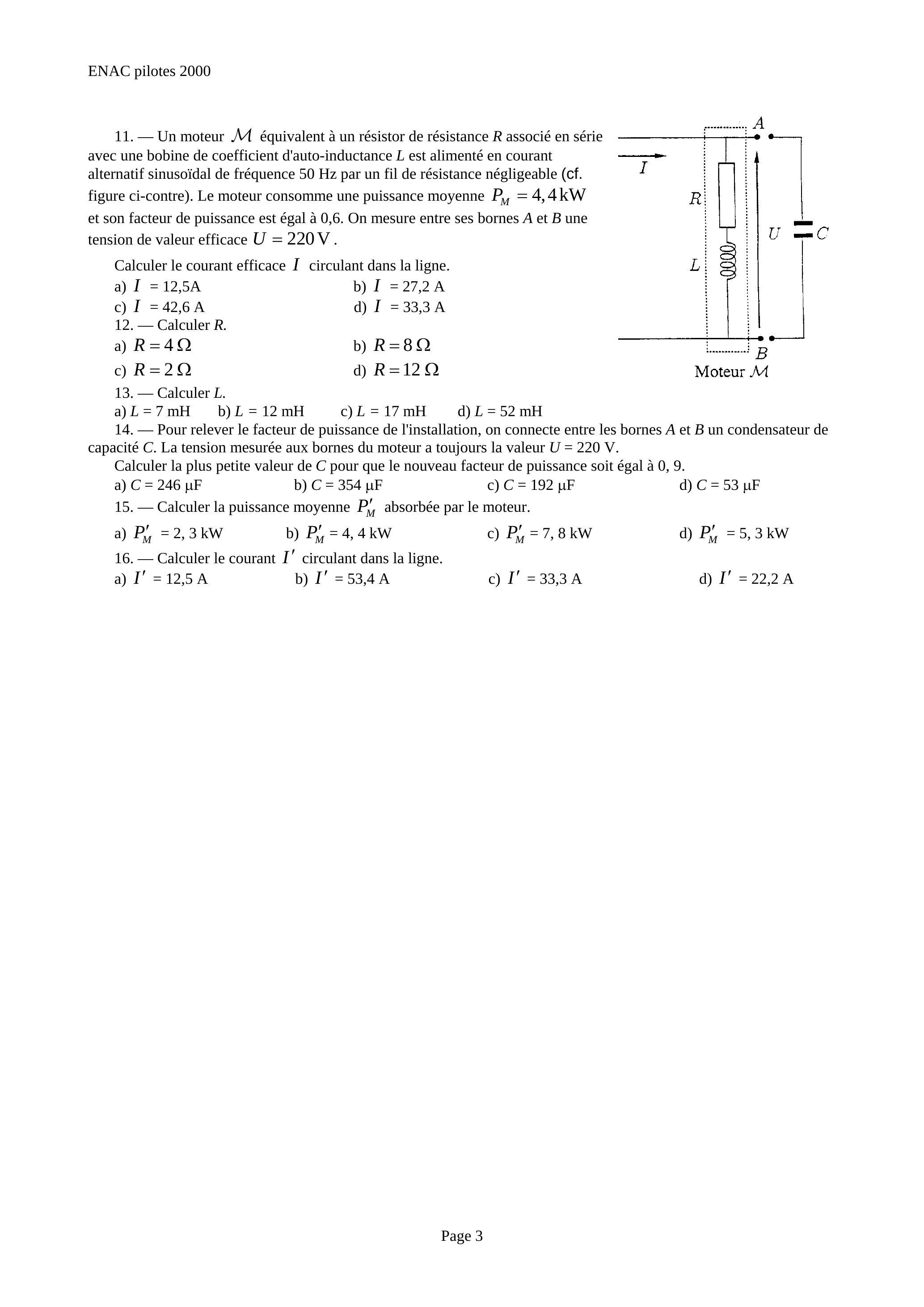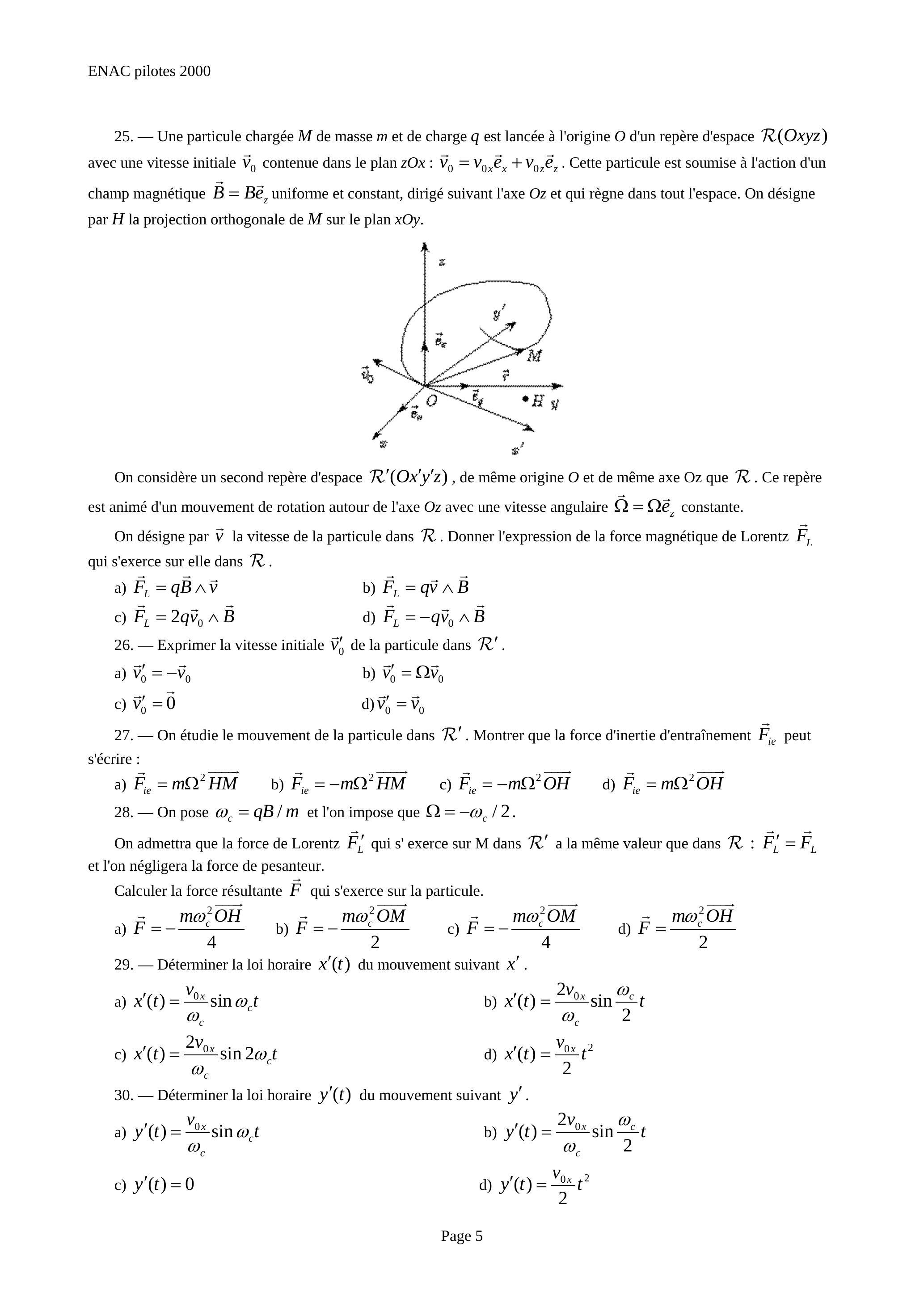 ENAC Physique QCM MPSI 2000 - Version Web LaTeX | WikiPrépa | WikiPrépa