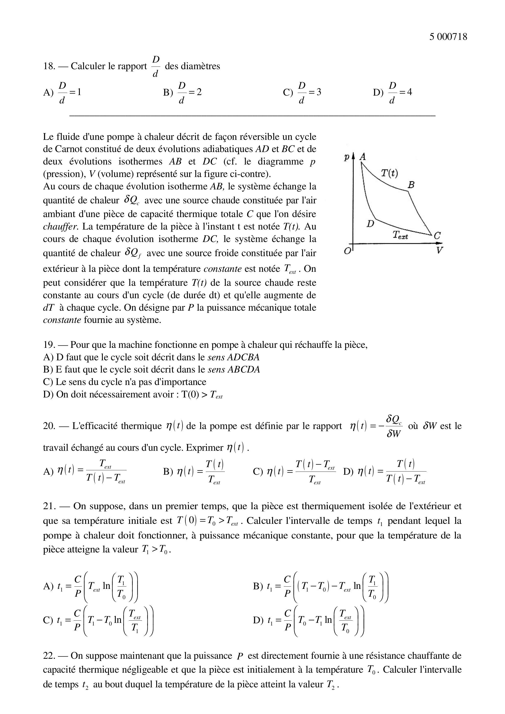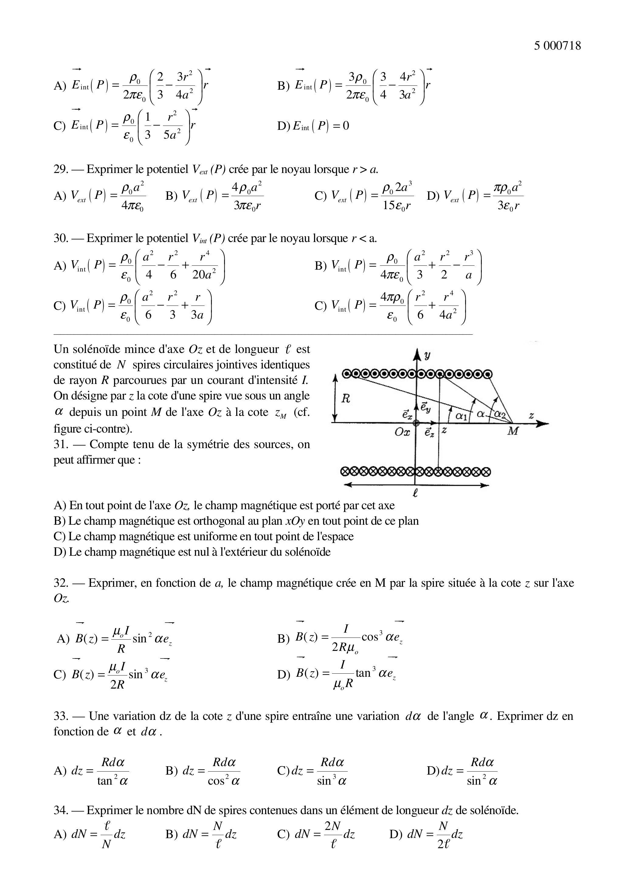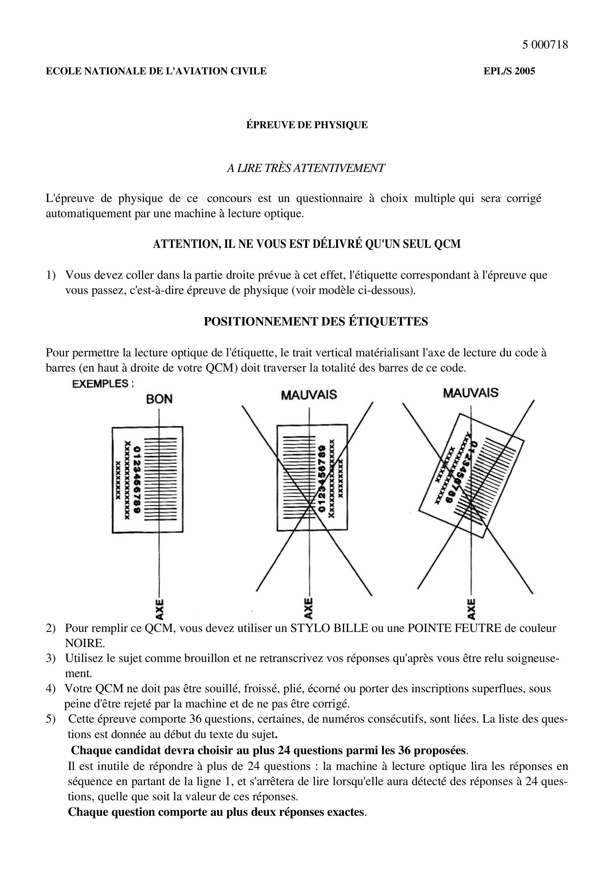 L'épreuve de physique de ce concours est un questionnaire à choix multiple qui sera corrigé automatiquement par une machine à lecture optique.
