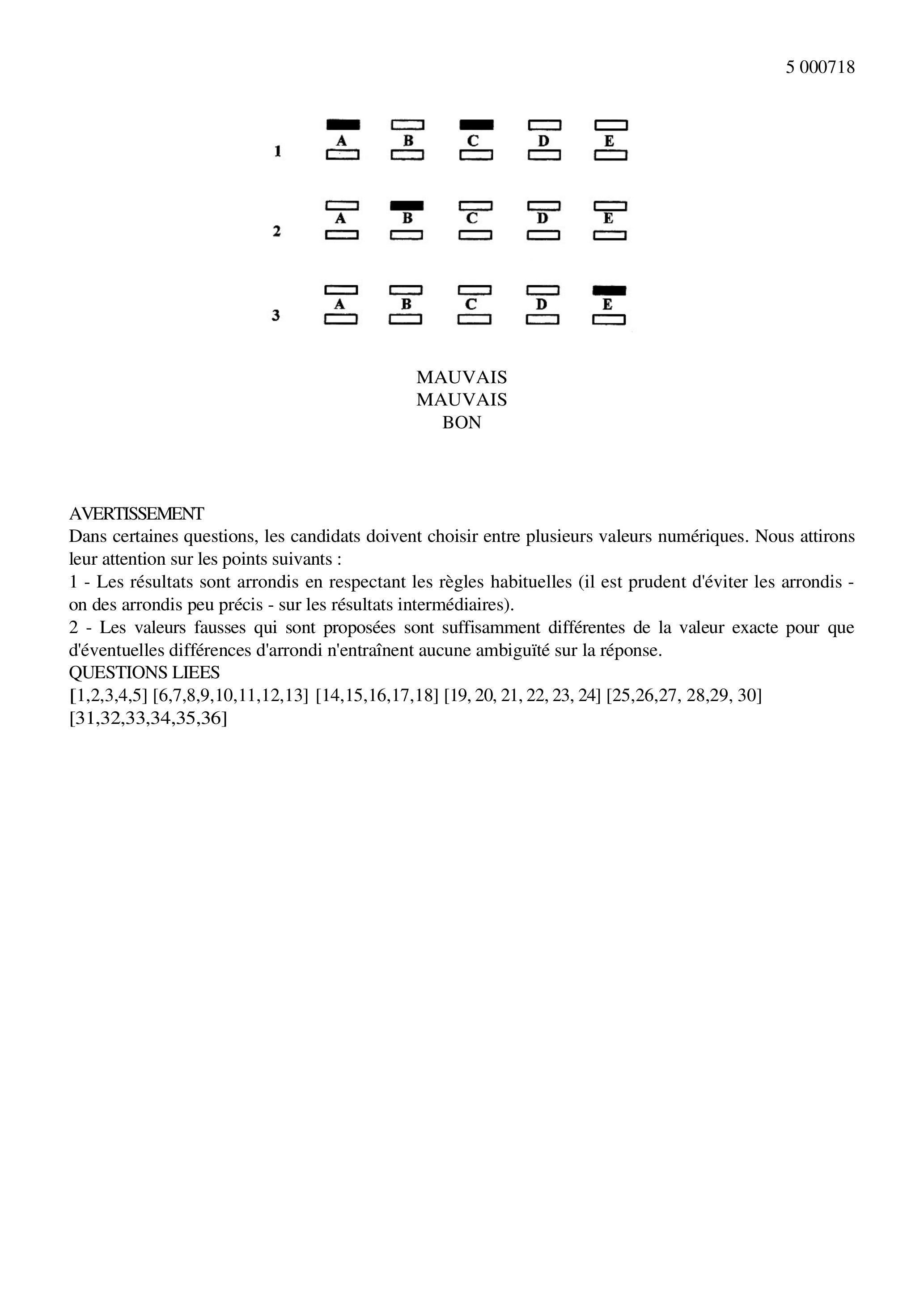 5) Cette épreuve comporte 36 questions, certaines, de numéros consécutifs, sont liées. La liste des questions est donnée au début du texte du sujet.