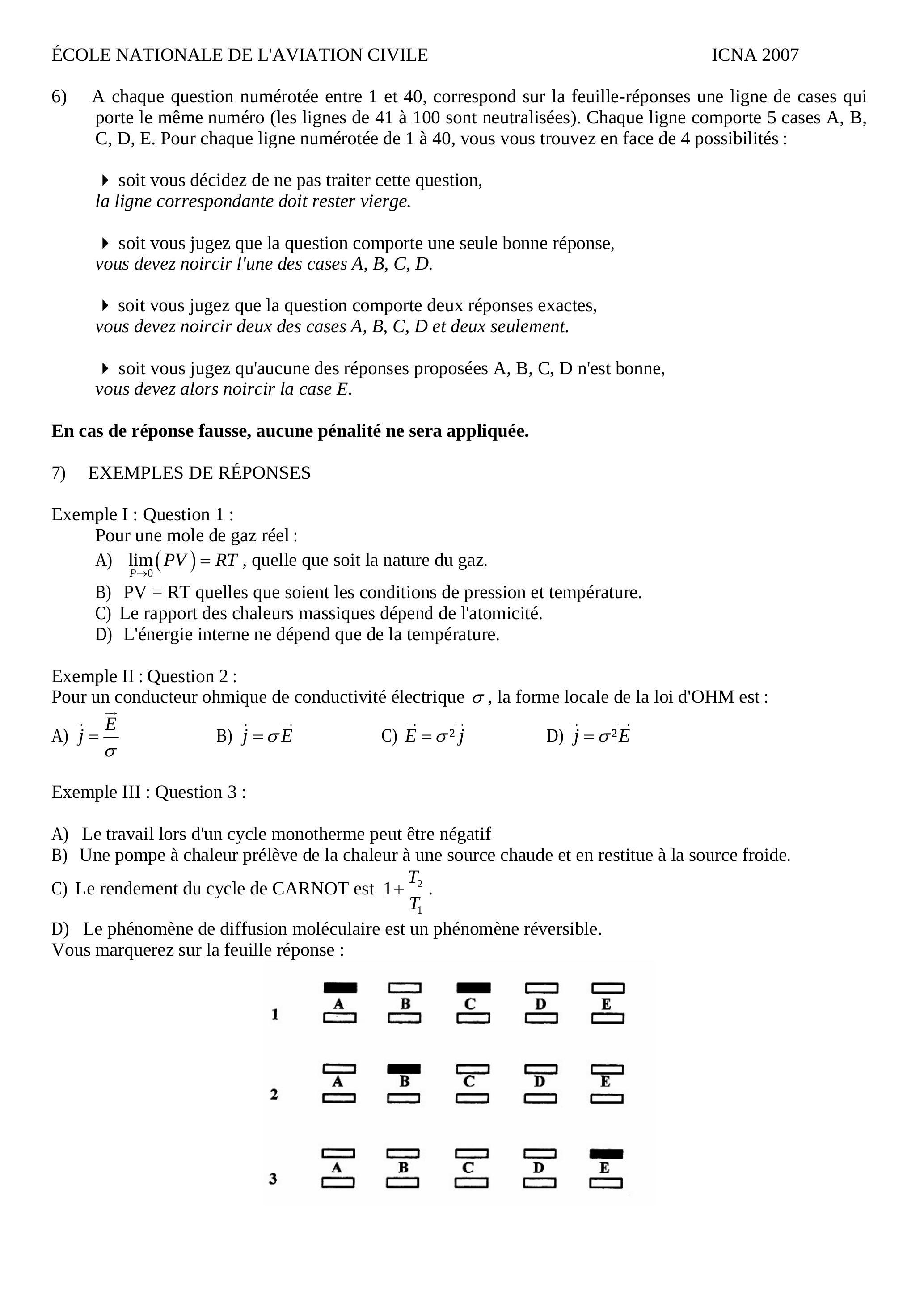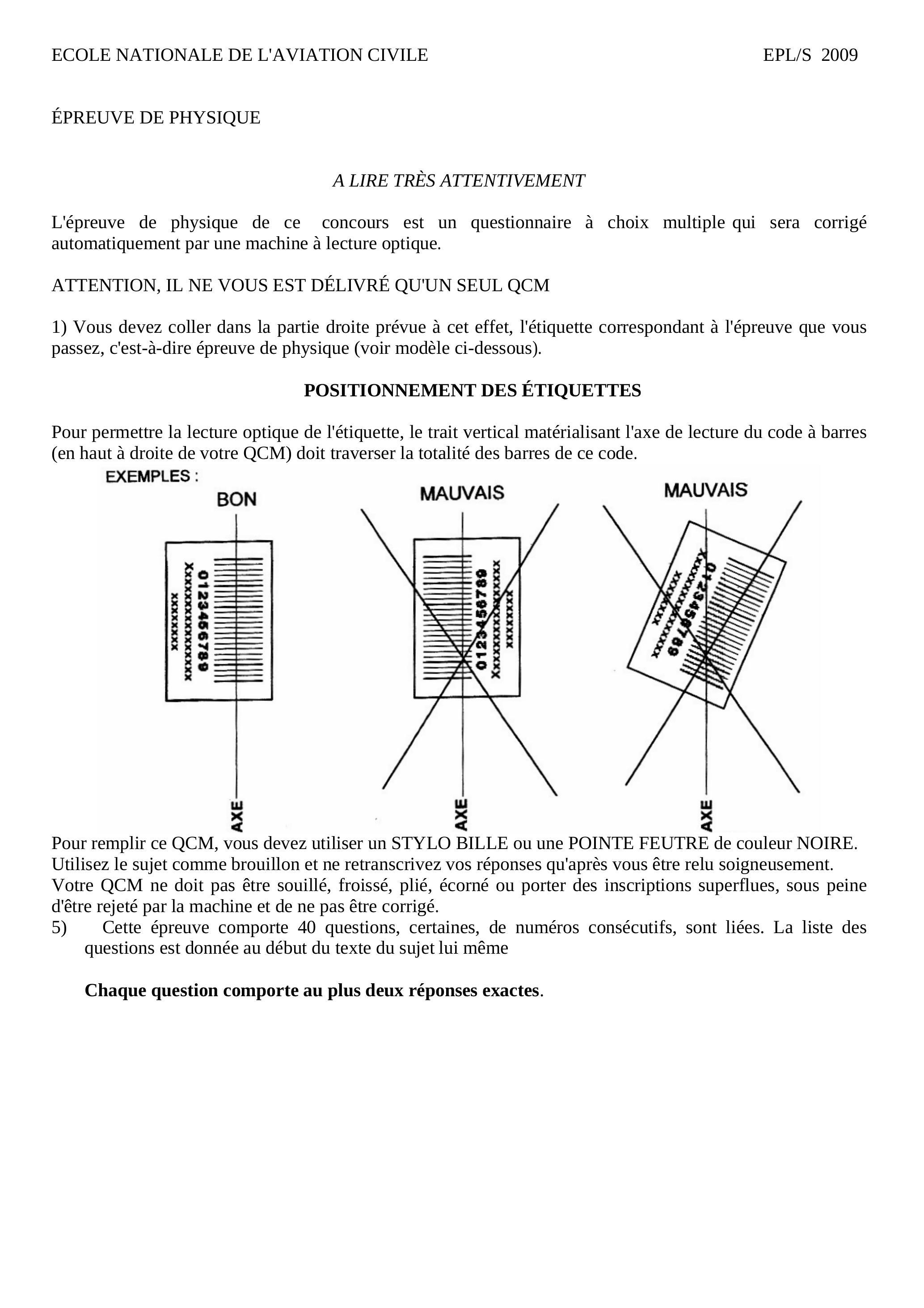 L'épreuve de physique de ce concours est un questionnaire à choix multiple qui sera corrigé automatiquement par une machine à lecture optique.