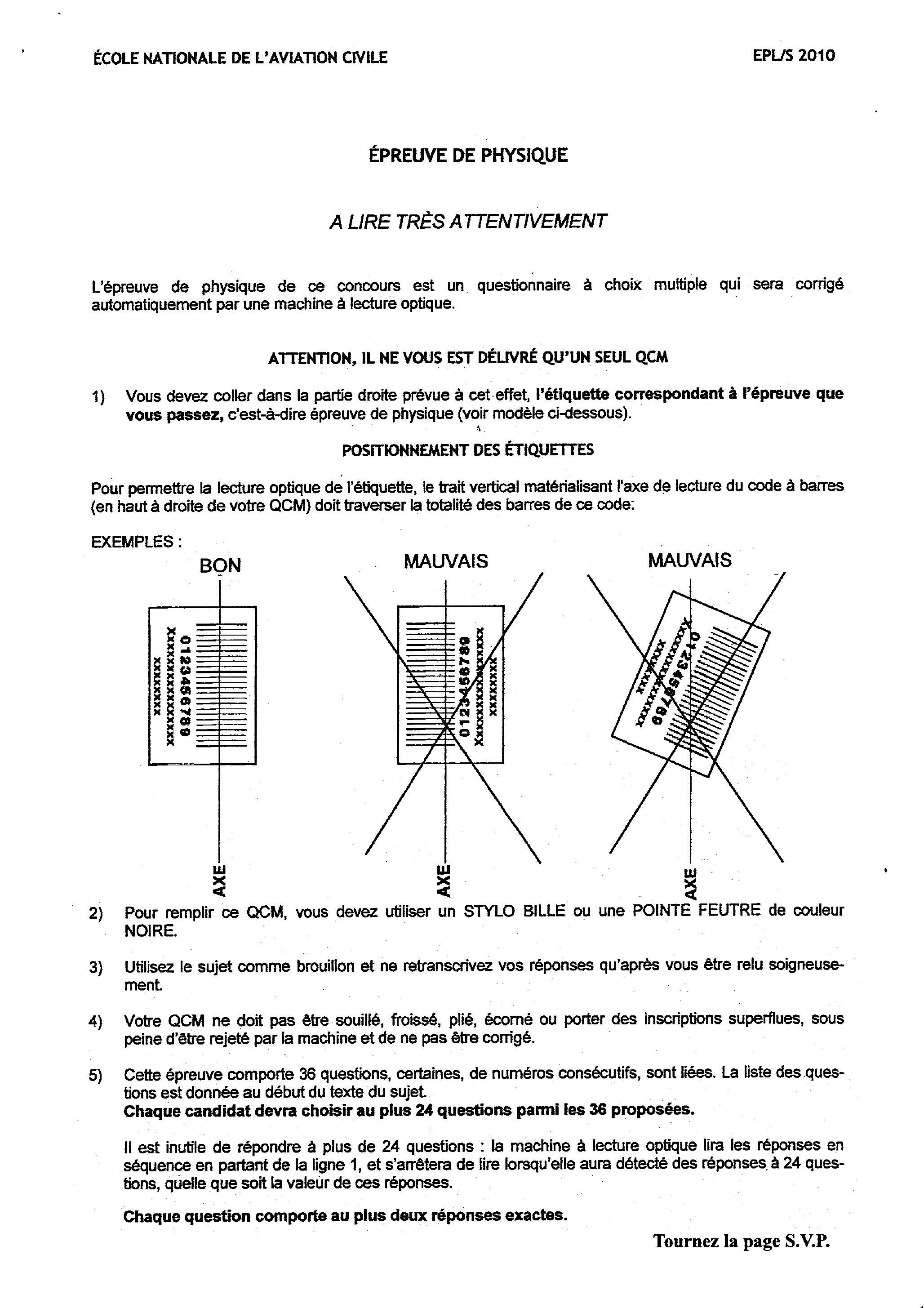L'épreuve de physique de ce concours est un questionnaire à choix multiple qui sera corrigé automatiquement par une machine à lecture optique.