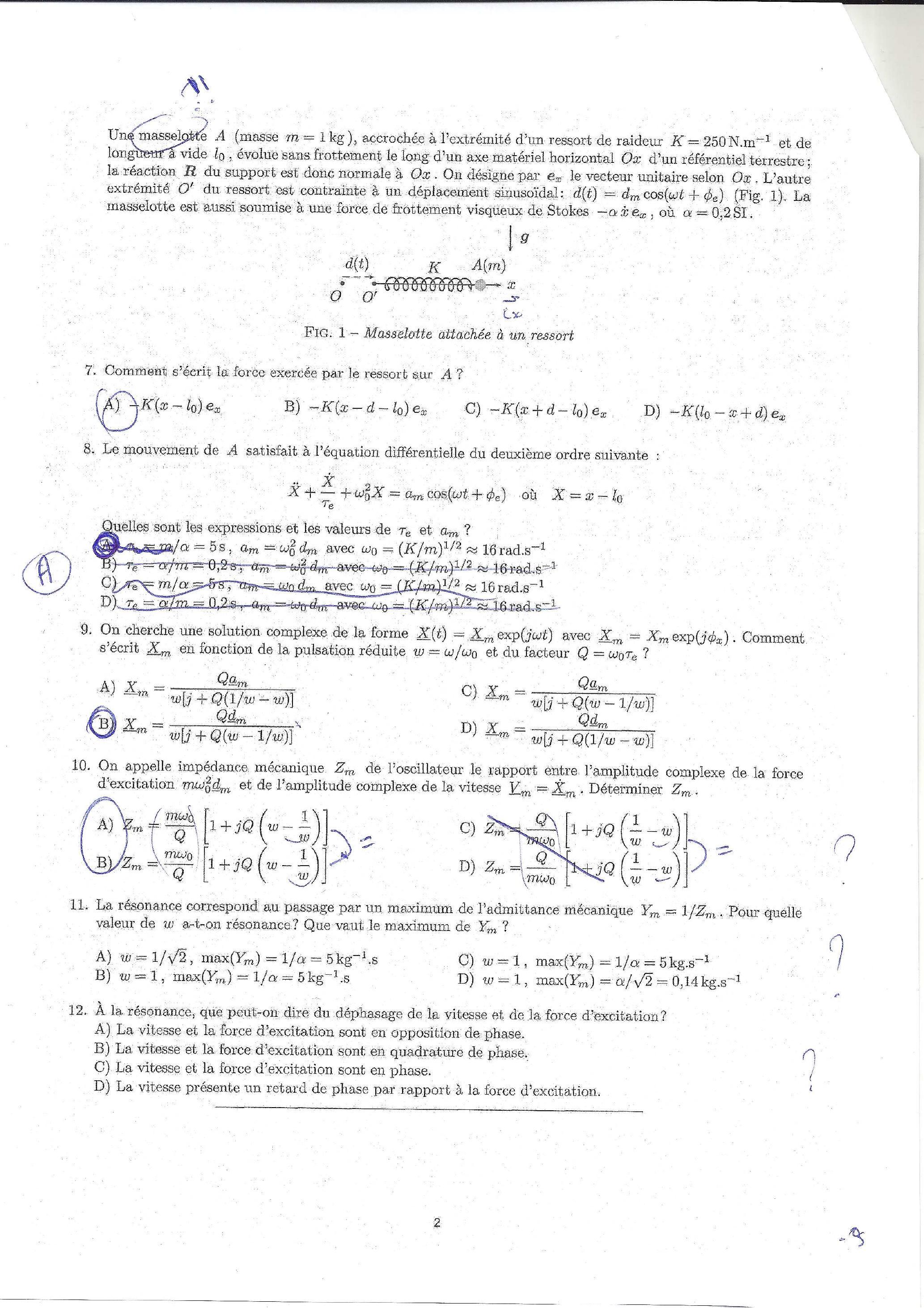 12. À la résonance, que peut-on dire du déphasage de la vitesse et de la force dexcitation?