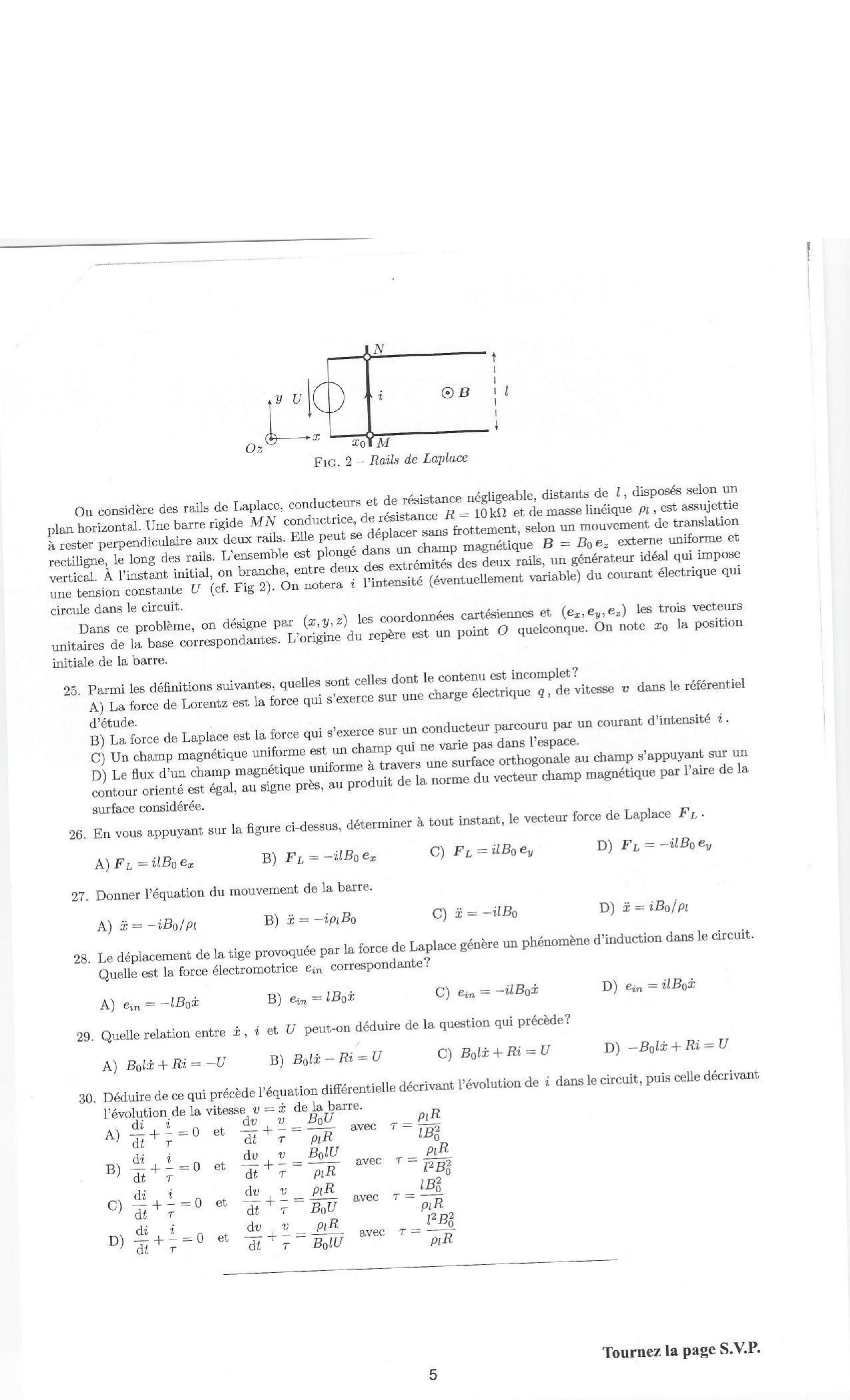 ENAC Physique QCM MPSI 2017 - Version Web LaTeX | WikiPrépa | WikiPrépa