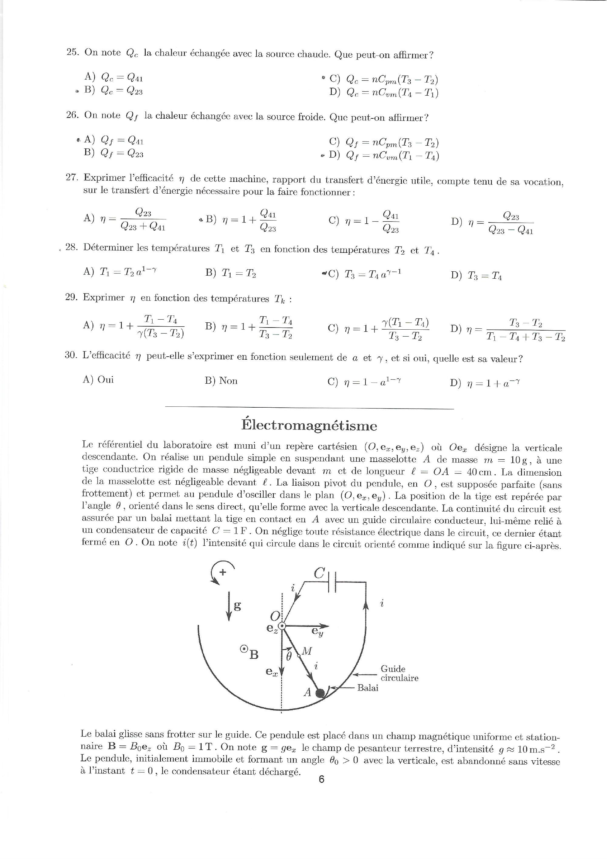Le balai glisse sans frotter sur le guide. Ce pendule est placé dans un champ magnétique uniforme et stationnaire où . On note le champ de pesanteur terrestre, d'intensité . Le pendule, initialement immobile et formant un angle avec la verticale, est abandonné sans vitesse à l'instant , le condensateur étant déchargé.