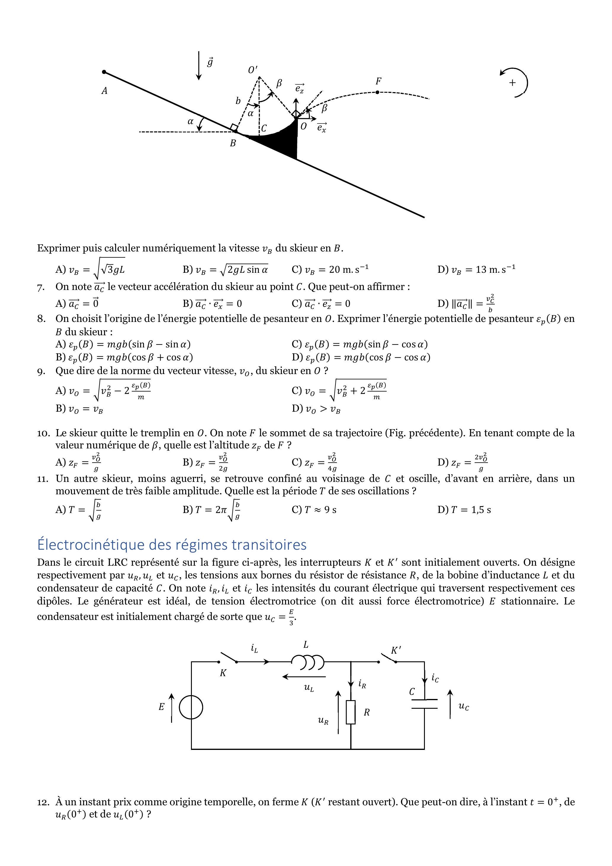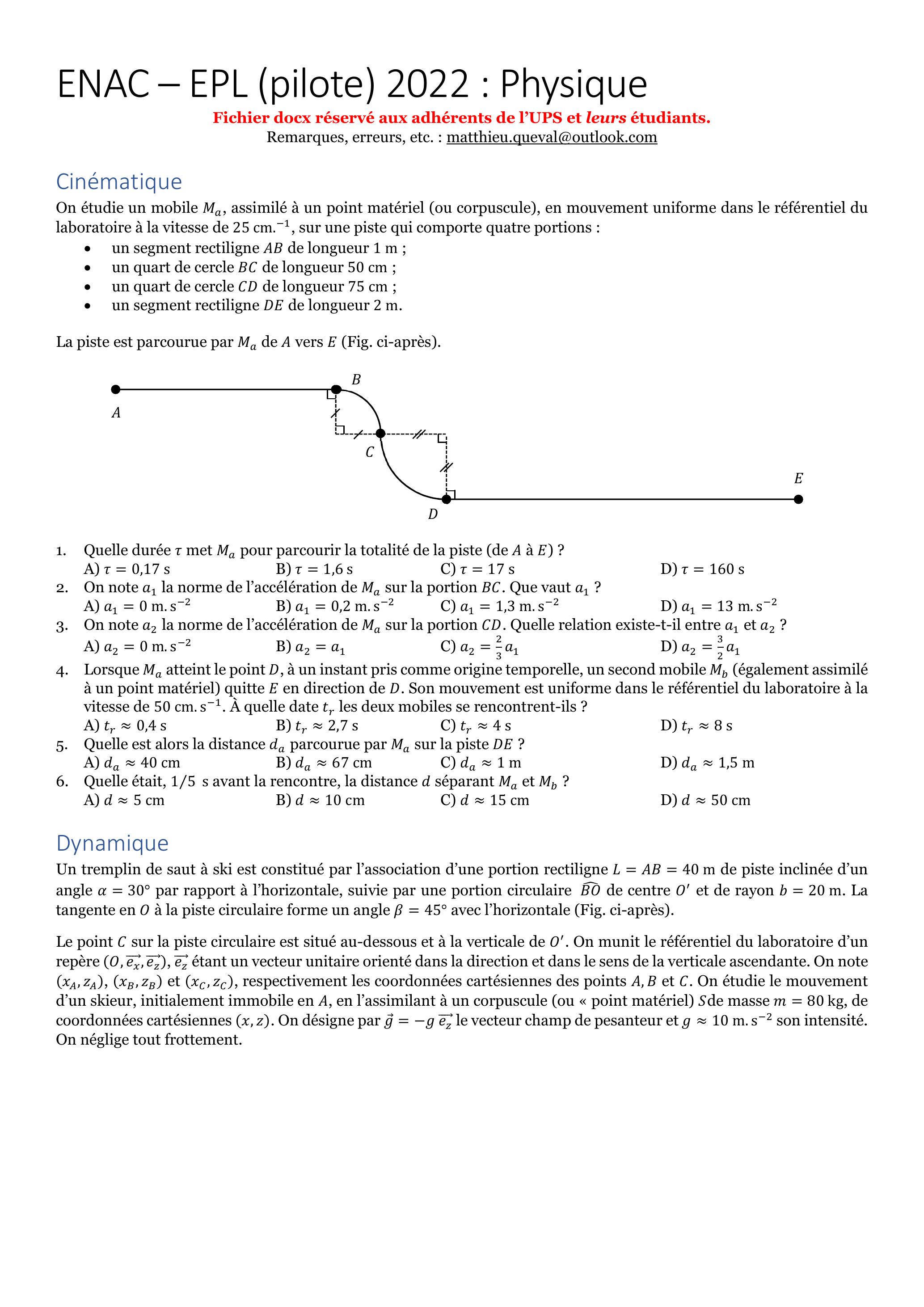 ENAC Physique QCM MPSI 2022 - Version Web LaTeX | WikiPrépa | WikiPrépa