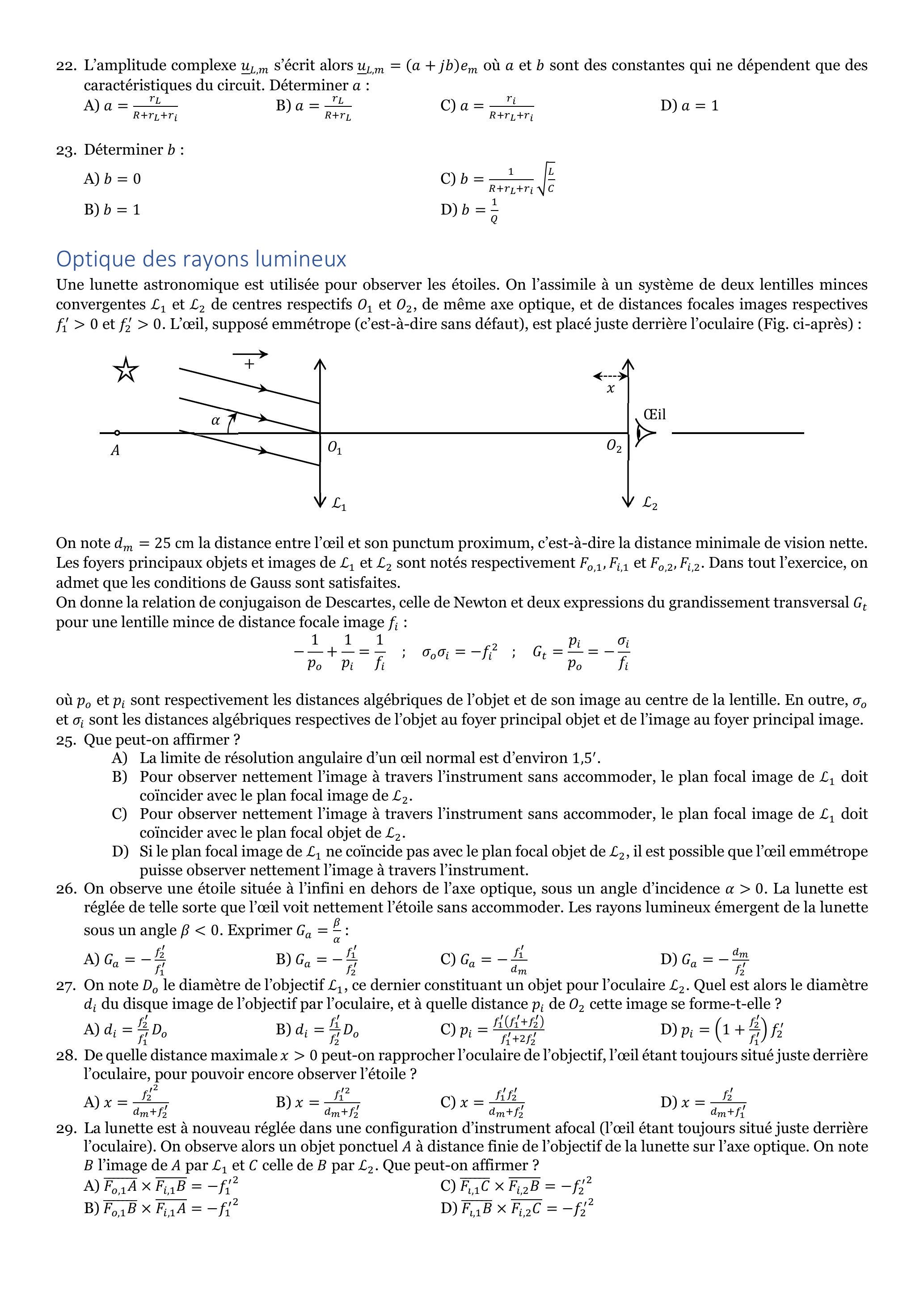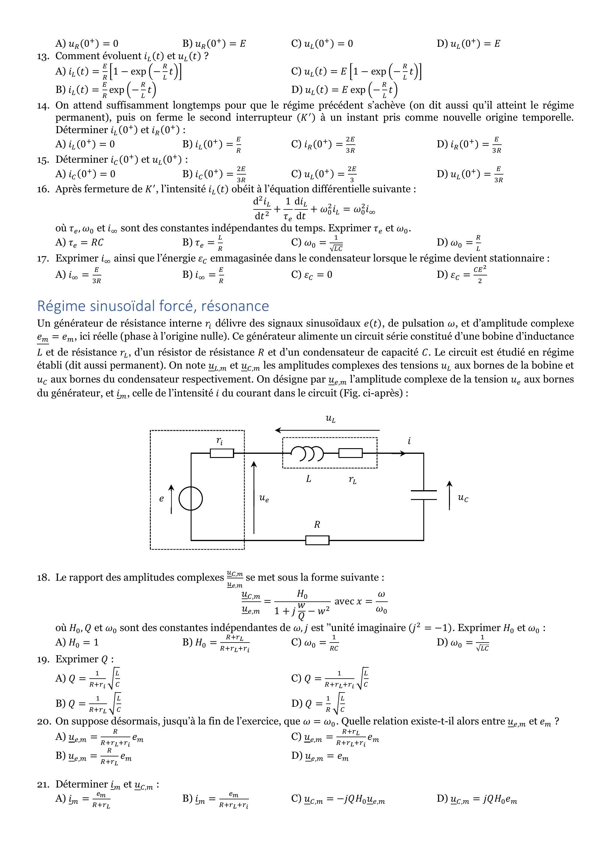 22. L'amplitude complexe s'écrit alors où et sont des constantes qui ne dépendent que des caractéristiques du circuit. Déterminer :