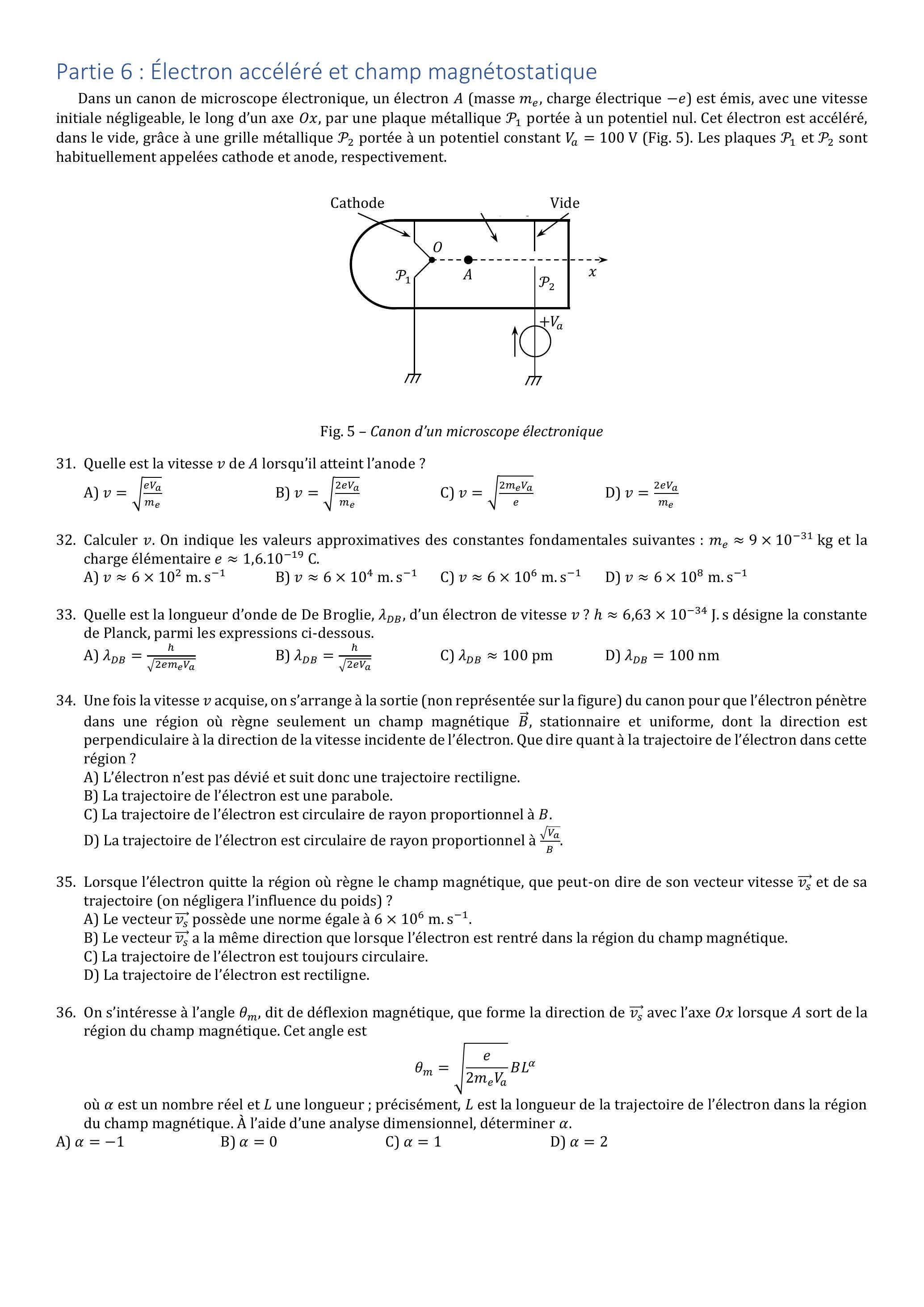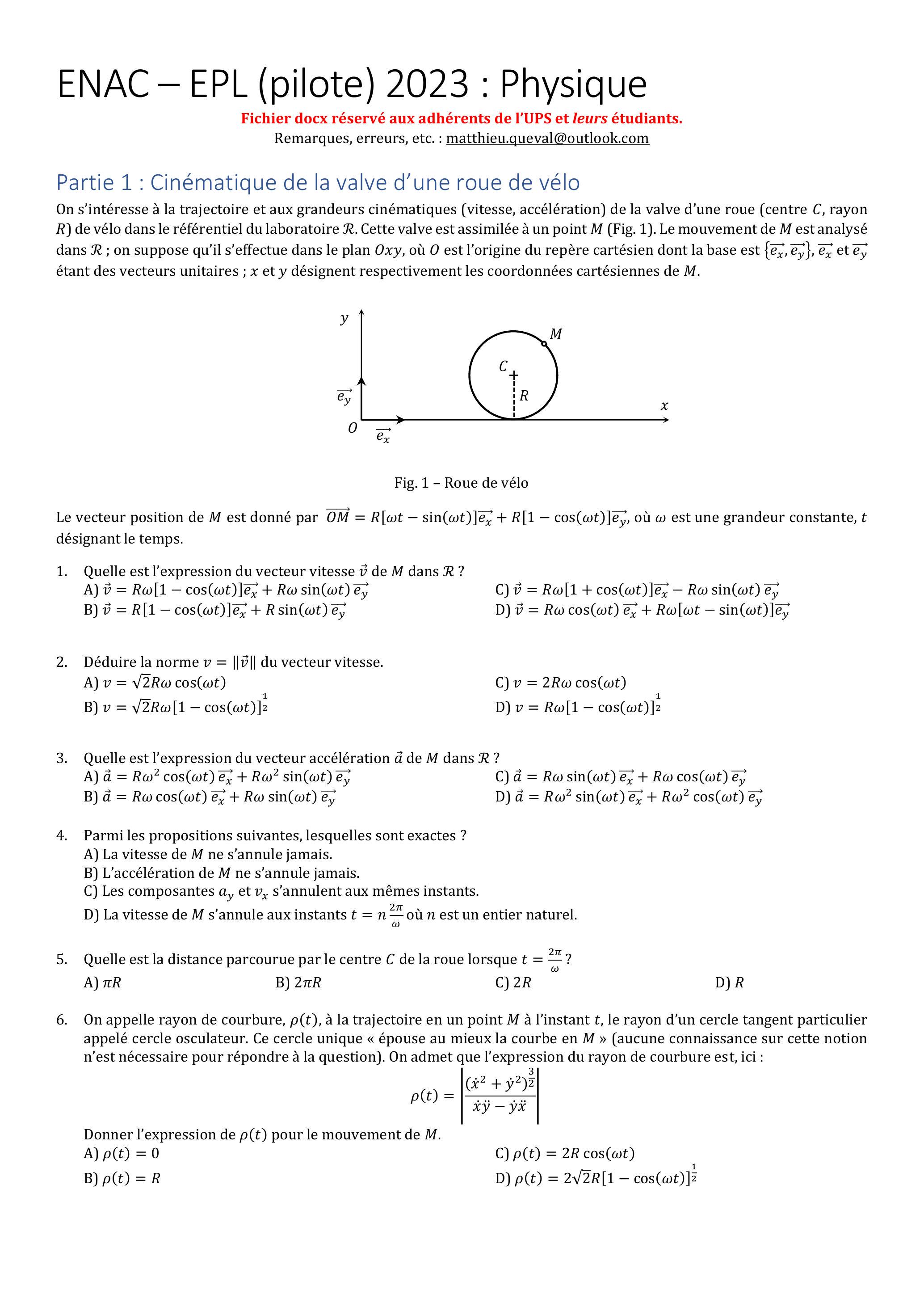 ENAC Physique QCM MPSI 2023 - Version Web LaTeX | WikiPrépa | WikiPrépa