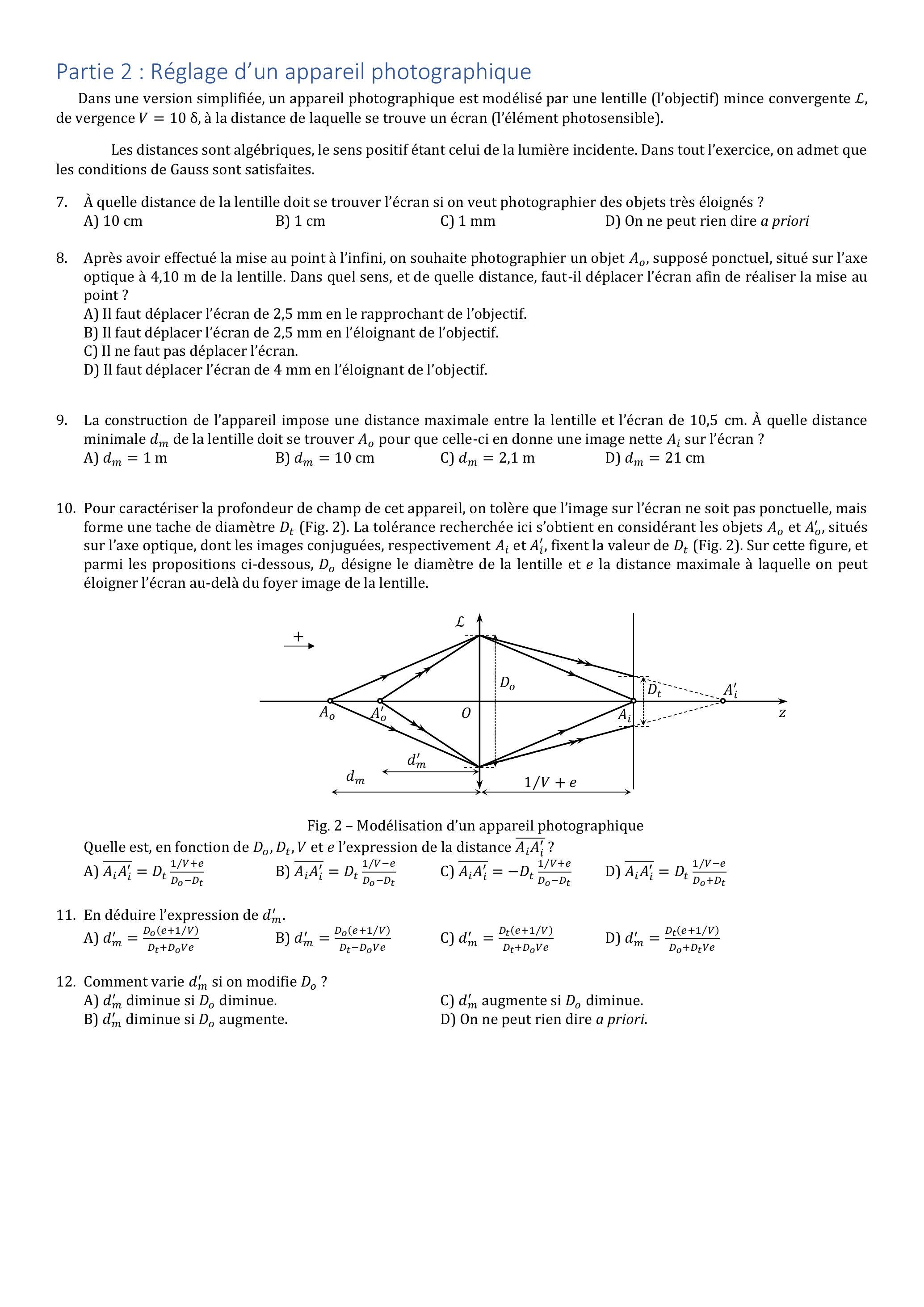 Les distances sont algébriques, le sens positif étant celui de la lumière incidente. Dans tout l'exercice, on admet que les conditions de Gauss sont satisfaites.
