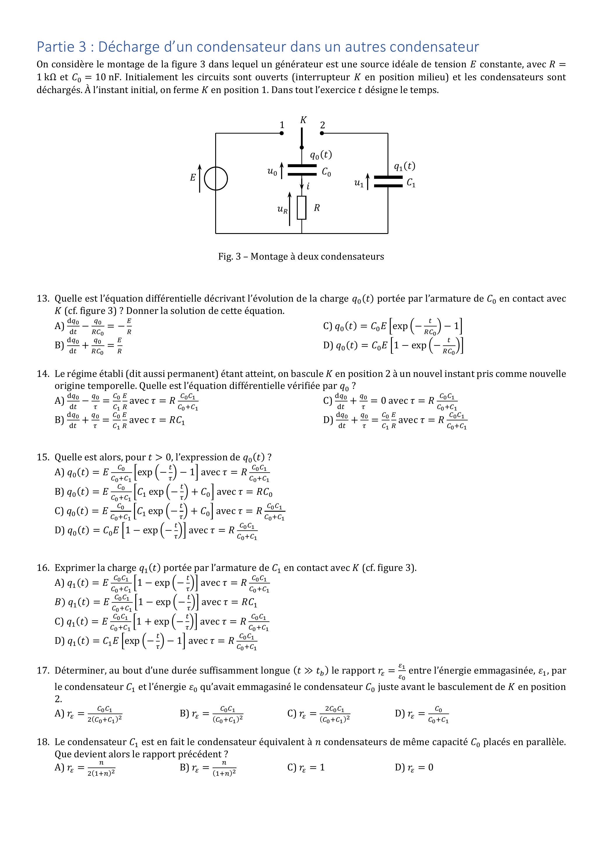 Le condensateur est en fait le condensateur équivalent à condensateurs de même capacité placés en parallèle. Que devient alors le rapport précédent?