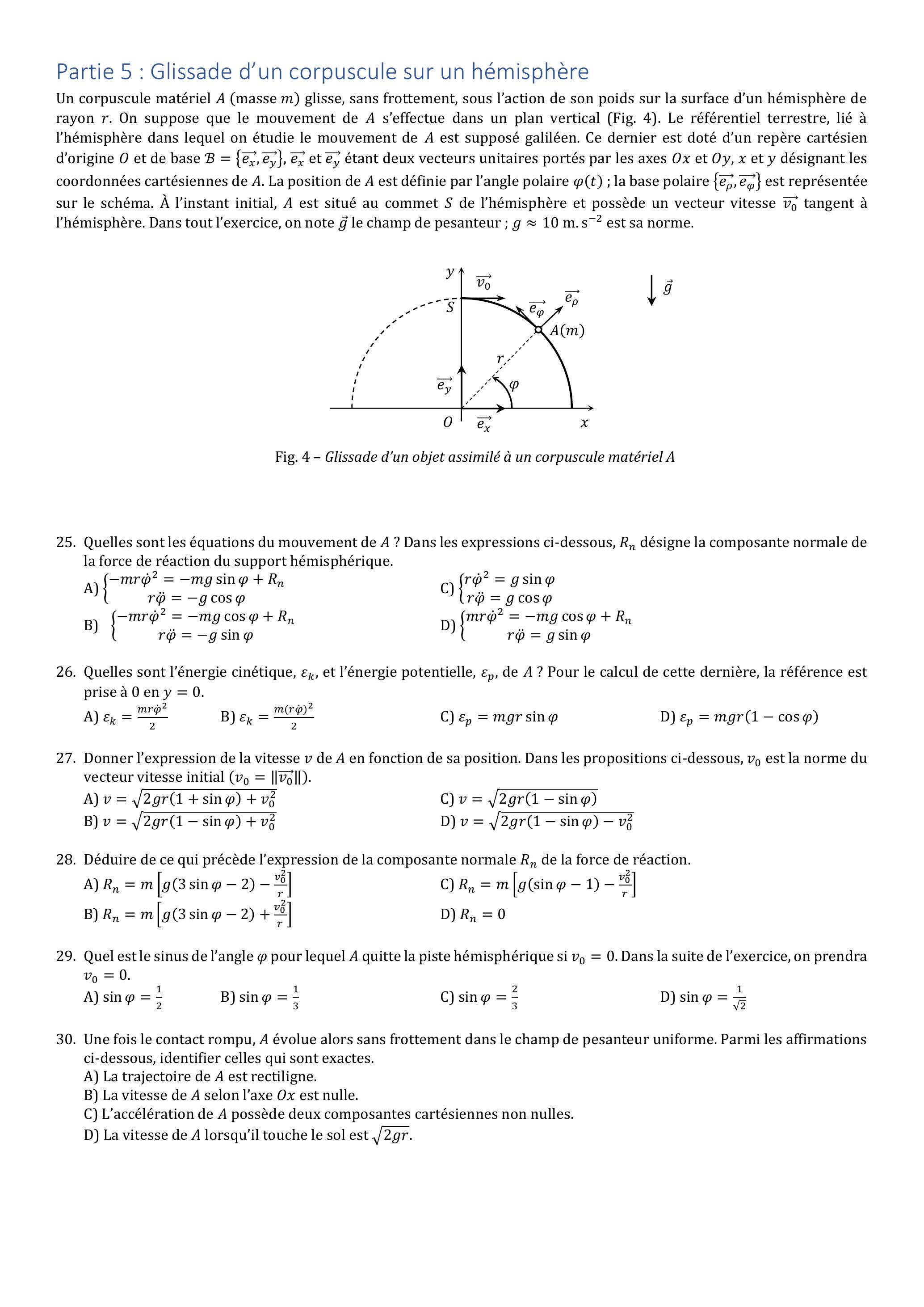 Partie 5 : Glissade d'un corpuscule sur un hémisphère
