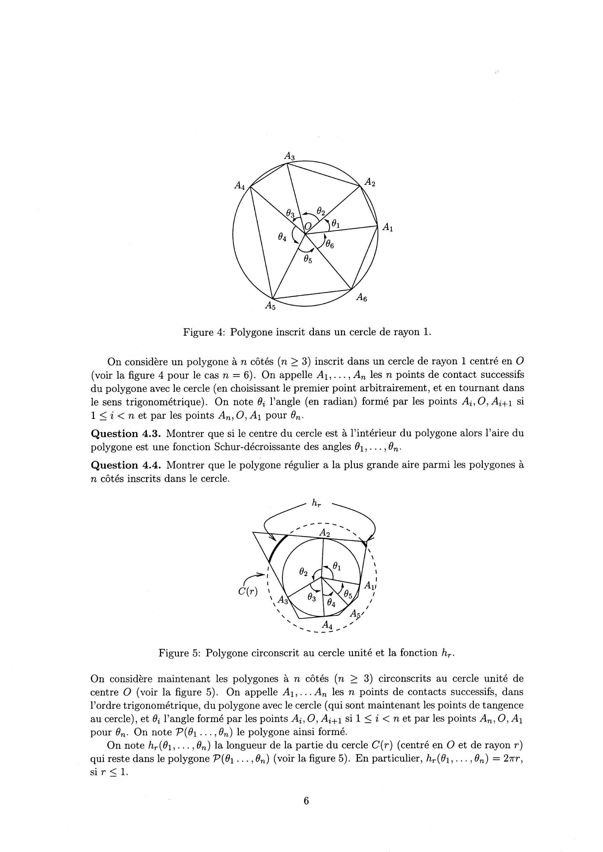Question 4.4. Montrer que le polygone régulier a la plus grande aire parmi les polygones à côtés inscrits dans le cercle.