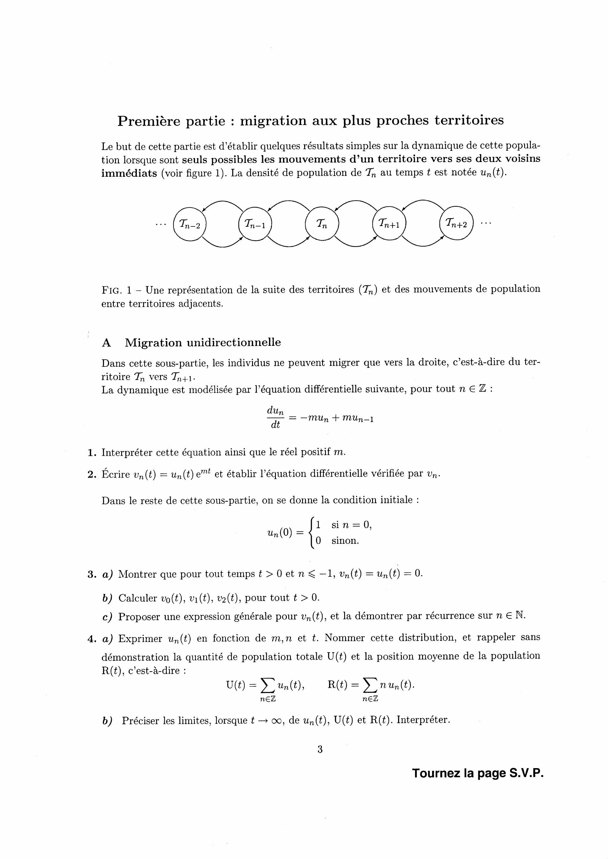 Dans cette sous-partie, les individus ne peuvent migrer que vers la droite, c'est-à-dire du territoire vers .