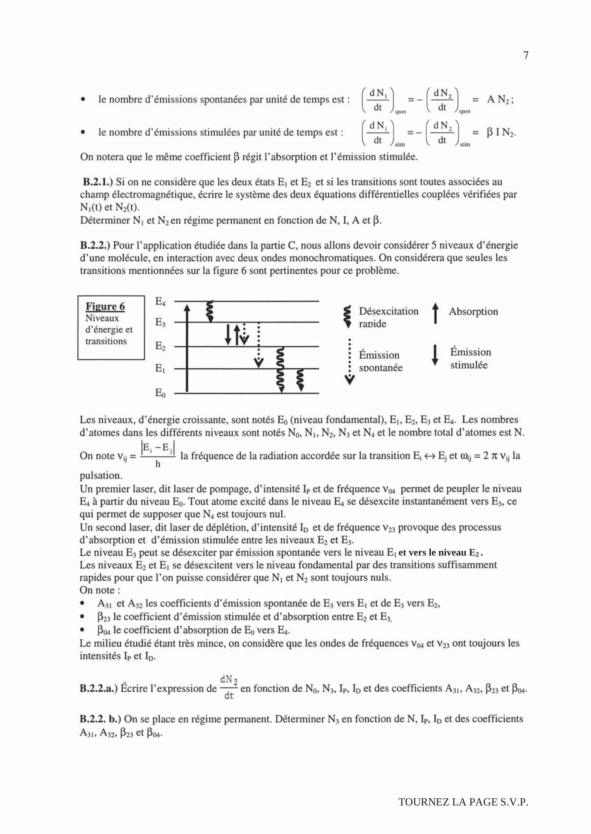 (3) l'atome, initialement excité, se désexcite spontanément (question B.1.4).