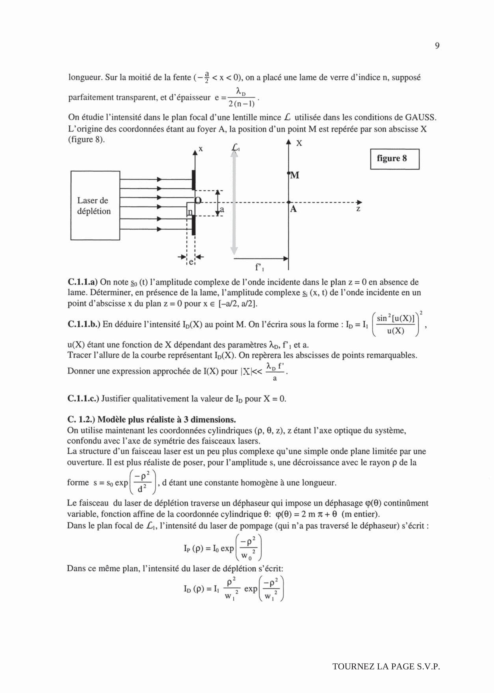 Dans le plan focal de , l'intensité du laser de pompage (qui n'a pas traversé le déphaseur) s'écrit :