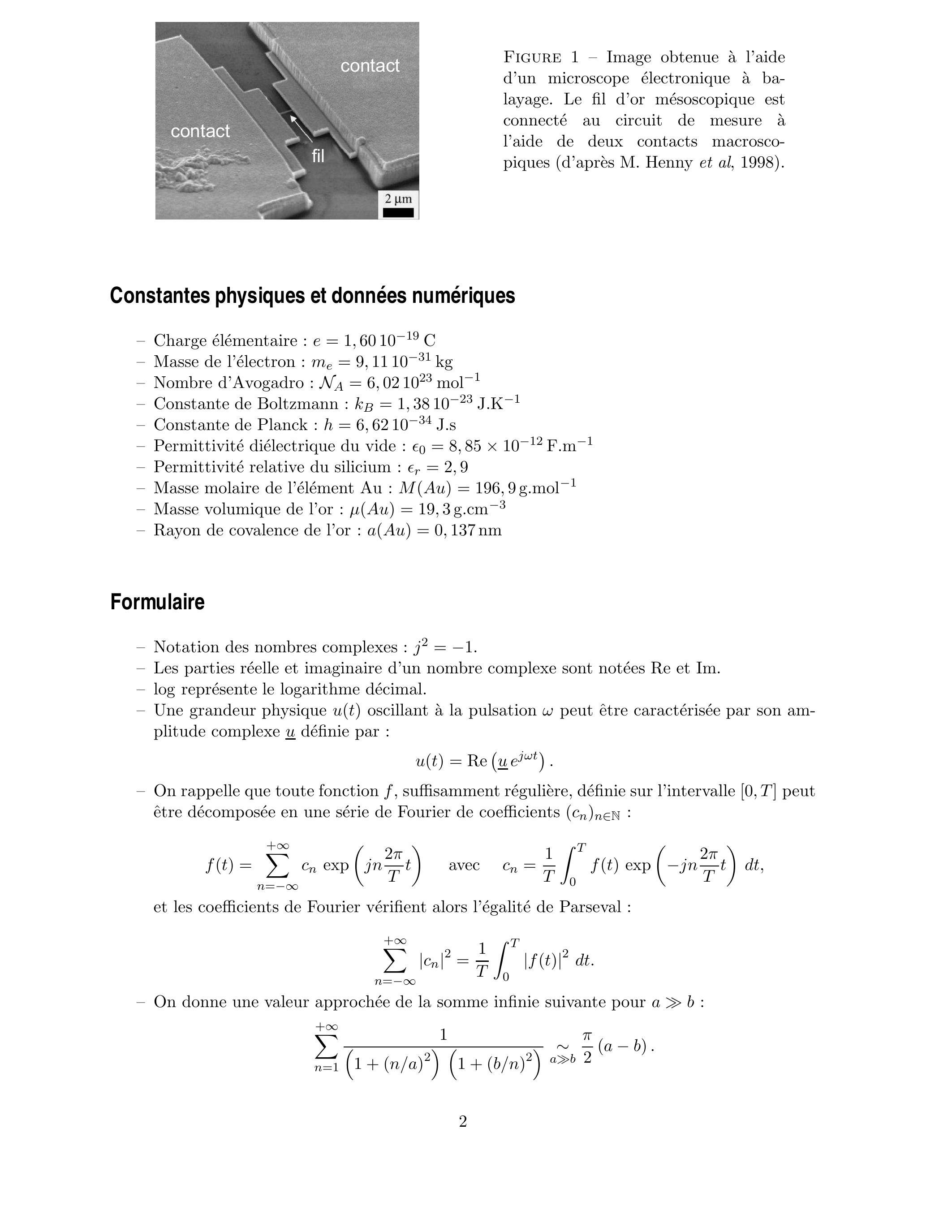 Q27. Le fil mésoscopique de résistance peut être assimilé à un parallélépipède de longueur et de section . En déduire le temps de relaxation .