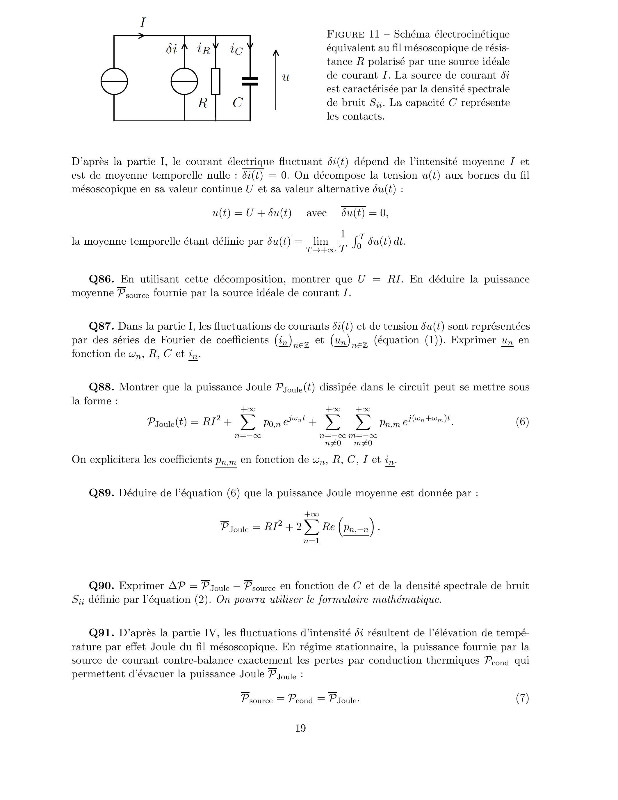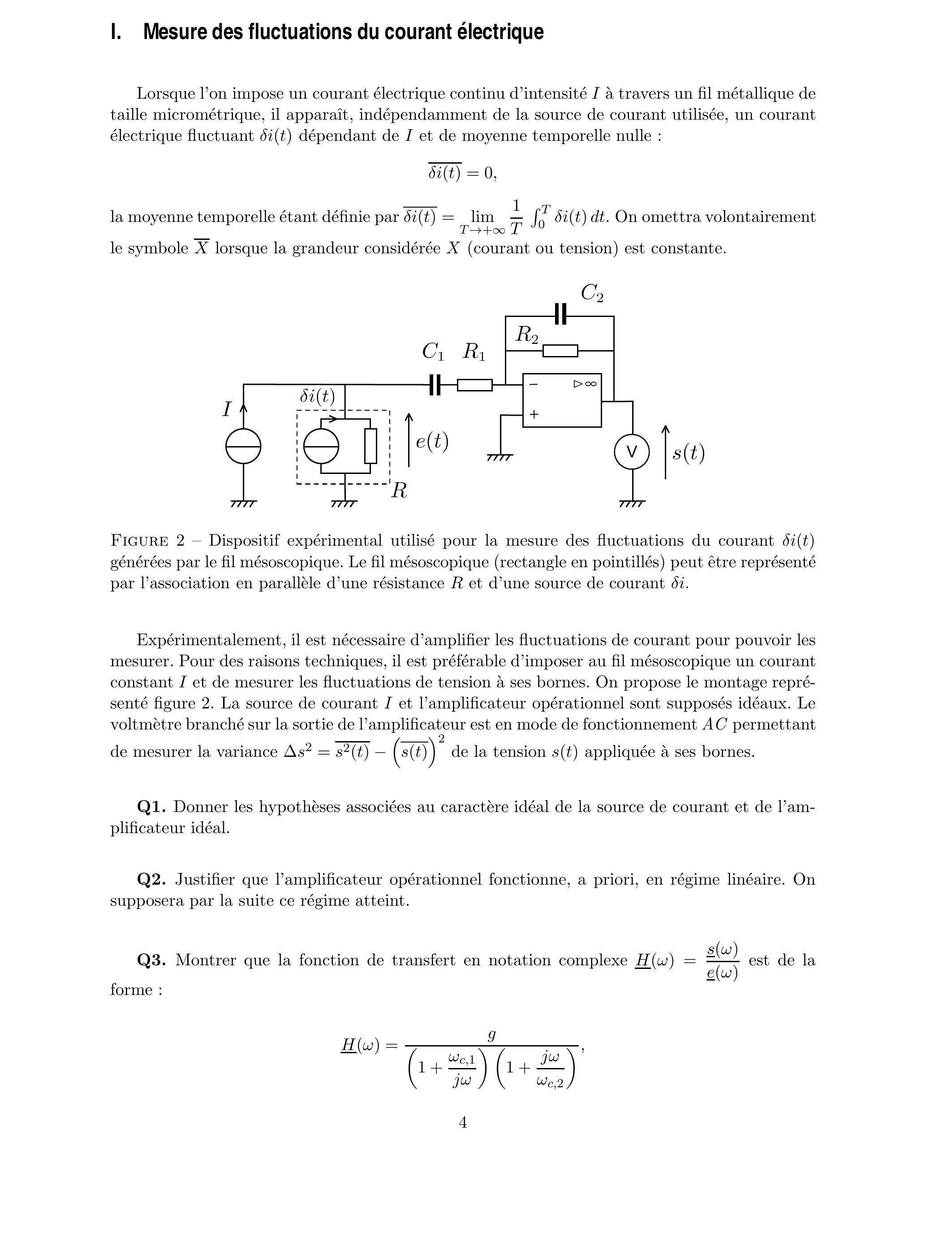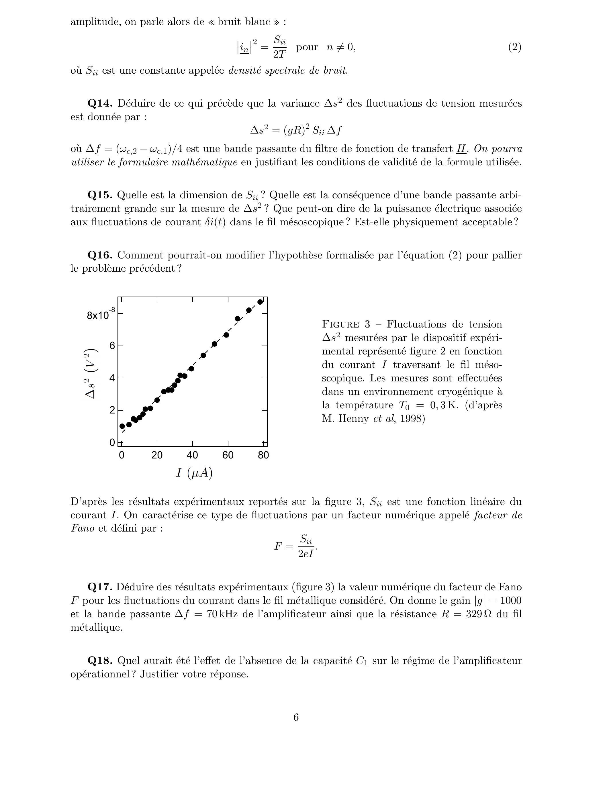 Q15. Quelle est la dimension de ? Quelle est la conséquence d'une bande passante arbitrairement grande sur la mesure de ? Que peut-on dire de la puissance électrique associée aux fluctuations de courant dans le fil mésoscopique? Est-elle physiquement acceptable?